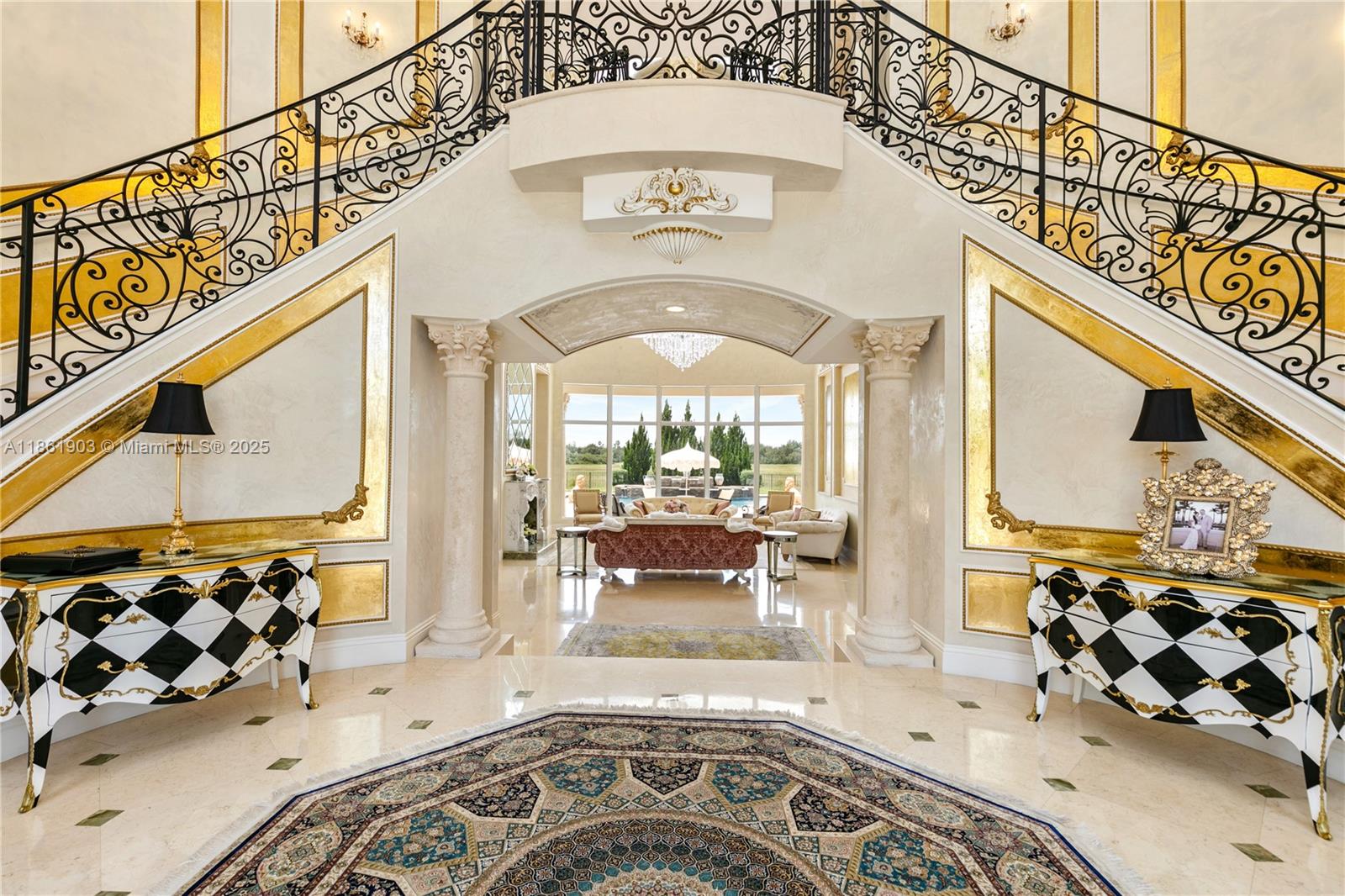 Welcome to "Bella Maison", a 2-story estate in the gated community of Windmill Reserve. Featuring 8BR/8FB/2HB, 4-car garage, Travertine circular driveway, on protected natural preserve w/ western sunsets. Marble & wood flooring, incredible gourmet kitchen, large island, walk-in pantry, granite, Wolf gas range & high-end appliances, 2 new Bosch dishwashers. Featuring home theater, game room, gym, elevator, bar/billiards room, office study, sunroom, up/down laundry rooms, 5 marble fireplaces & impact glass and doors. Owner's suite w/vast walk-in closets. French-renaissance style w/hand-painted artistry, crown moldings, gold/silver leaf foil & murals, 3 balconies, 2 fountains, decorated lions, lush landscape, heated pool & spa. *New roof in 2015. *5 new A/C units. This home is a must-see!