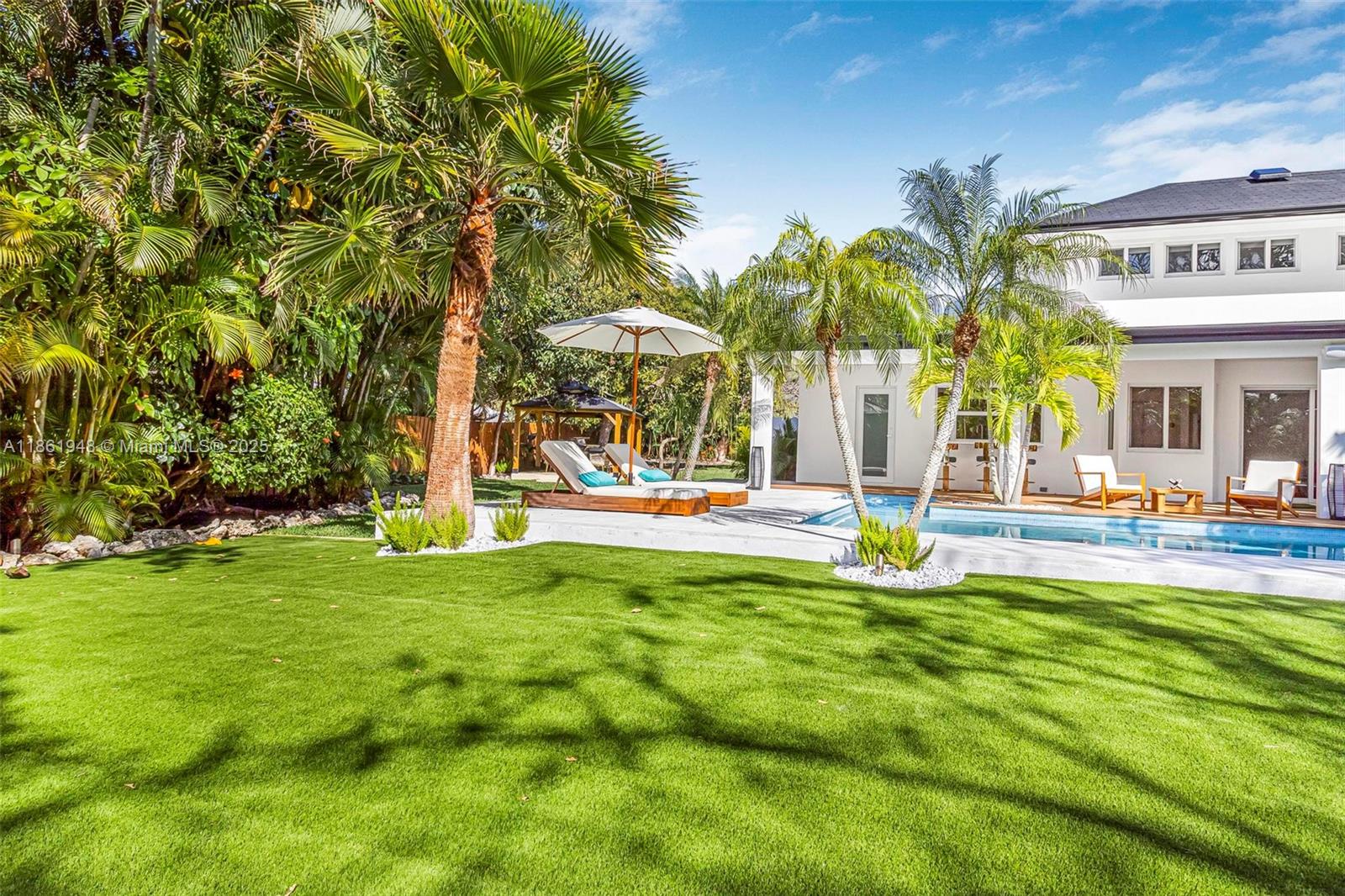 This magnificent estate spans 3,402 SQFT and sits on a lushly landscaped lot of 25,401 SQFT. Featuring 6 beds and 4 baths, with 2 bedrooms and 2 bathrooms conveniently located downstairs. Designed with attention to detail, this home features a gourmet kitchen, a luxurious primary suite, a wine cellar, a saltwater pool, and an outdoor kitchen. Additionally, it's a smart home with cameras, impact-resistant windows, and a driveway that accommodates up to 10 cars. The property also offers a resort-style backyard, Tesla car charging, Sonos sound system, camera security, pool chiller and heater, outdoor barrel sauna, Jacuzzi, and comes fully furnished. Situated in a non-flood zone. Near private schools, shops, restaurants, and marinas. This home is a perfect blend of luxury and functionality.