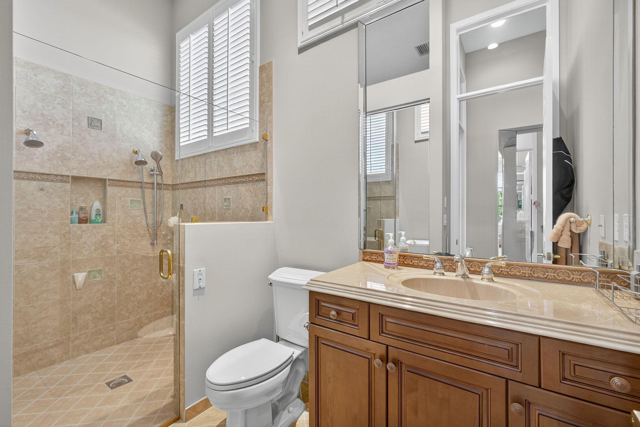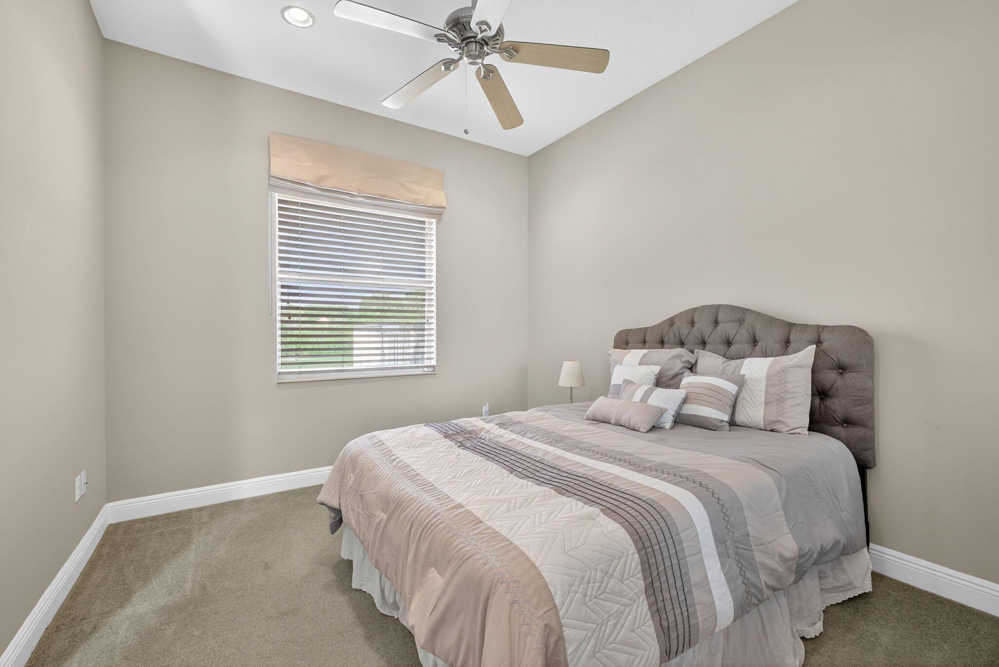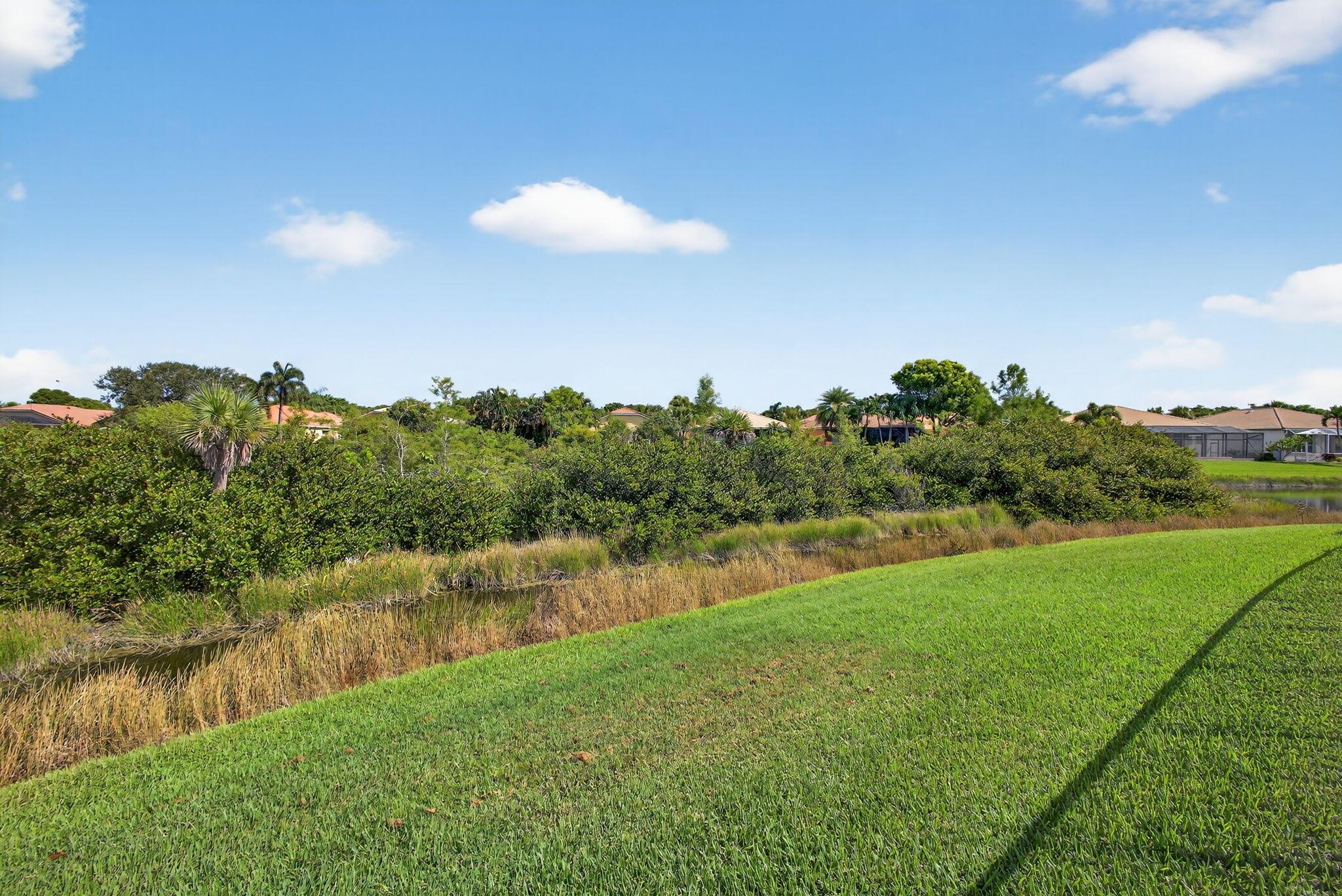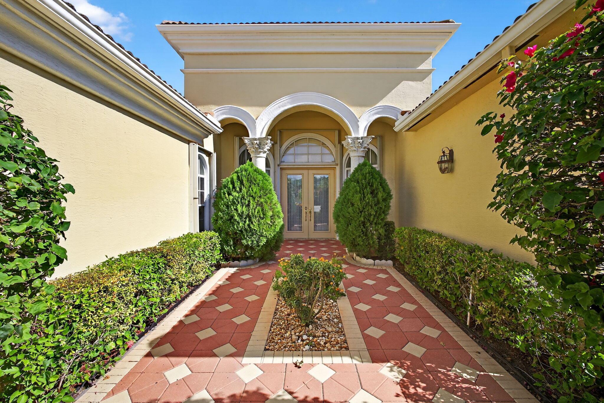 Larger Montego Model with views, 3 full Bedrooms, 2 Full baths and 2 (1/2 baths), Completely fenced in yard. This home has many upgraded options from the builder incl Gourmet kitchen with SS Appliances, Double wall ovens, Granite Counter tops W natural stone backsplash and more. FINSHED enclosed porch with A/C, 250 ft . Xtra paver outdoor patio Elegant light fixtures, blinds, Formal Dining rm, plus the main bath has 2 walk in closets, custom mirrors, glass shower connects the 2 toilet areas, transom windows allow lots of light.Buena Vida is a gated 55+ community with Fabulous amenities incl 2 pools, on site cafe, pickleball, tennis, gym, card rooms, more. Great location with so much nearby. Close to roads, shopping, airports : approx. 20 min to PBI,, 45 (FLL), & 75 minutes to (MIA).