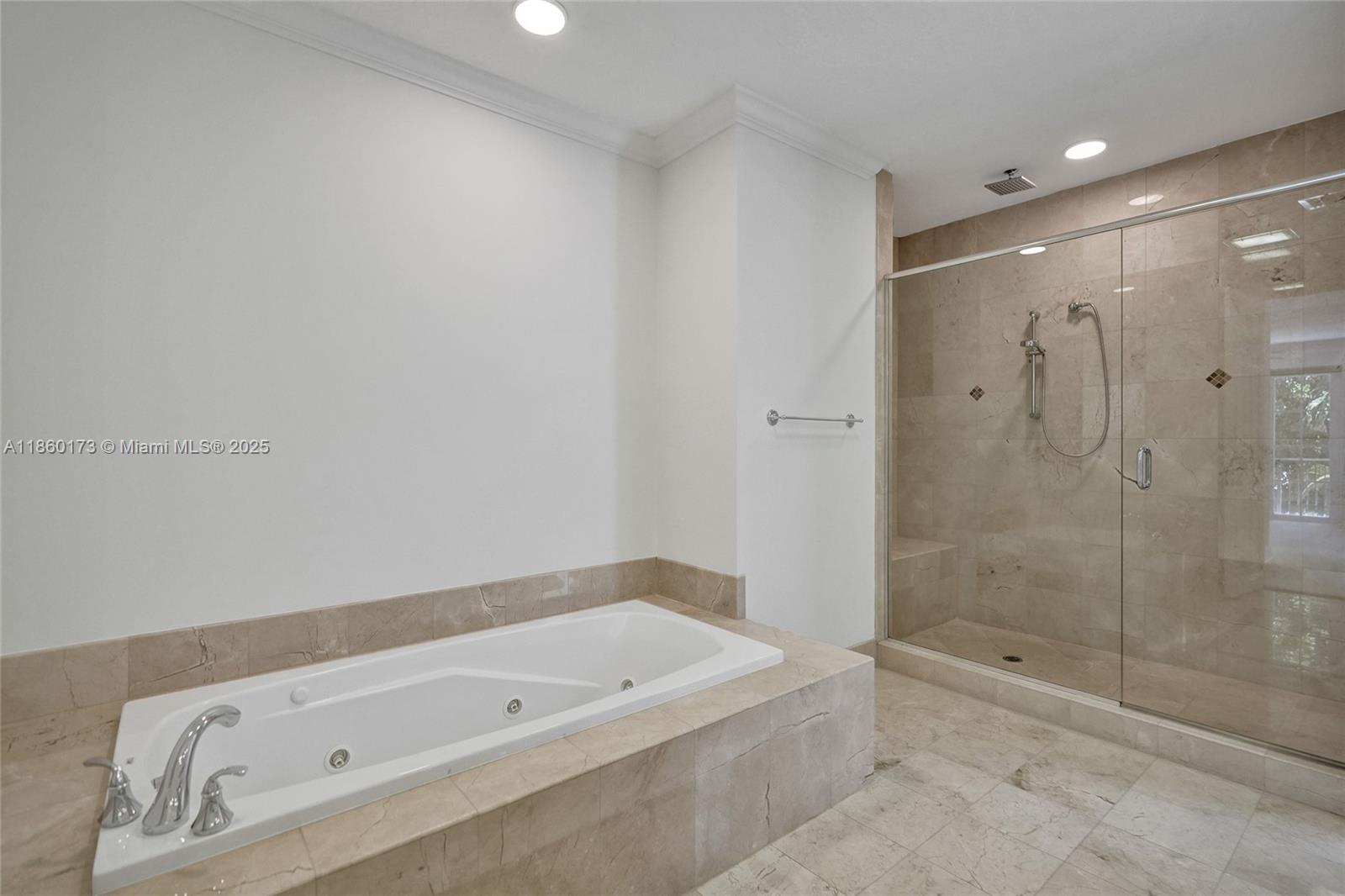 This updated corner townhome combines modern design with comfort, ideal for today’s lifestyle. The open floor plan is filled with natural light, volume ceilings, and sleek finishes. The chef’s kitchen with snack bar offers abundant counter space and flows into the dining area, custom bar, and great room. French doors with impact windows lead to a private tropical retreat featuring an free-form pool, patio, custom BBQ, dining area, lighting, and Bluetooth sound. The primary suite includes two walk-in closets, spa-style bath with Jacuzzi and shower, plus a balcony overlooking the pool. The junior suite has two balconies, and the third bedroom can be used as an office.