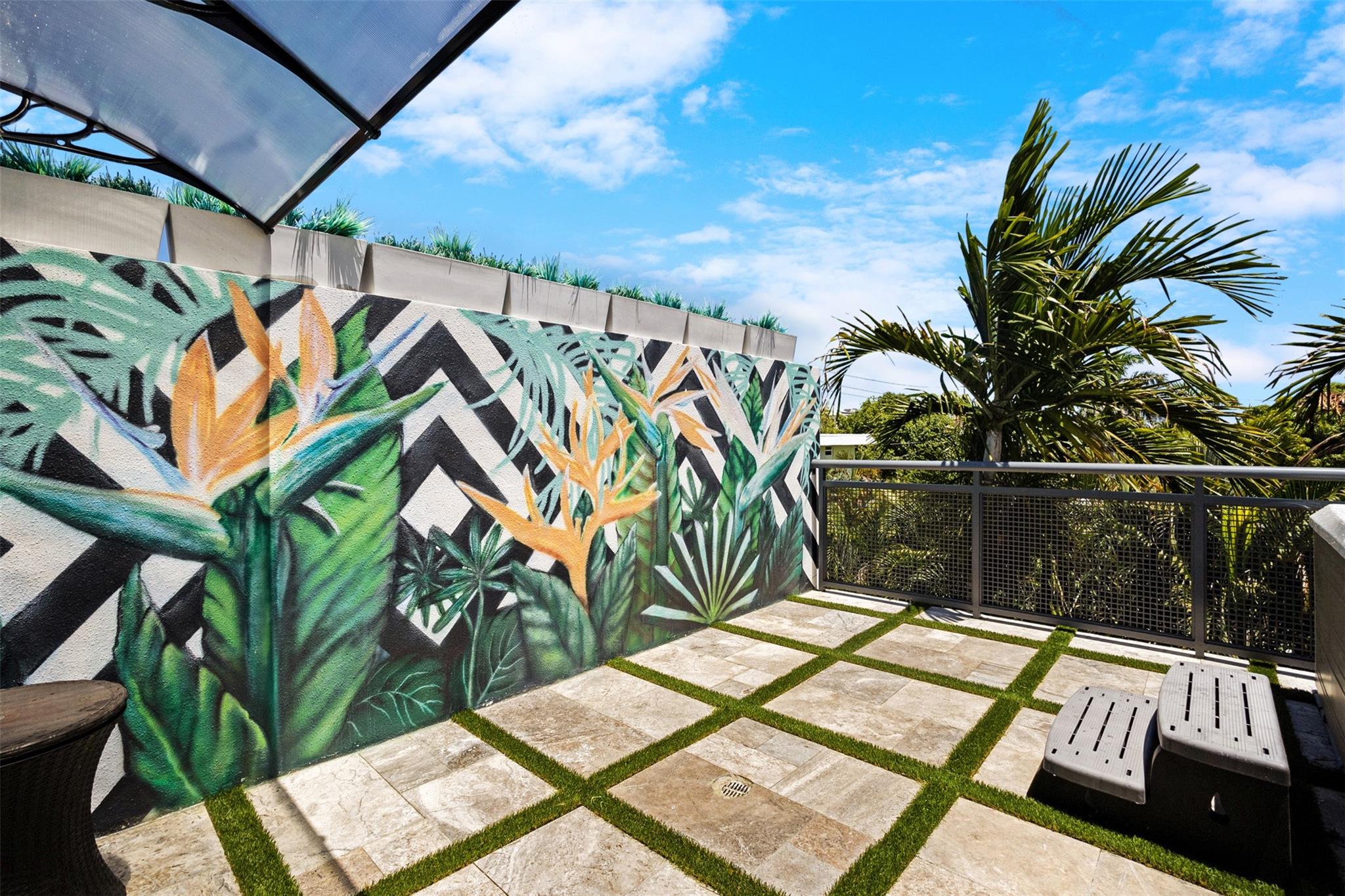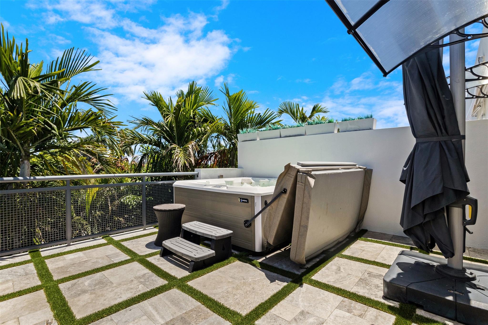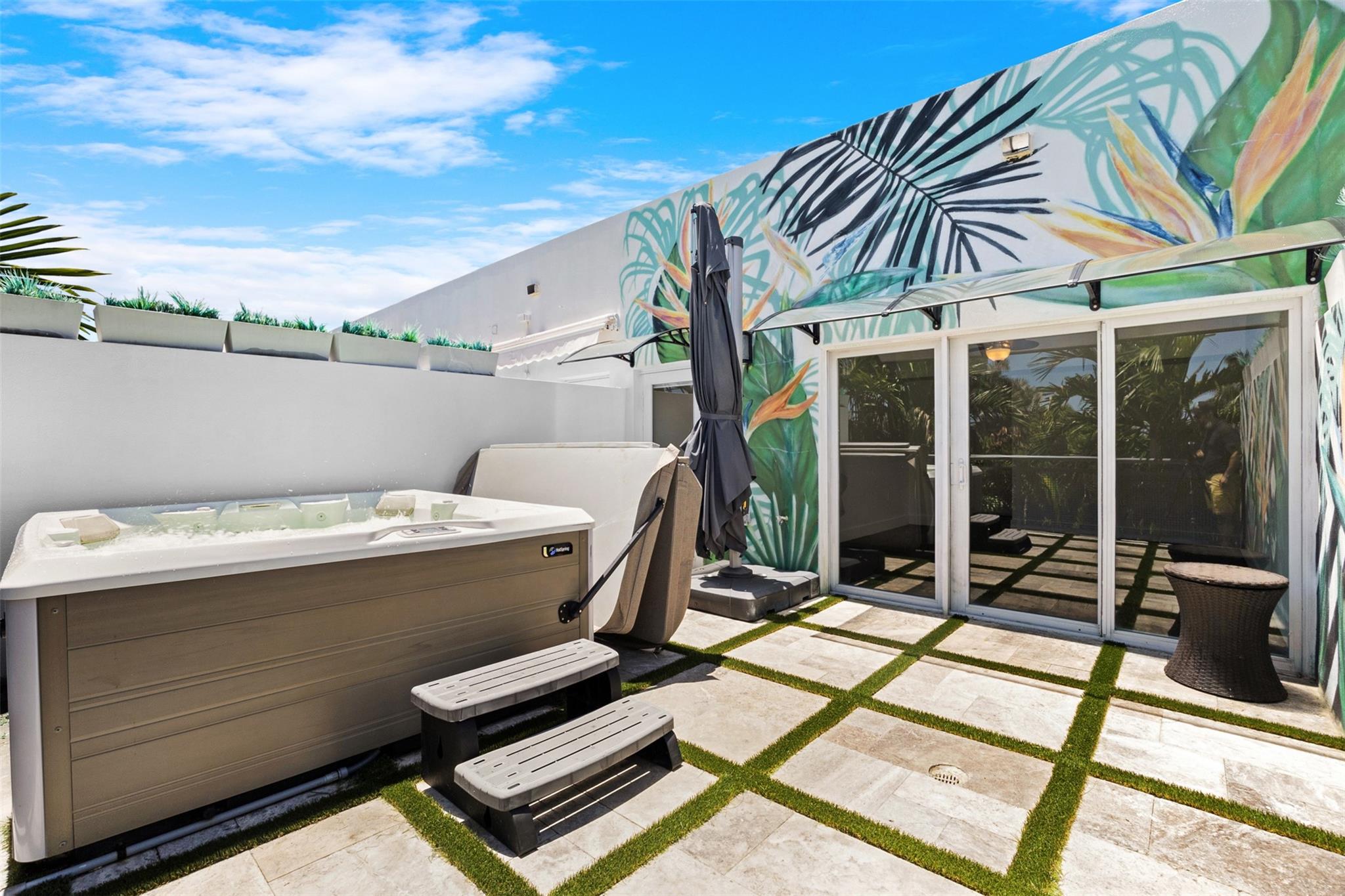 Spacious contemporary townhome in EAST Victoria Park features 3-beds, 3 & 1/2 baths, on 3 levels with yard, and 3 terraces. The beach is a 1.2 mile walk with a myriad of restaurants, shopping and amenities along the way. Built in 2006, this home has main living, dining, kitchen, garage & yard on ground floor. Second floor is the primary suite including a large bath, 3-person STEAM shower, 2-person hot-tub, & walk-in closet. Down the hall is laundry and 2nd en-suite bedroom. Top floor is the 3rd bed (or den,) plus another bath with shower. Full size sliding glass doors open to a roof deck with new tile & grass plus a six-man hot tub.