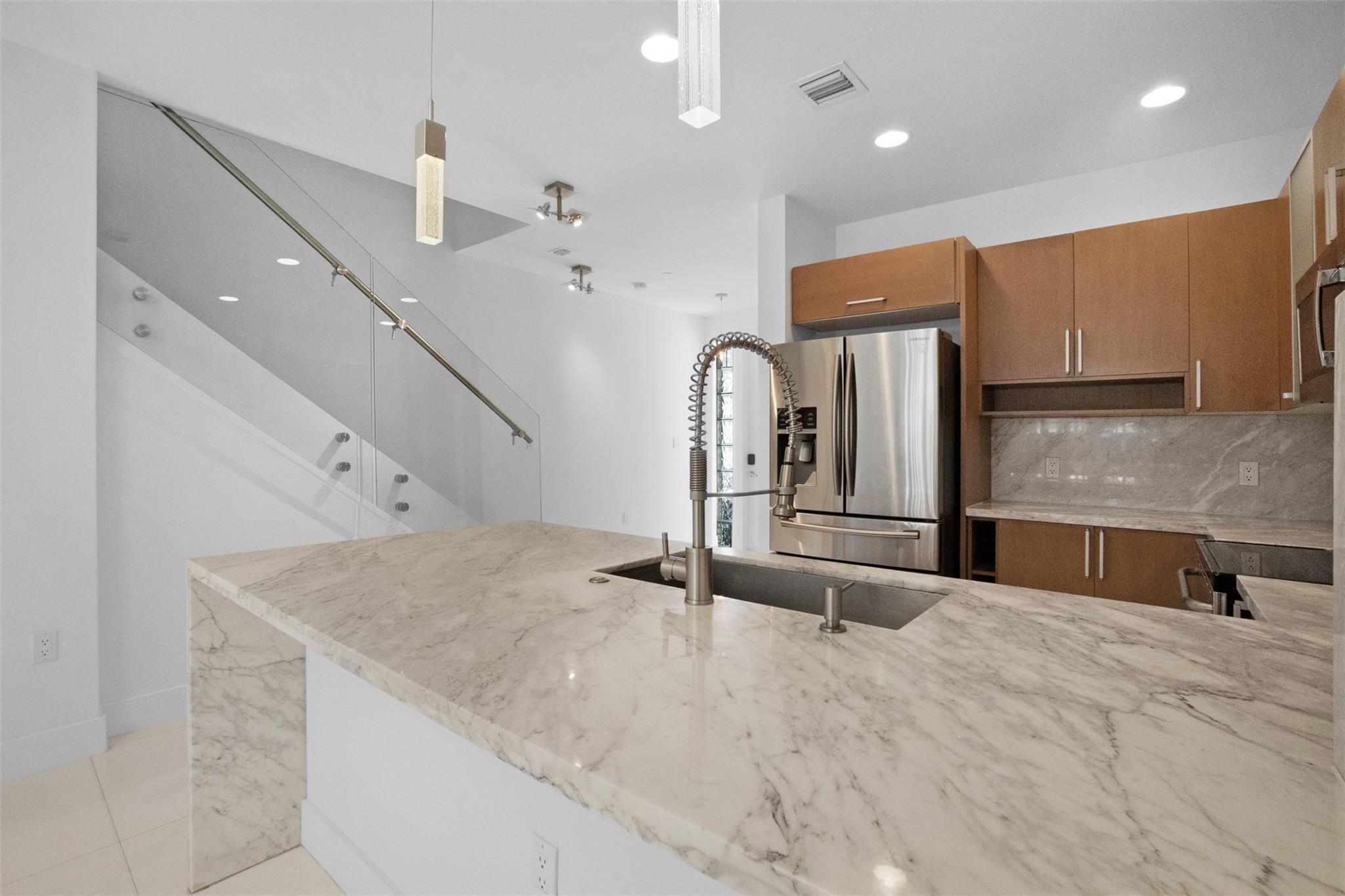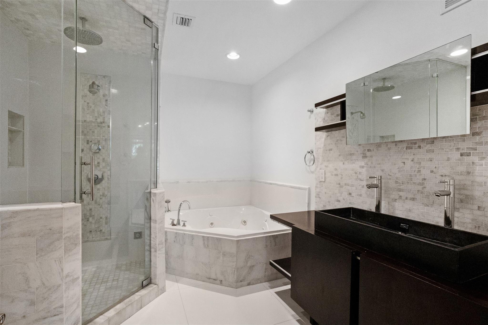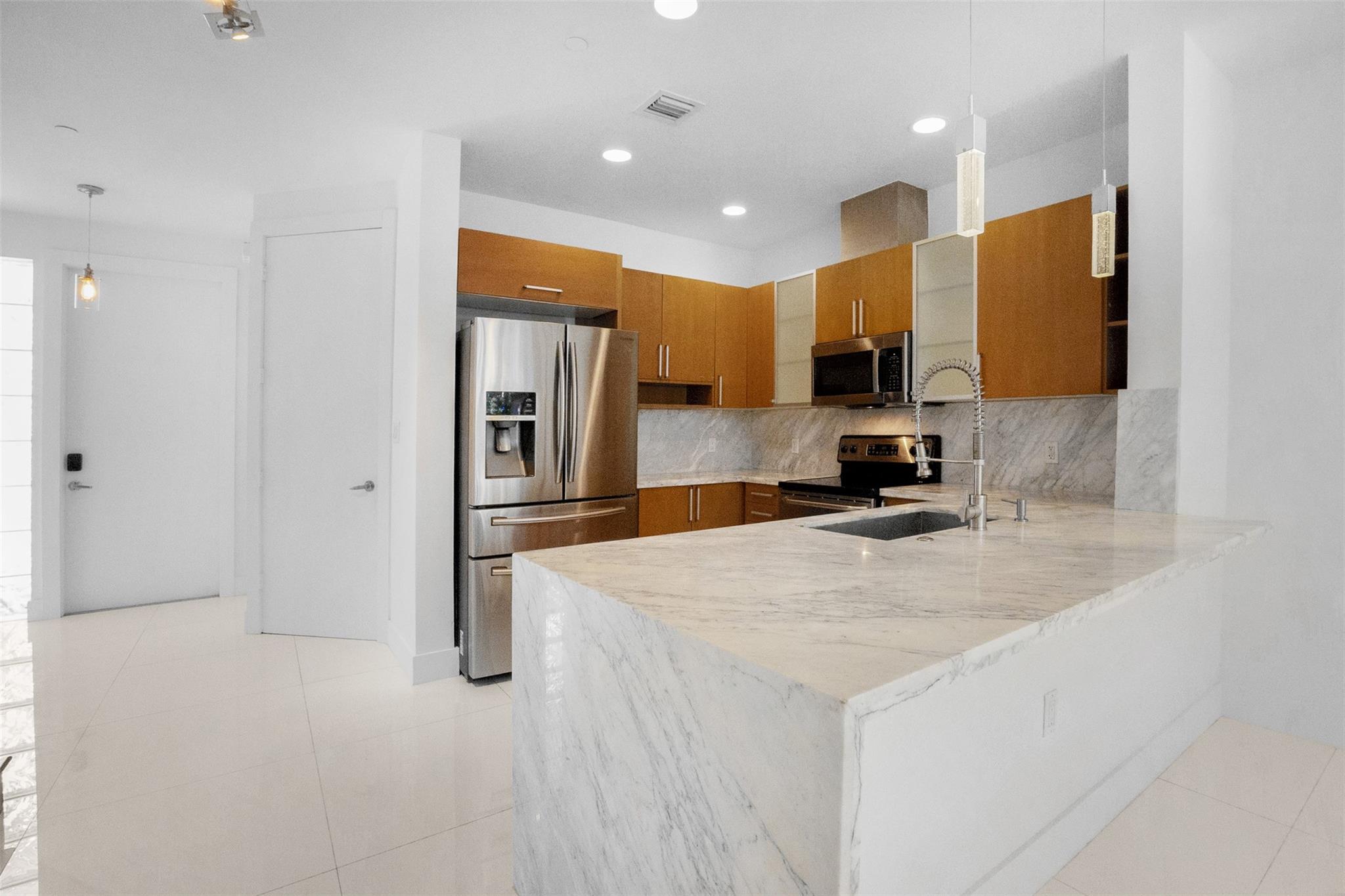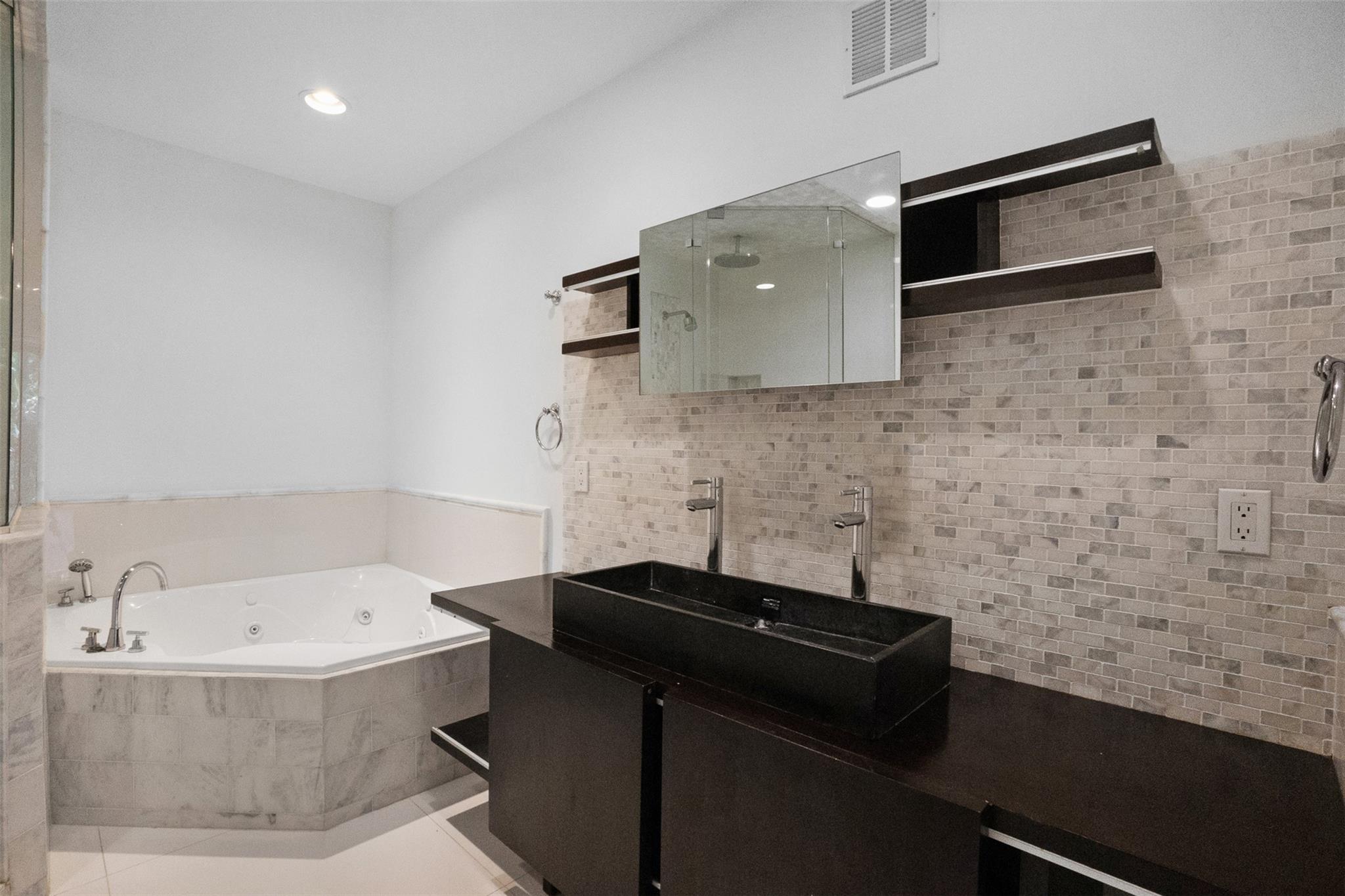 Spacious contemporary townhome in EAST Victoria Park features 3-beds, 3 & 1/2 baths, on 3 levels with yard, and 3 terraces. The beach is a 1.2 mile walk with a myriad of restaurants, shopping and amenities along the way. Built in 2006, this home has main living, dining, kitchen, garage & yard on ground floor. Second floor is the primary suite including a large bath, 3-person STEAM shower, 2-person hot-tub, & walk-in closet. Down the hall is laundry and 2nd en-suite bedroom. Top floor is the 3rd bed (or den,) plus another bath with shower. Full size sliding glass doors open to a roof deck with new tile & grass plus a six-man hot tub.