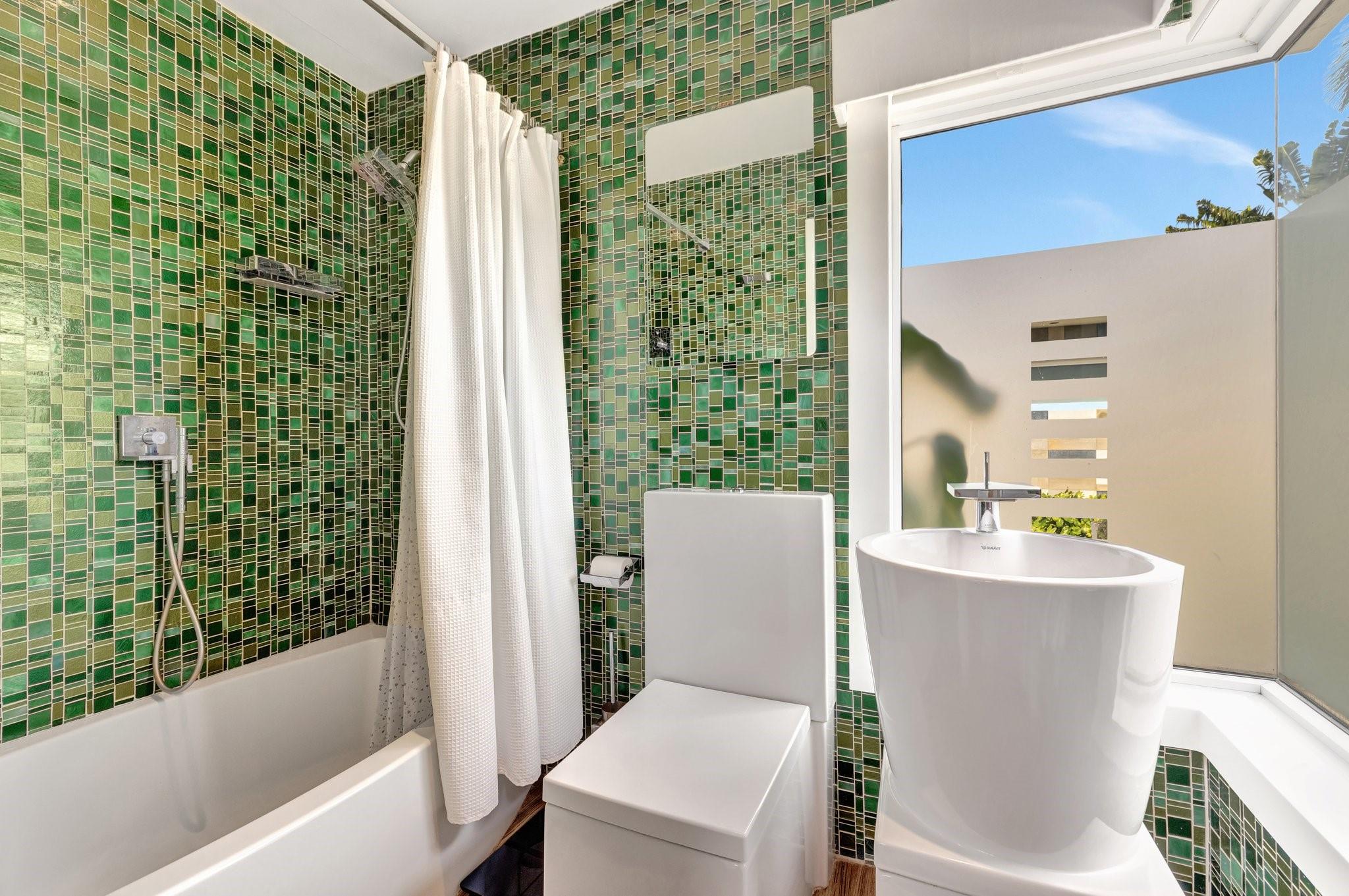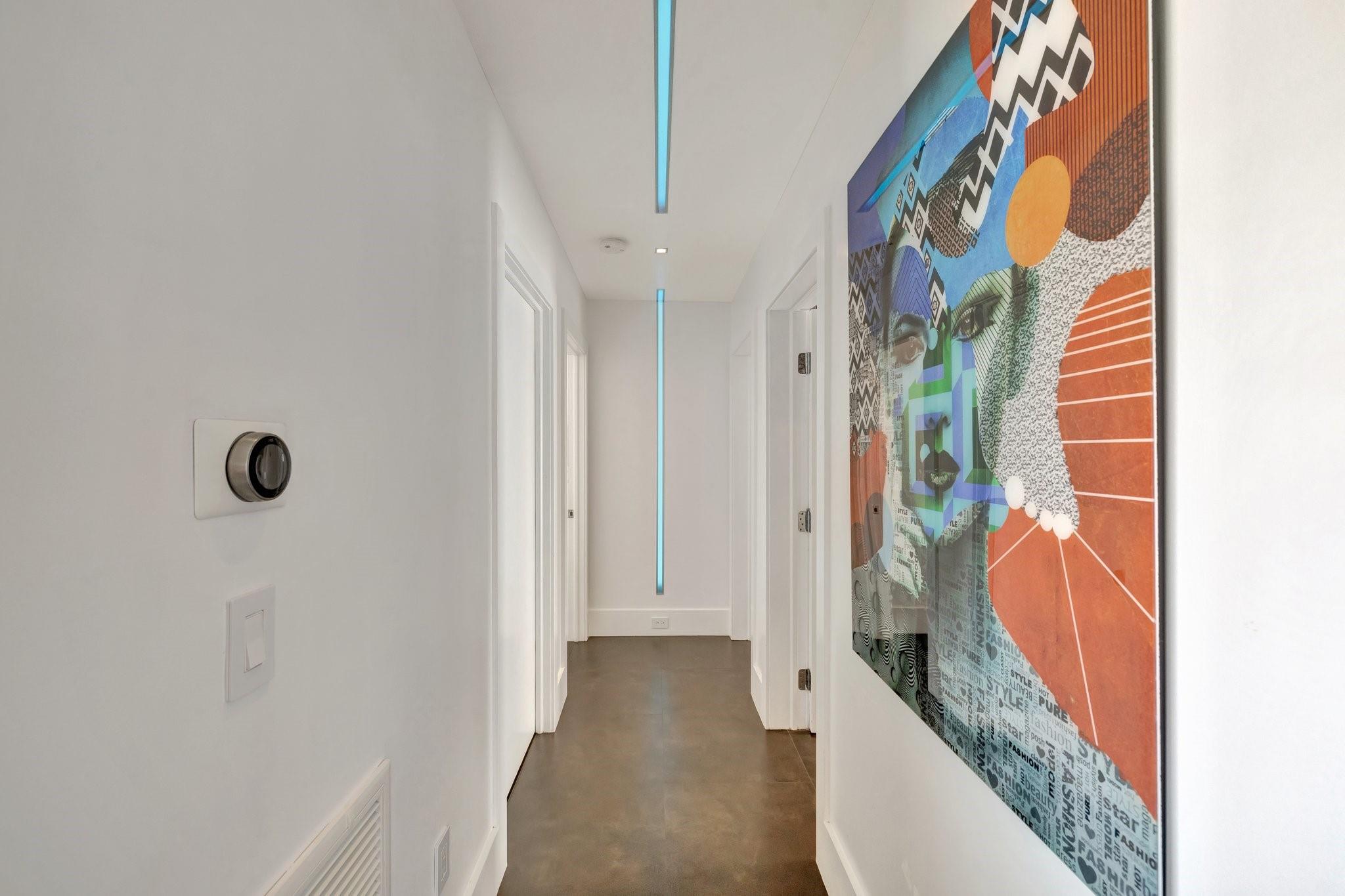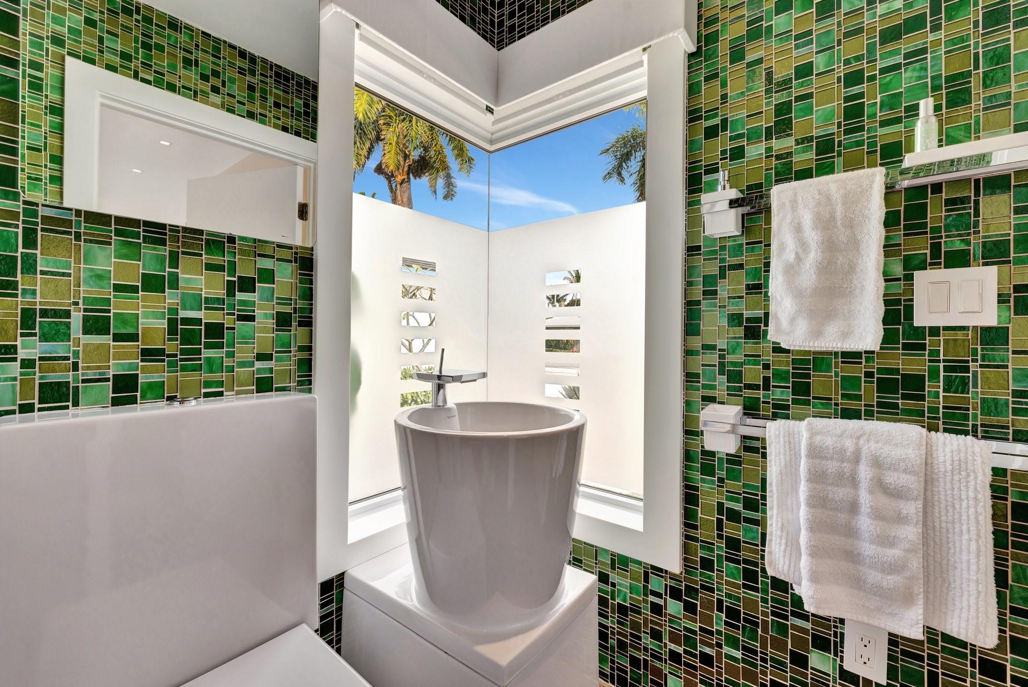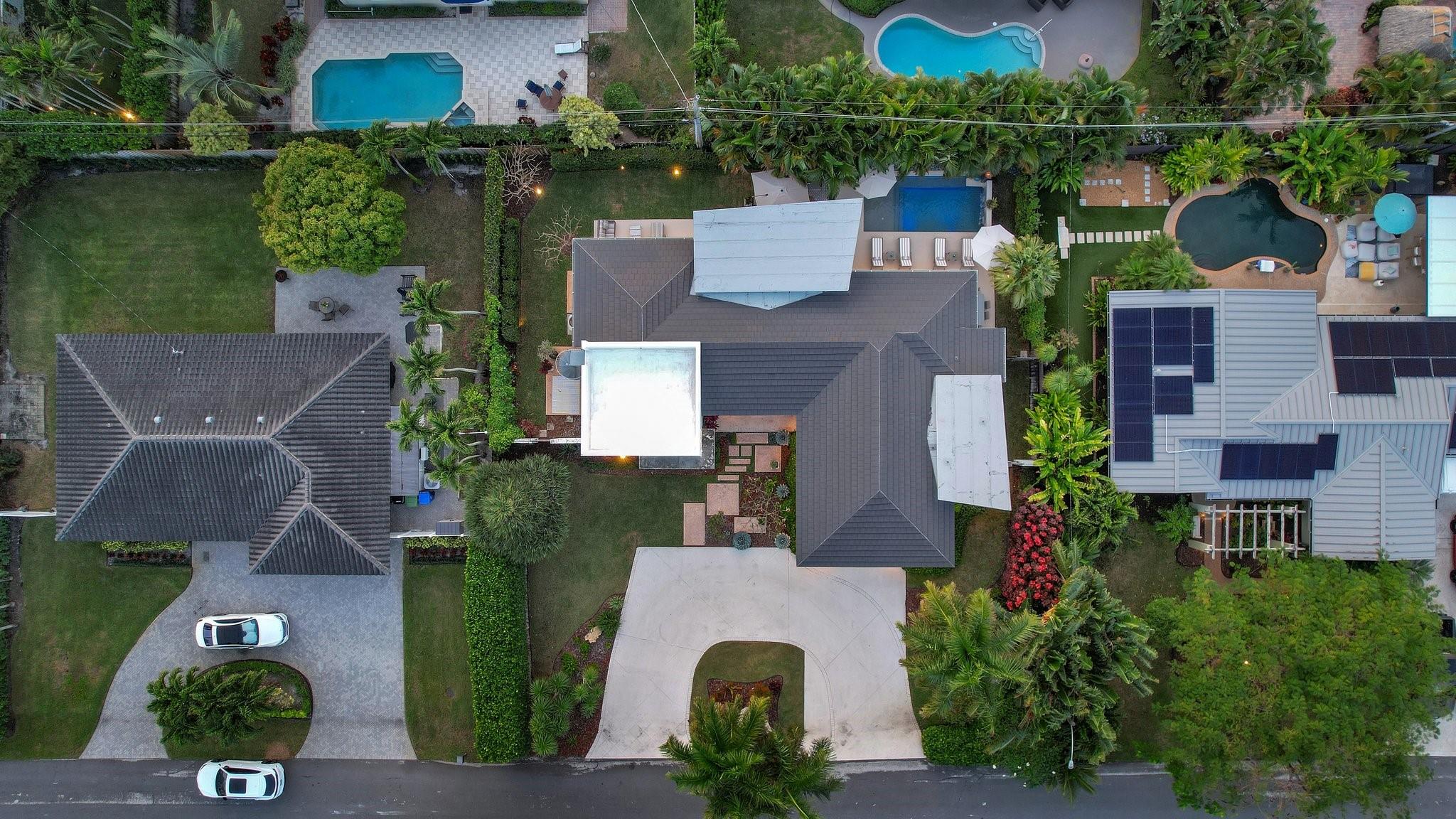 Seeking extraordinary & unique? Enjoy Californian inspired architecture & great curb appeal, award winning design throughout. Move-in ready residence, carefully curated custom finishes & materials usually found in $3m plus homes! Set-back from street with circular driveway. New roof, totally private courtyard pool area, Sonos & professional landscape lighting. Large format custom windows in living areas. Innovative floorplan, porcelain floors, modern eat-in kitchen, custom Italian cabinetry, Google smart home. Inviting living & dining areas for great entertaining flow. Expansive Primary Suite, spa quality custom bath Laufen fixtures & walk-in closet. Totally separate guest & additional bedroom, both upgraded baths (includes cabana) & Italian mosaic walls. Large 2 car garage & roof terrace