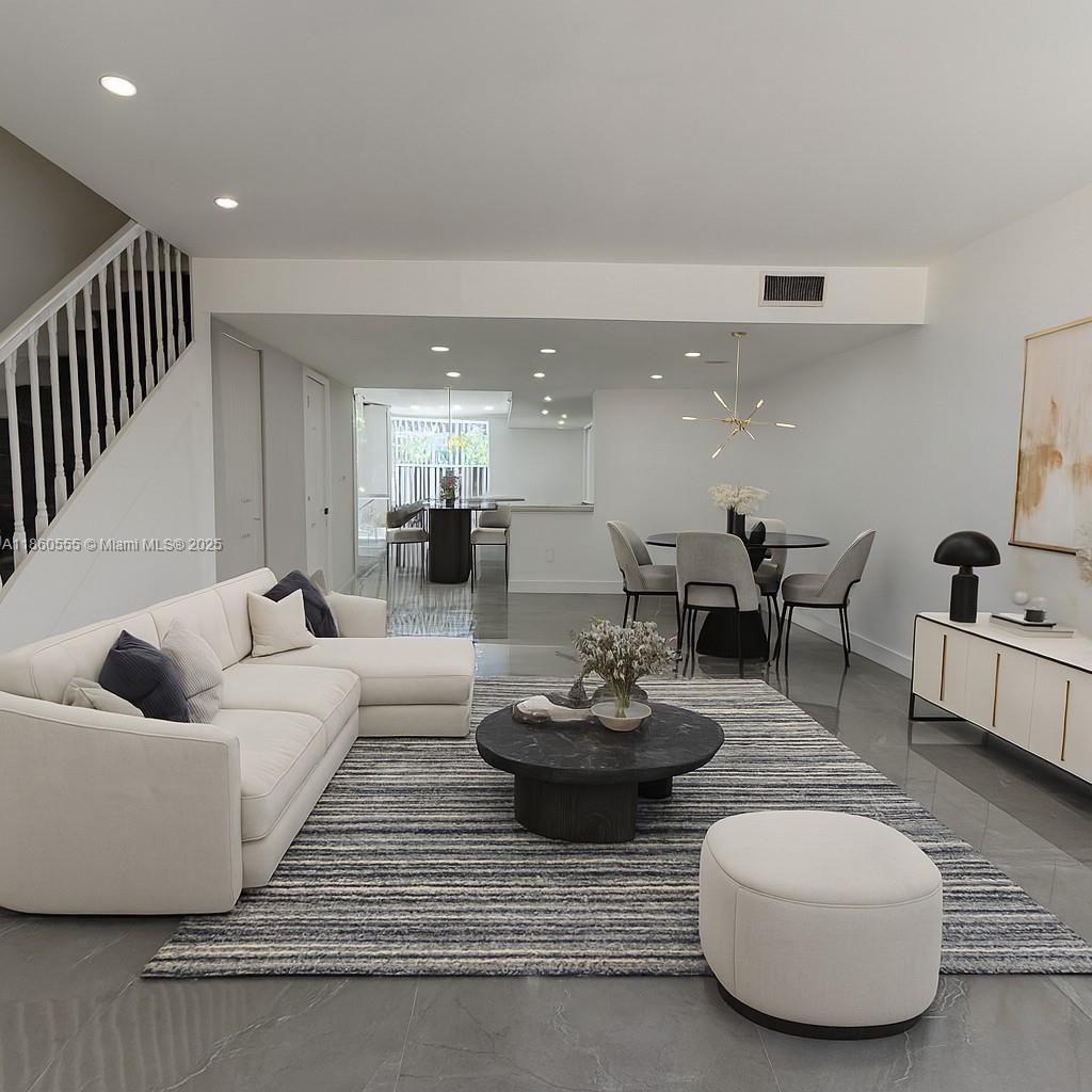 Fully renovated townhouse 2-bedroom 2.5 bathroom in prime location, Hallandale Beach! Bright and move-in ready with marble floors downstairs, laminate upstairs, recessed lighting, and abundant natural light. Modern kitchen with oversized island, buffet-style credenza, and brand-new high-end stainless steel appliances. Two large bedroom suites with walk-in closets and updated baths. Features new A/C, full-size washer/dryer, private patio, and ample storage. Quiet, well-managed community with clubhouse, pool, tennis courts, and playground. Walking distance to parks and synagogue, minutes to the beach, Gulfstream, dining, and shopping. No special assessments!