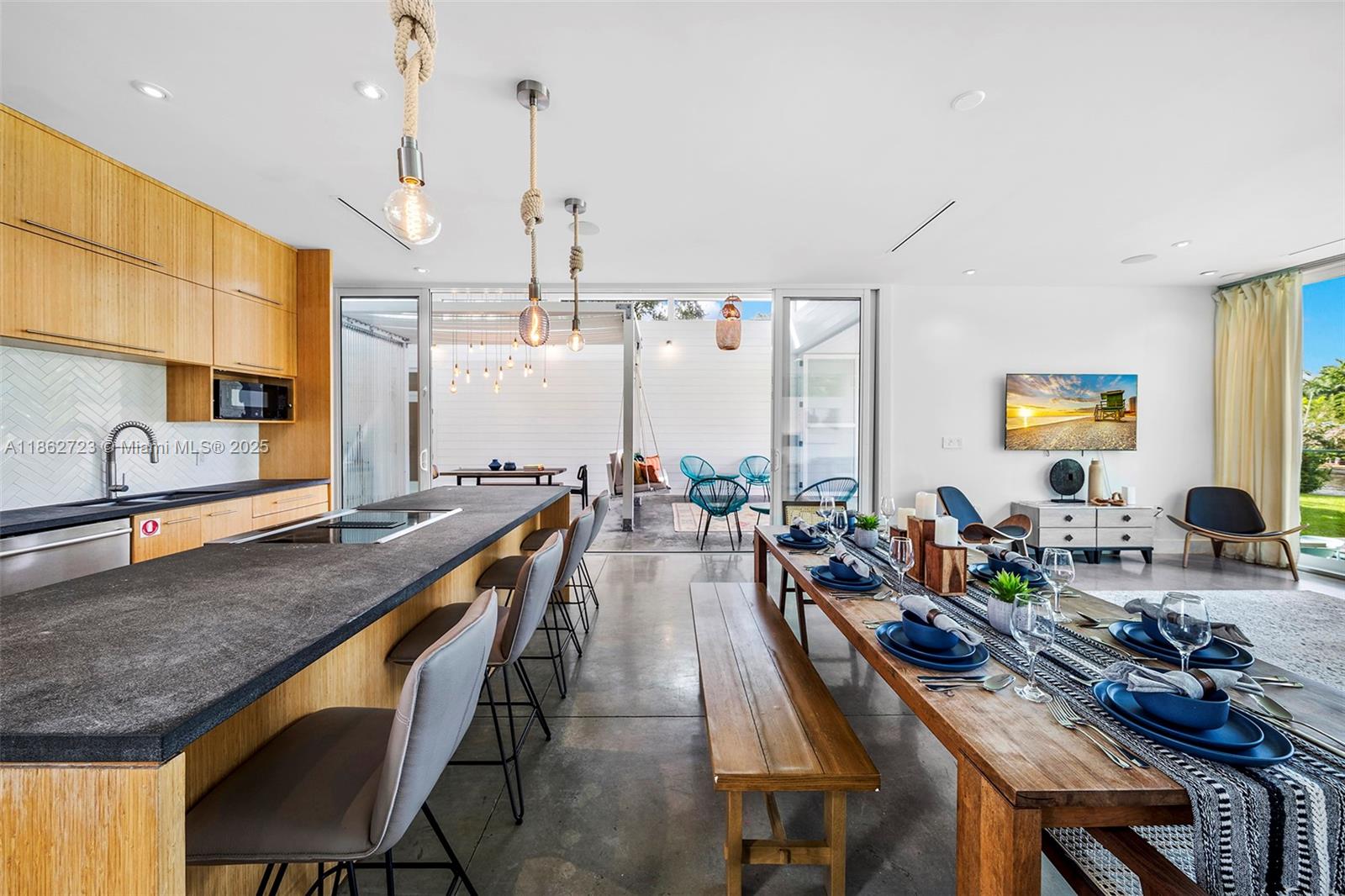 Villa Tulum is a waterfront retreat in Miami’s sought-after Upper East Side, where modern comfort blends with a tropical lifestyle. Located on an 11,000 sq.ft. lot, this 2017-built estate is designed for seamless indoor-outdoor living. The main residence offers an airy open-plan living and dining area, sleek kitchen, 4 bedrooms, and a breezy covered patio. A detached two-story guest house includes a 2-bedroom loft with kitchen and bath+maid’s quarters and storage. Outdoors, lush gardens surround an infinity pool overlooking the Miami River, complemented by a new private dock for boats up to 65 feet with direct access to the bay. Ready to move in, this property is perfect for those seeking a tranquil primary home, a vacation escape, or a smart investment in a rapidly growing neighborhood.