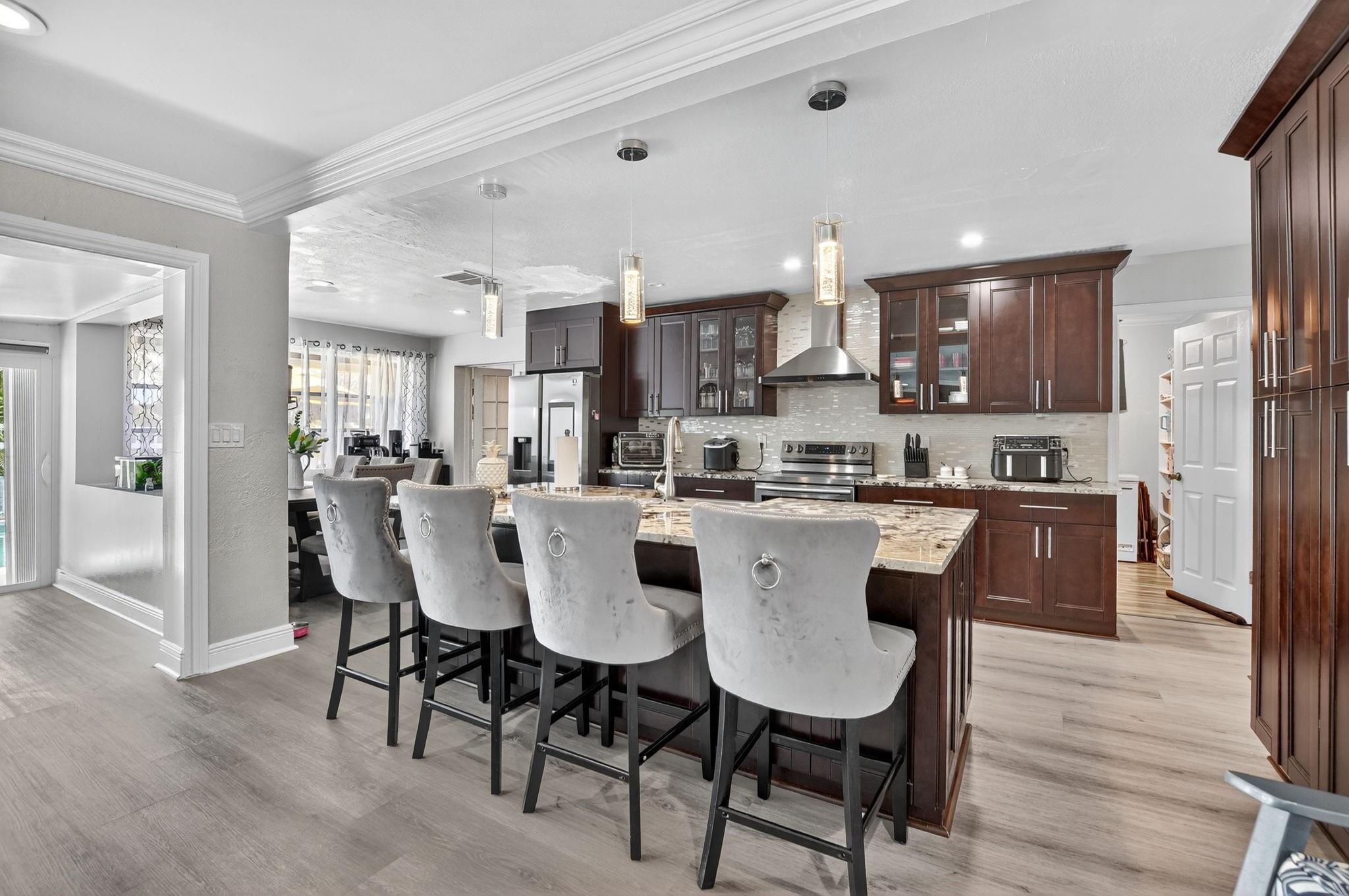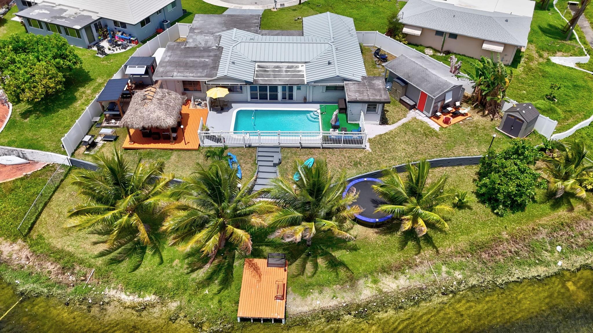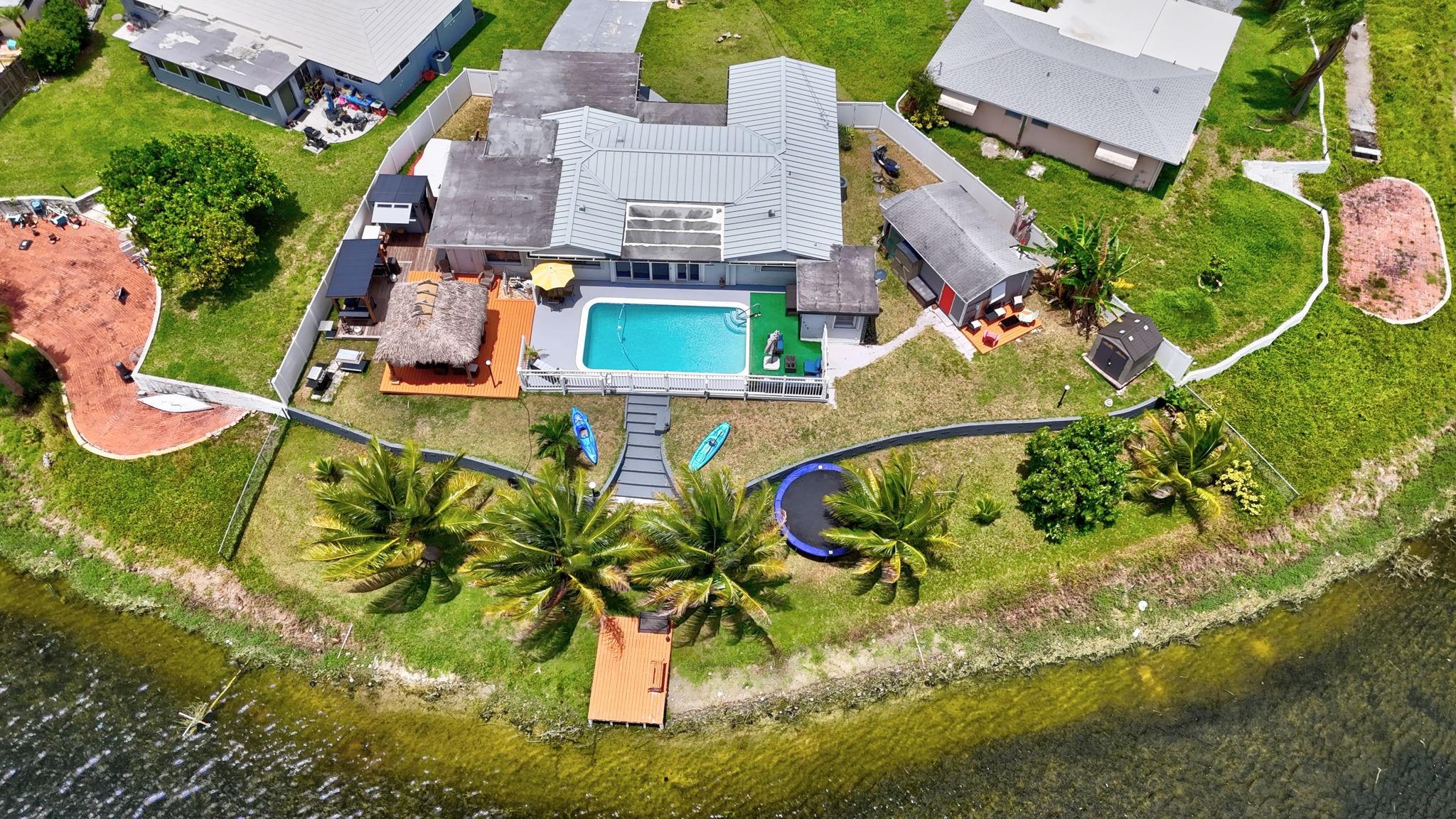 Welcome home to this perfectly situated 3 bedroom, 3 bath lake front, entertainers dream! Located on a secluded cul-de-sac, pie shaped lot with wide sprawling waterfront views. This home is highlighted with a massive open concept kitchen/living room area ideal for hosting guests that seamlessly transitions into an expansive backyard with a private pool, tiki-hut, dock, covered grill area with decking and private bar. The tastefully designed kitchen features granite countertops, all wood cabinets and walk in pantry/utility room. Detached structure and shed offer maximum storage. Large master bedroom with on suite bathroom and split floor plan. Additionally, newer metal roof installed 2021, HVAC 2019, and tankless water heater 2020. Schedule your showing today!