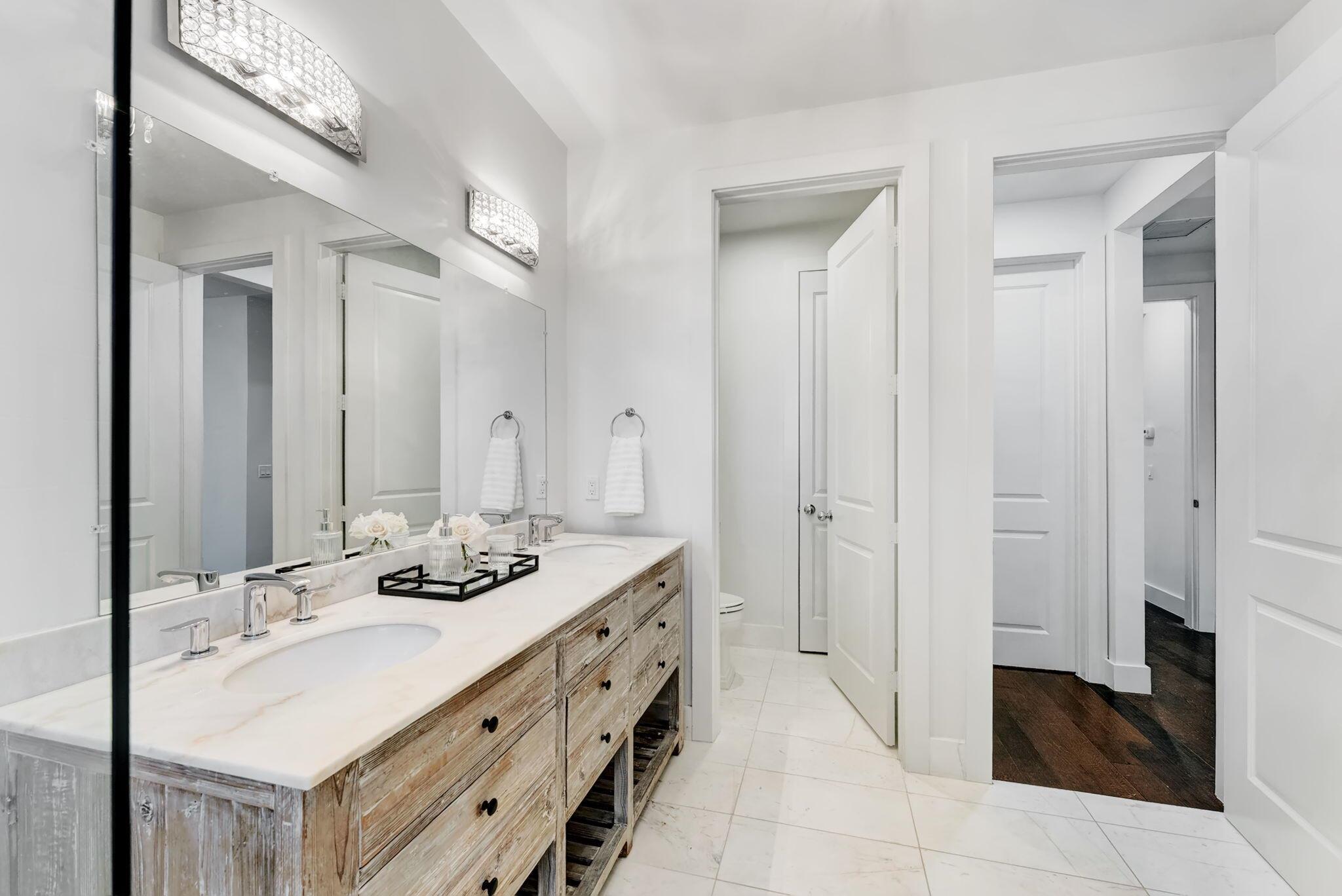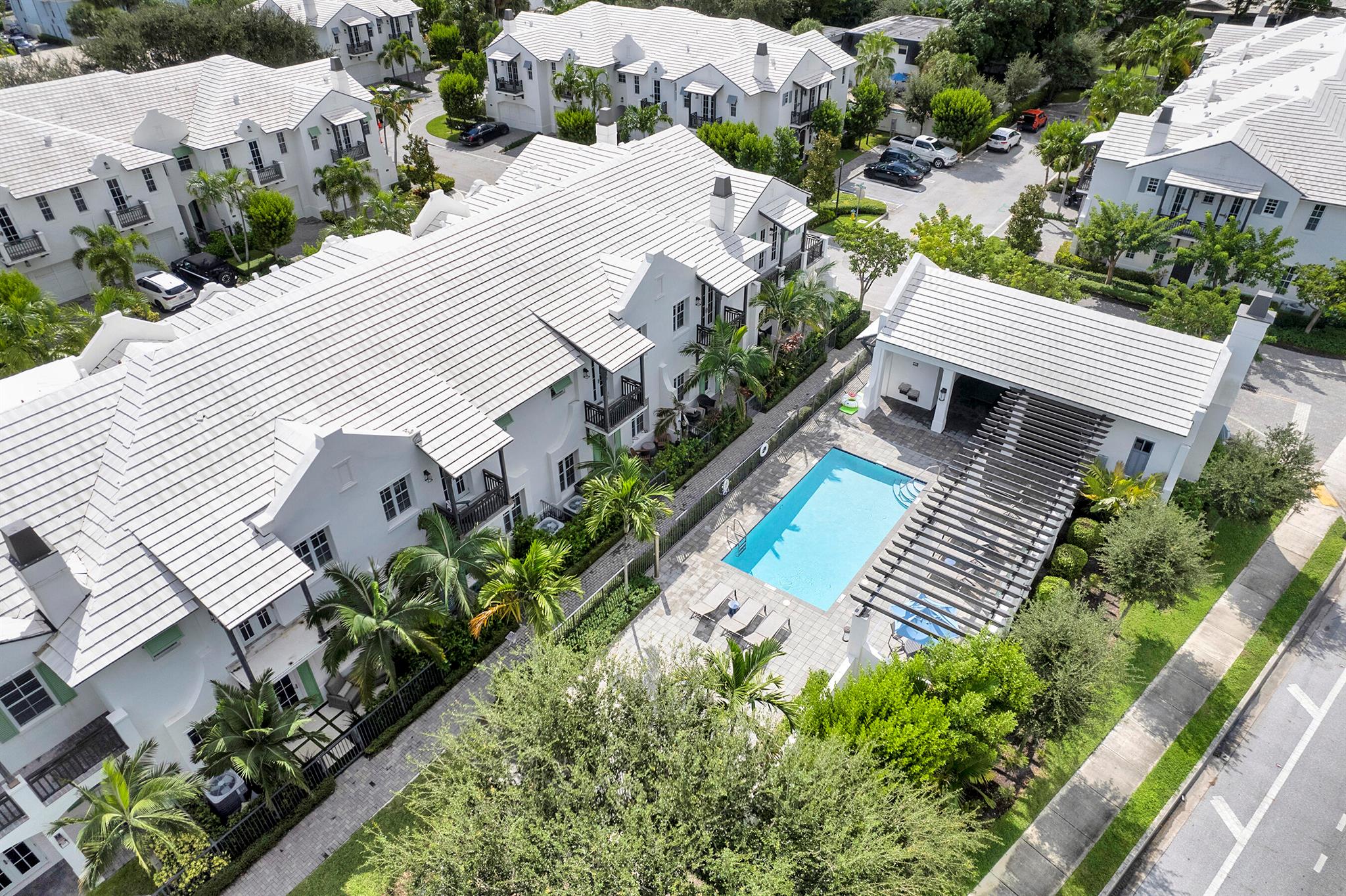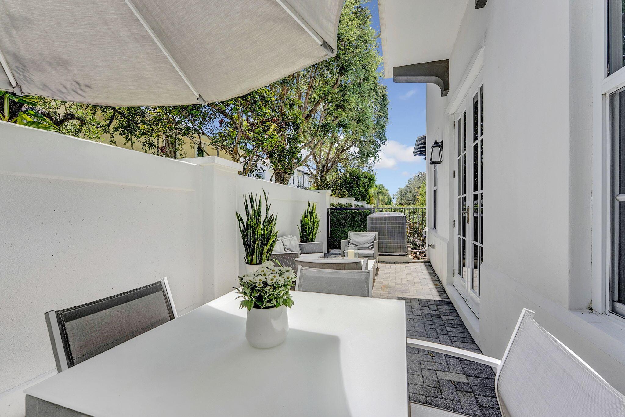 Welcome to this rarely available coastal contemporary townhome located in the most sought-after spot within the charming St. George community. This bright, immaculate home features an open floor plan designed for modern living, blending luxury and comfort. Cook in the gorgeous kitchen showcasing high end cabinetry, an expansive peninsula, quartz/marble countertops and Jenn Air appliances. Beautiful neutral tile flows through the main level, while warm wood floors upstairs add a touch of cozy sophistication. The spacious primary suite is a luxurious retreat, including a spa-inspired bathroom appointed with marble floors and countertops and two walk- in closets. The outdoor space truly makes this property special. French doors open to your private outdoor oasis
