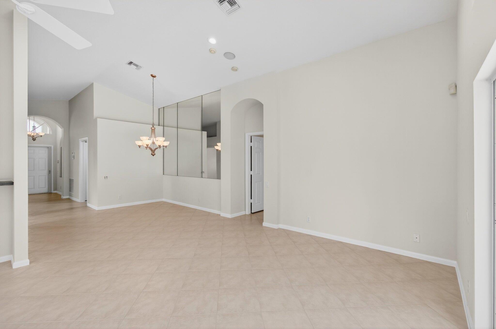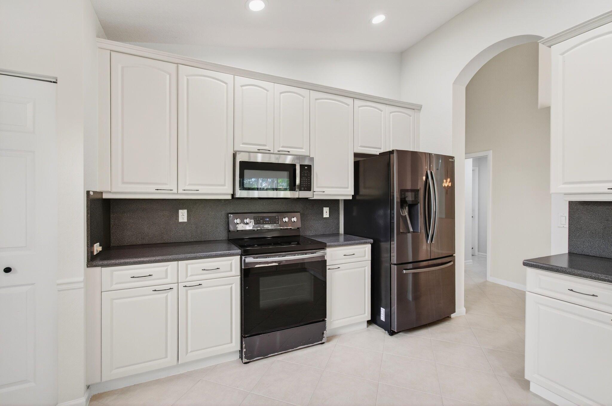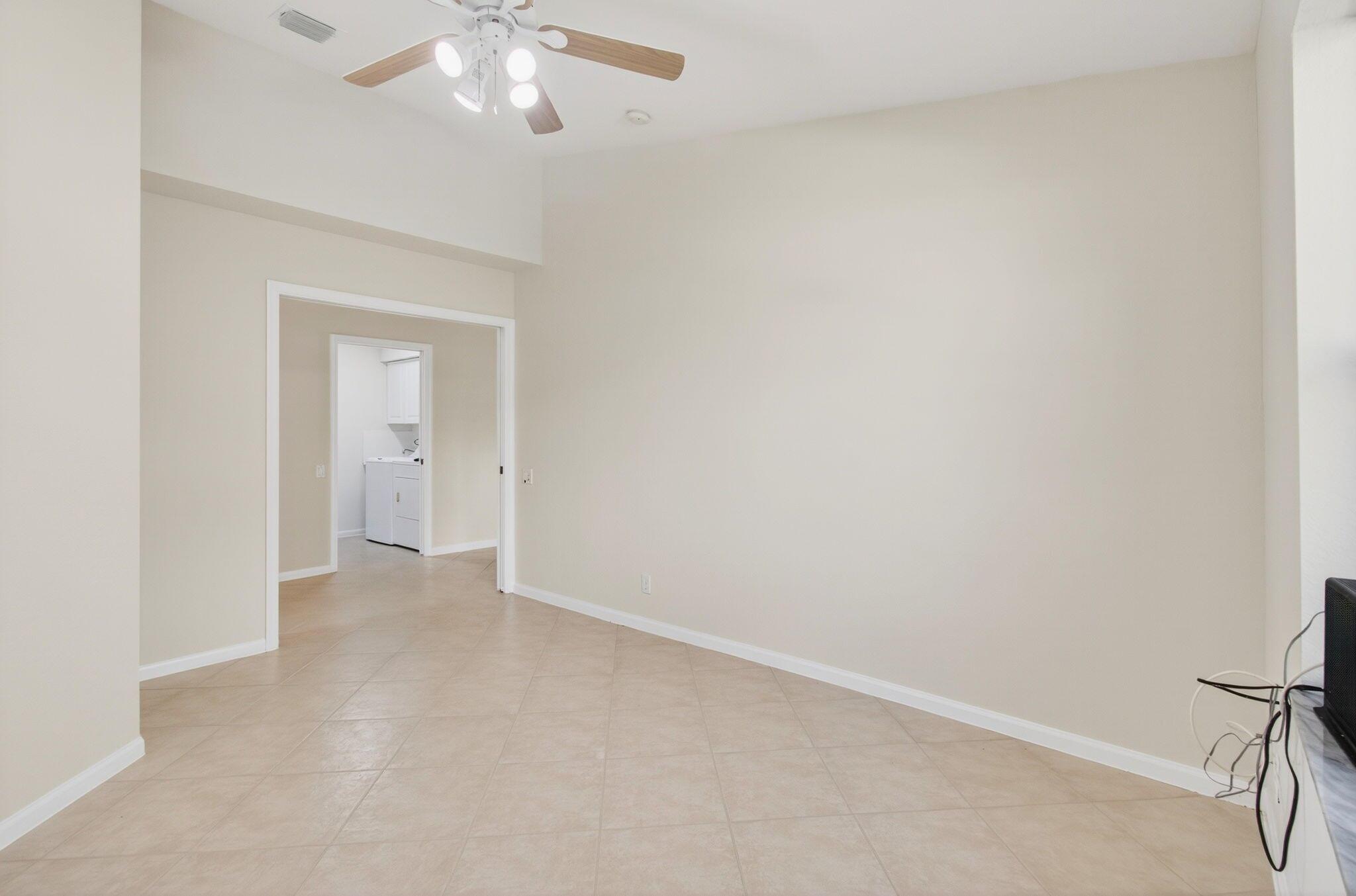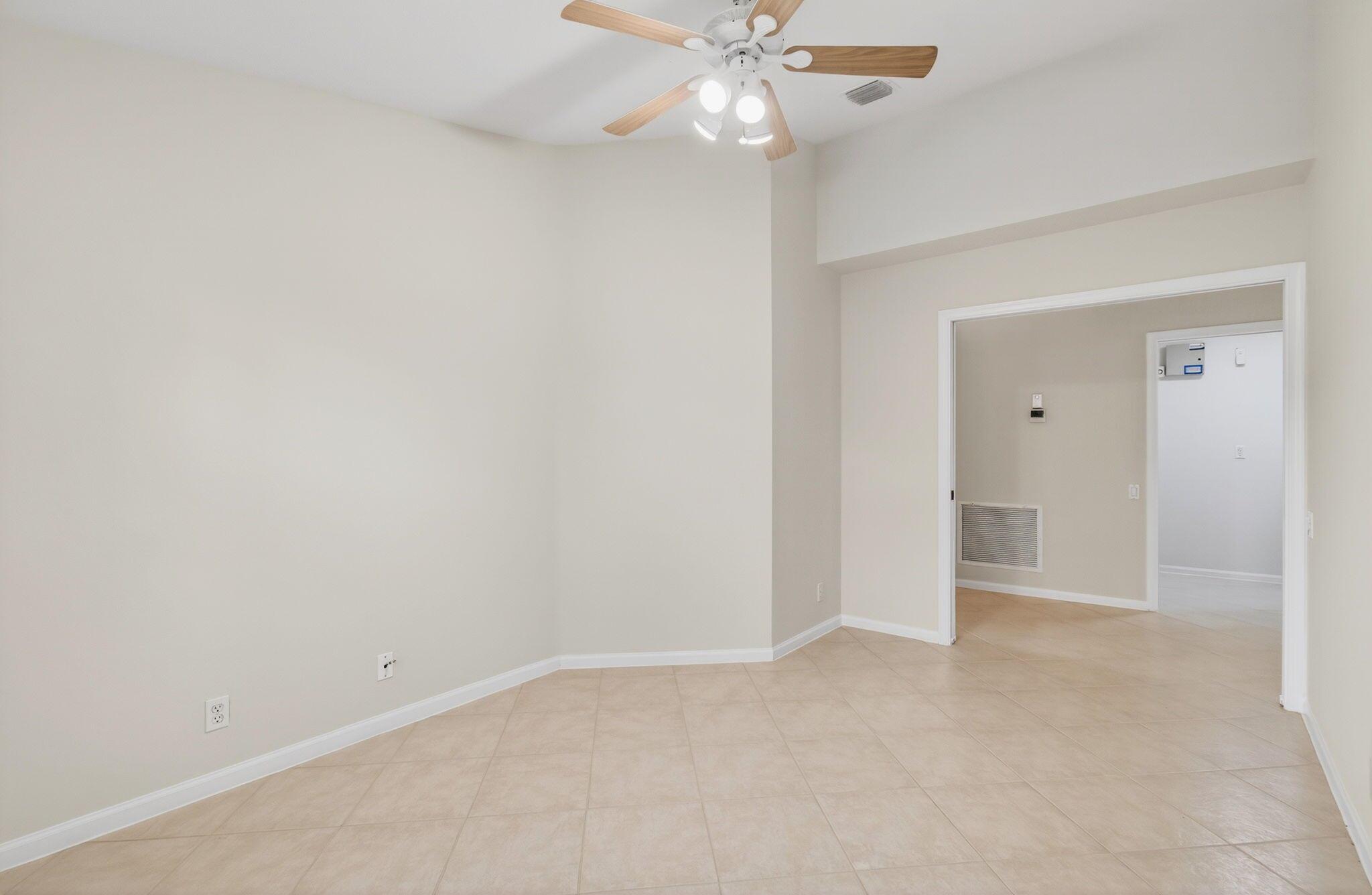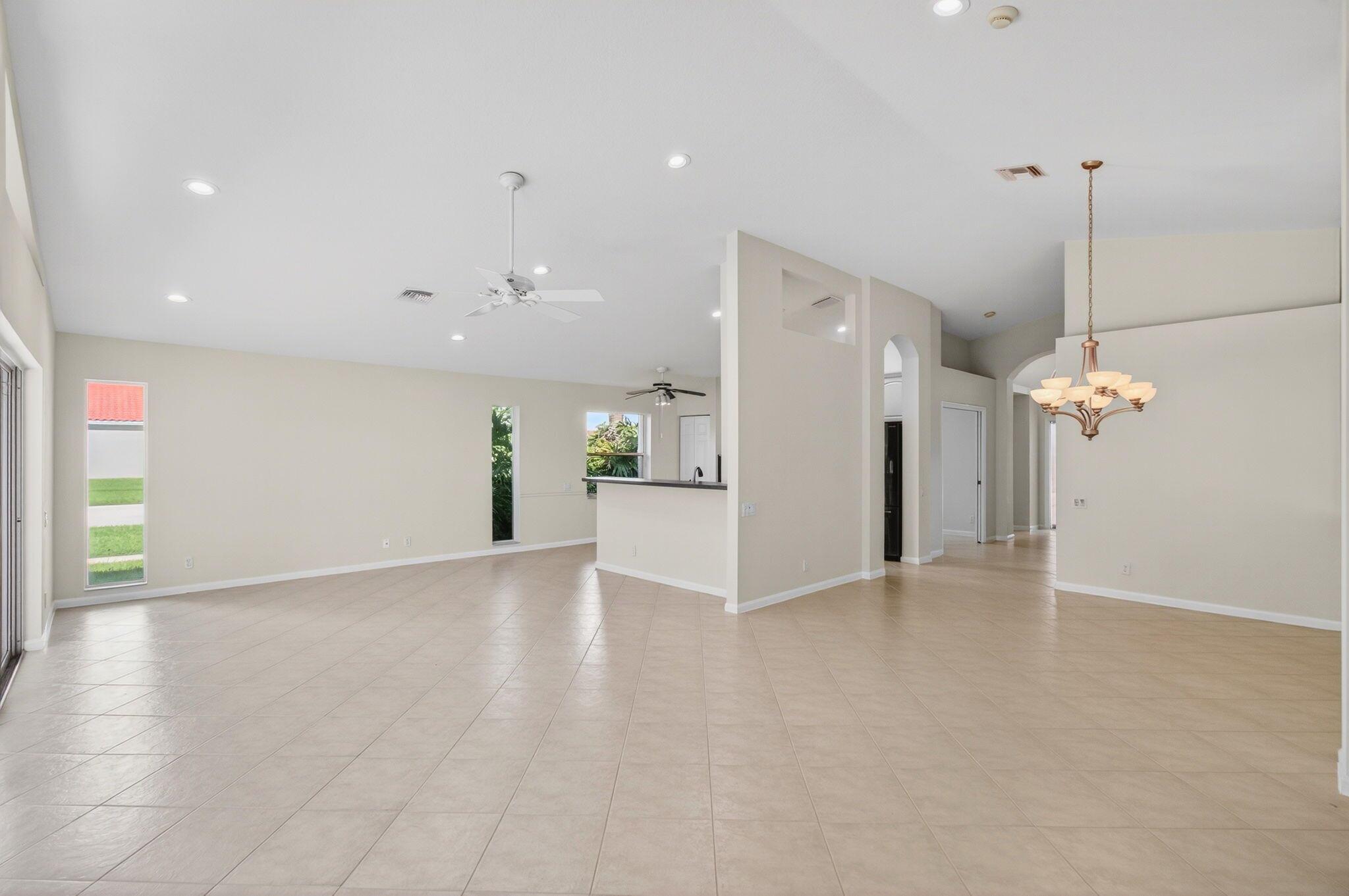 Wake up to gorgeous golf course views in this 2-bedroom plus den Balmoral floor plan home in the desirable Cascades community of Boynton Beach. This corner home offers over 1,800 sq. ft. of open living space with tile flooring throughout and a bright, airy layout that seamlessly connects the living, dining, and kitchen areas.The kitchen features black stainless steel appliances and an eat-in area that overlooks the golf course, making it the perfect spot to enjoy your morning coffee or host casual meals with friends. The split bedroom layout ensures privacy, with the second bedroom and full bath located at the front of the home. The primary suite includes a walk-in closet, double sinks, and a separate tub and shower, creating a serene retreat.