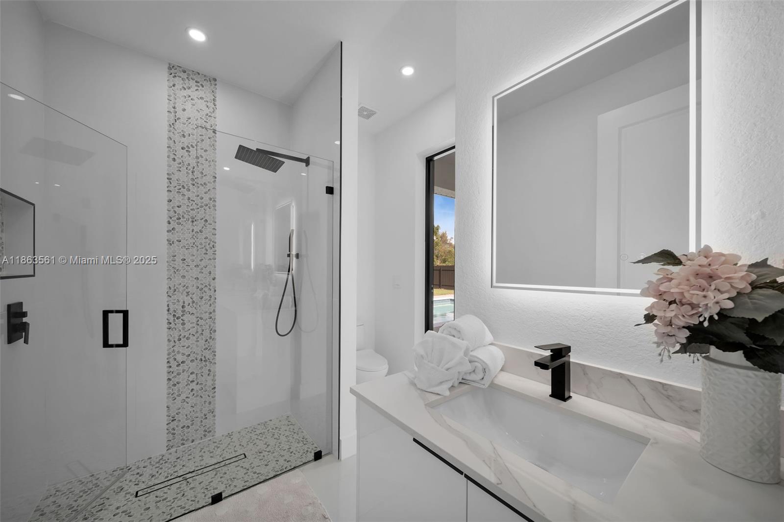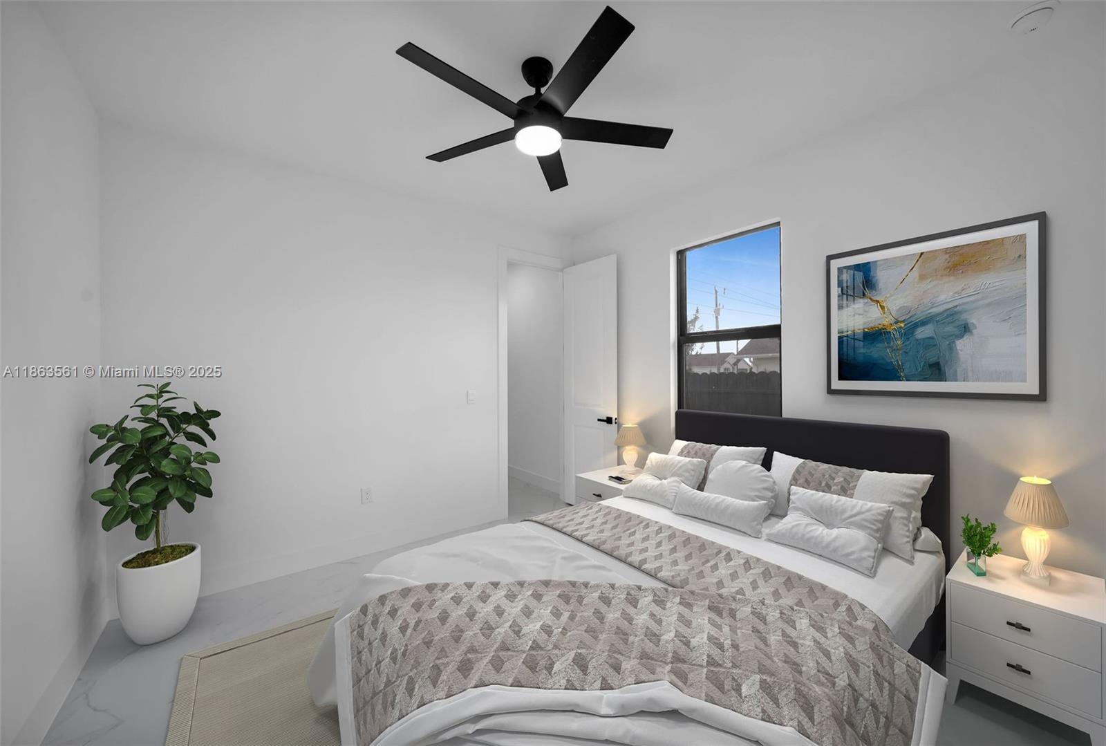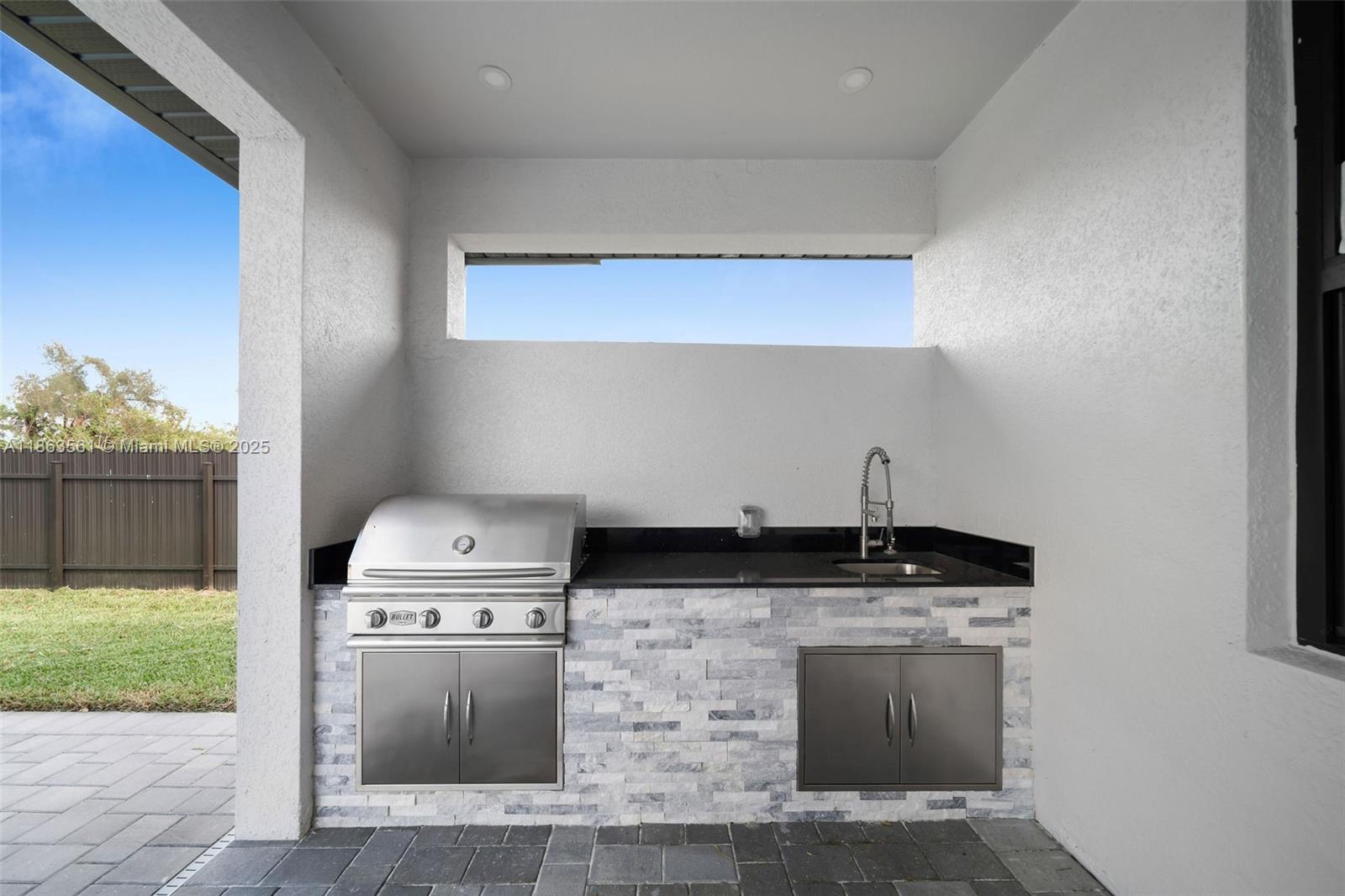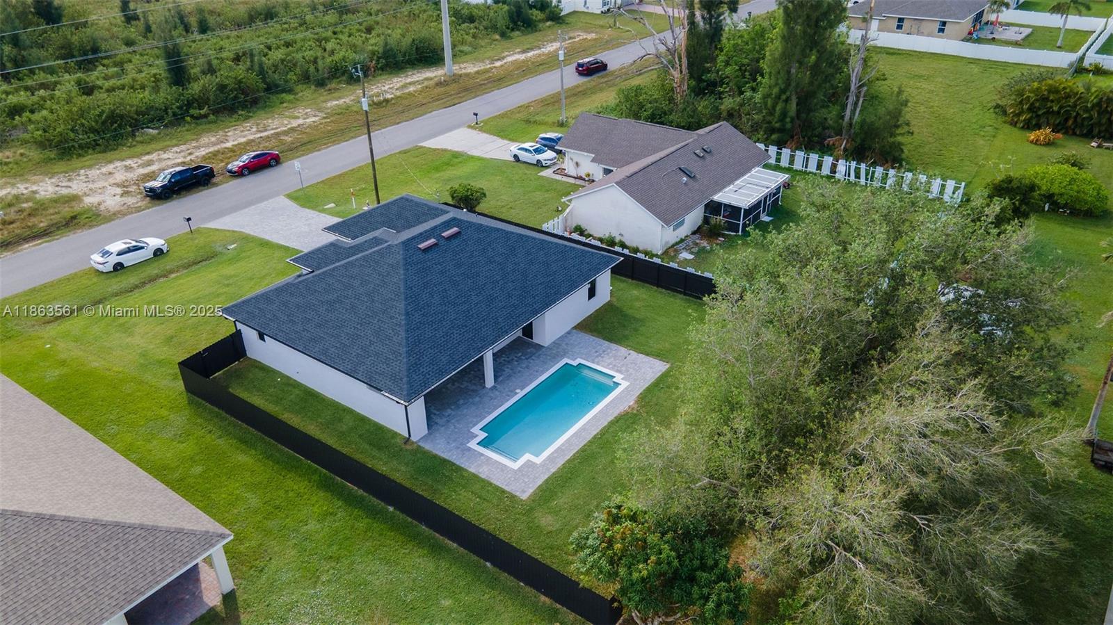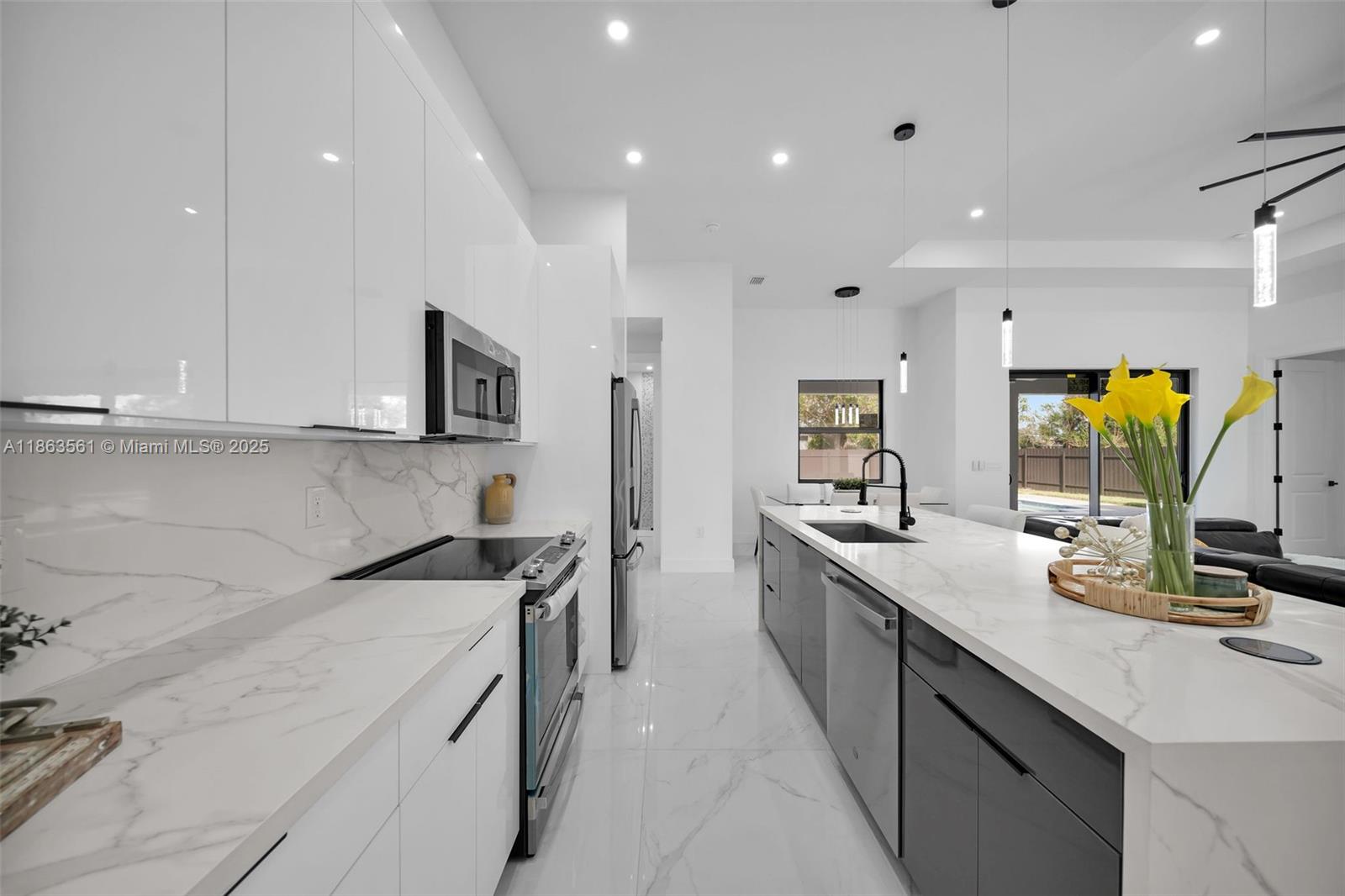 Experience modern Florida living in this 2024 new construction 4-bedroom, 2-bath home. The primary suite features dual walk-in closets and a tiled stand-up shower, while the second bath has backyard access. Enjoy a private saltwater pool with new heater. Porcelain tile flooring flows throughout, complemented by a 2-car garage, 4-car driveway, and storm-impact windows and doors. The chef’s kitchen boasts a Calacatta Quartz waterfall island, high-end appliances, and pop-up wireless charging. LED lighting, ceiling fans, and a dramatic living room fan enhance comfort. Step onto the lanai with a fully equipped outdoor Florida kitchen and lush landscaping with sprinkler system—luxury, style, and function all in one.