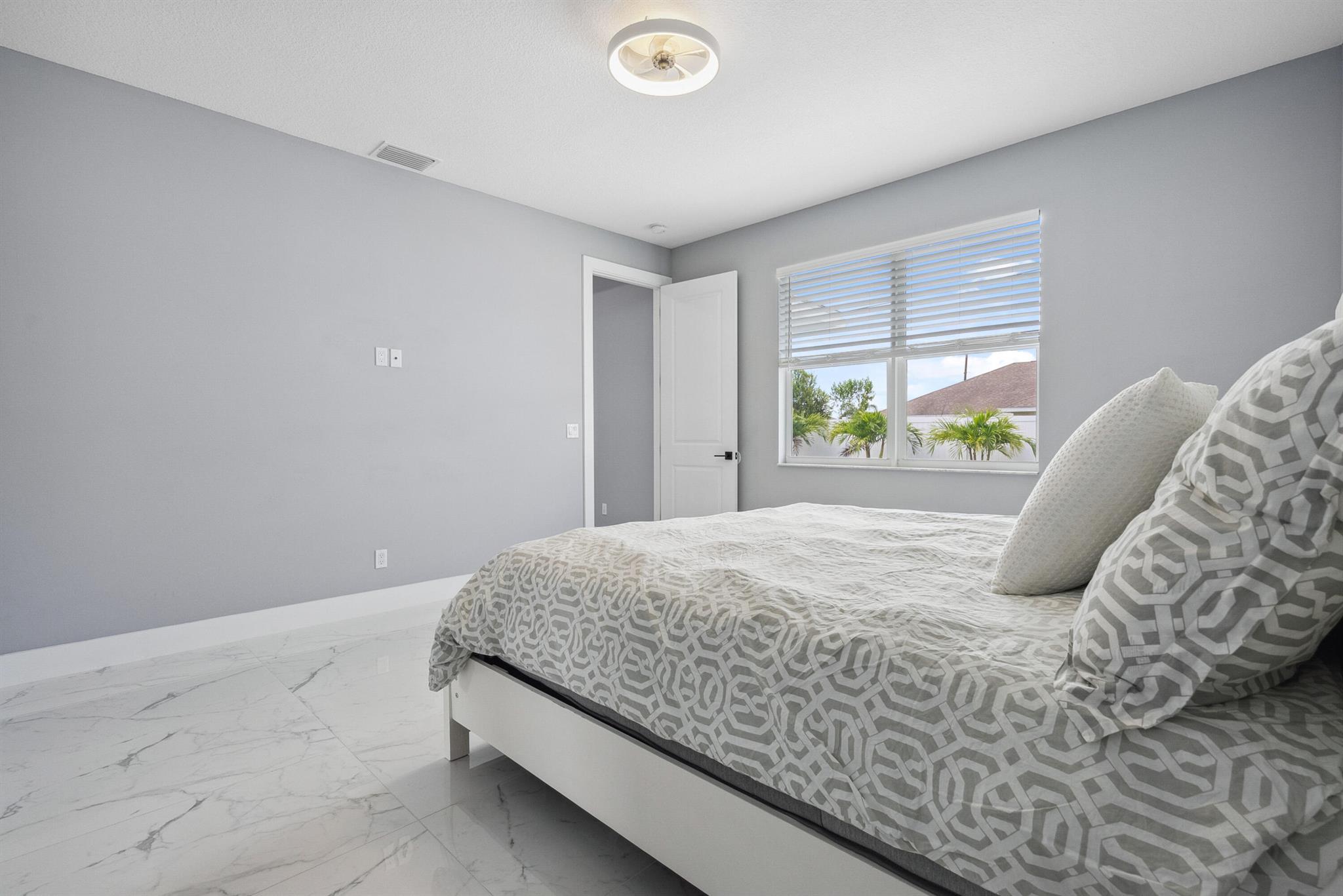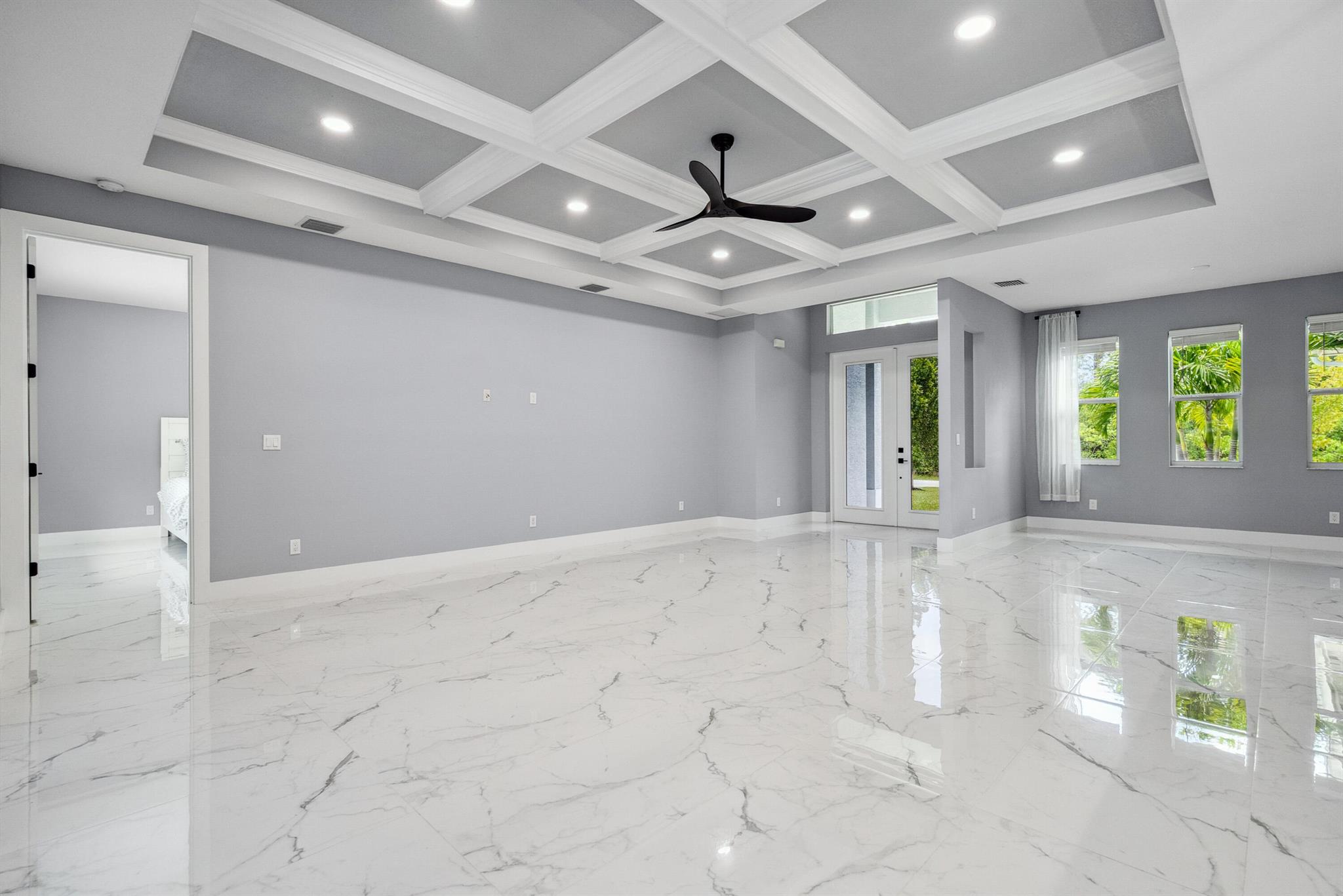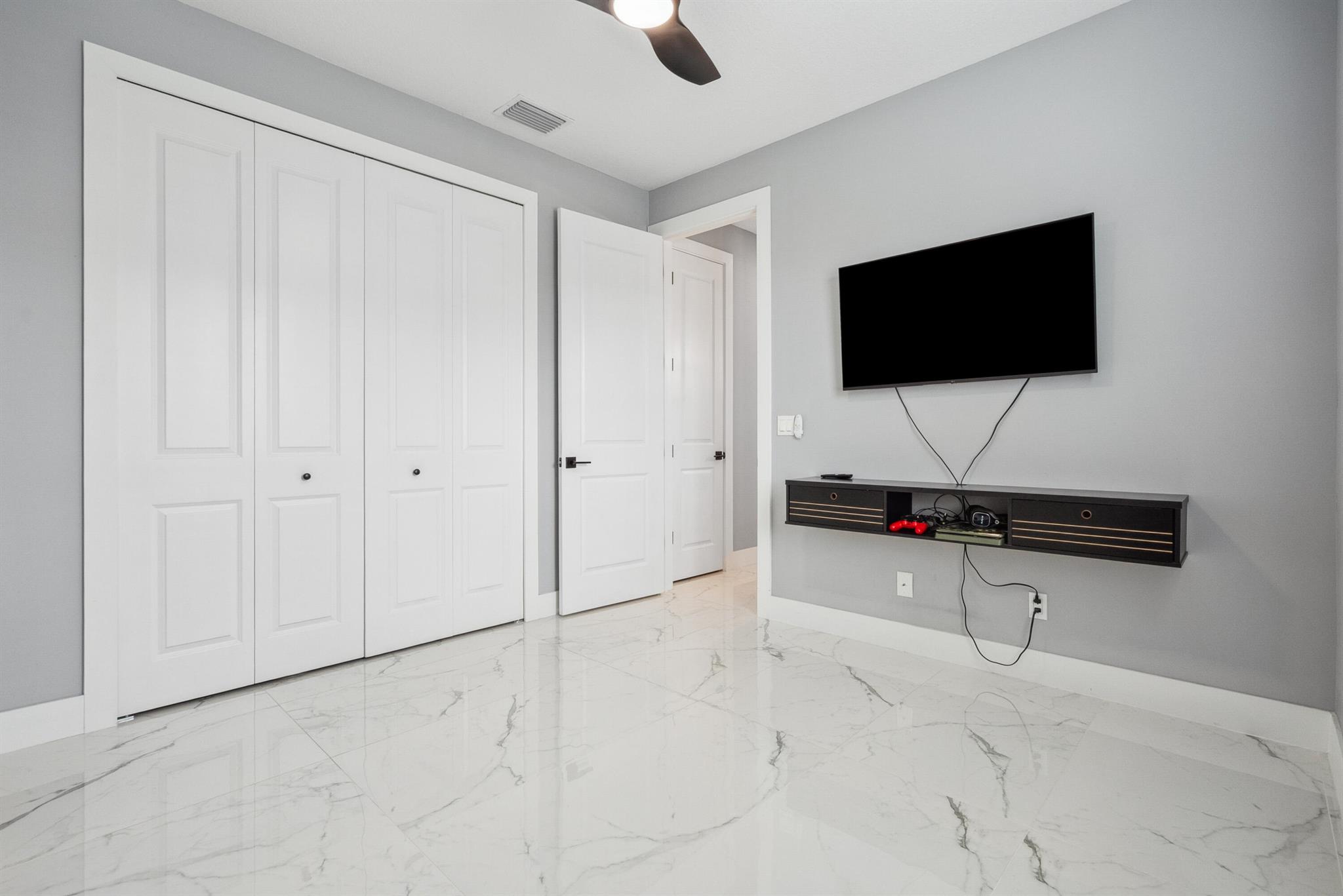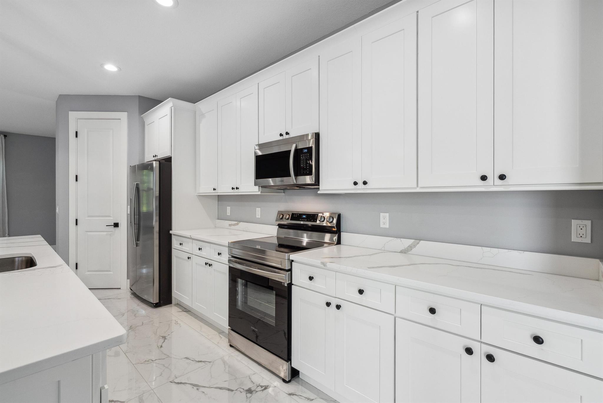 Pool home with a heated infinity spa! Fully fenced in yard for your pups! Only 1.4 miles to Tradition Square without having to pay the HOA or additional taxes to live in Tradition & only 52 minutes to the WPB Airport, making it an easy commute for a potential second home. Walking distance to Starbucks. No HOA, so bring your boat/RV! ALL IMPACT windows & doors built in 2022. Upgraded porcelain tile throughout, zero carpet. Beautiful white shaker kitchen with quartz countertops that overlooks the living room adorned with a coffer ceiling and crown molding. 8ft interior doors. The backyard is perfect to spend all summer! Two featured pergolas, an outdoor shower, extended pool cool decking and covered patio that can be easily screened for indoor/outdoor living.