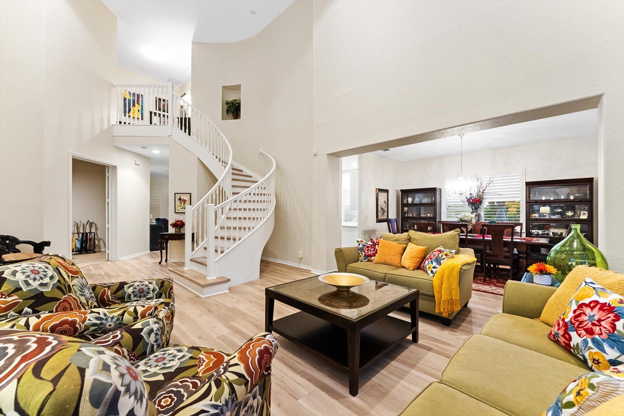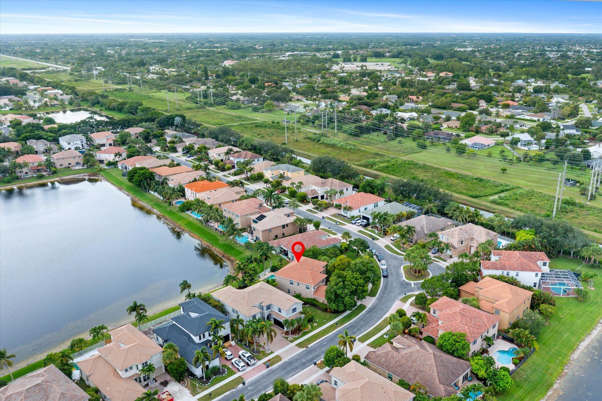 Experience grand lakefront living in the gated Black Diamond community. This stunning home boasts soaring 20+ ft. ceilings, a dramatic curved staircase, and expansive windows showcasing the resort-style pool and sparkling lake. The chef's kitchen features a large island, stainless steel appliances--including brand new dishwasher and refrigerator-- a huge pantry and natural gas stove. With 4 bedrooms, a versatile sitting room in the primary suite, a first-floor guest bedroom, and a spacious loft, the home adapts to any lifestyle. Additional highlights: 3-car garage, gas water heater, plantation shutters, leaf guard gutters, and a prime location near shops, restaurants, the Wellington Mall, and top-rated schools.