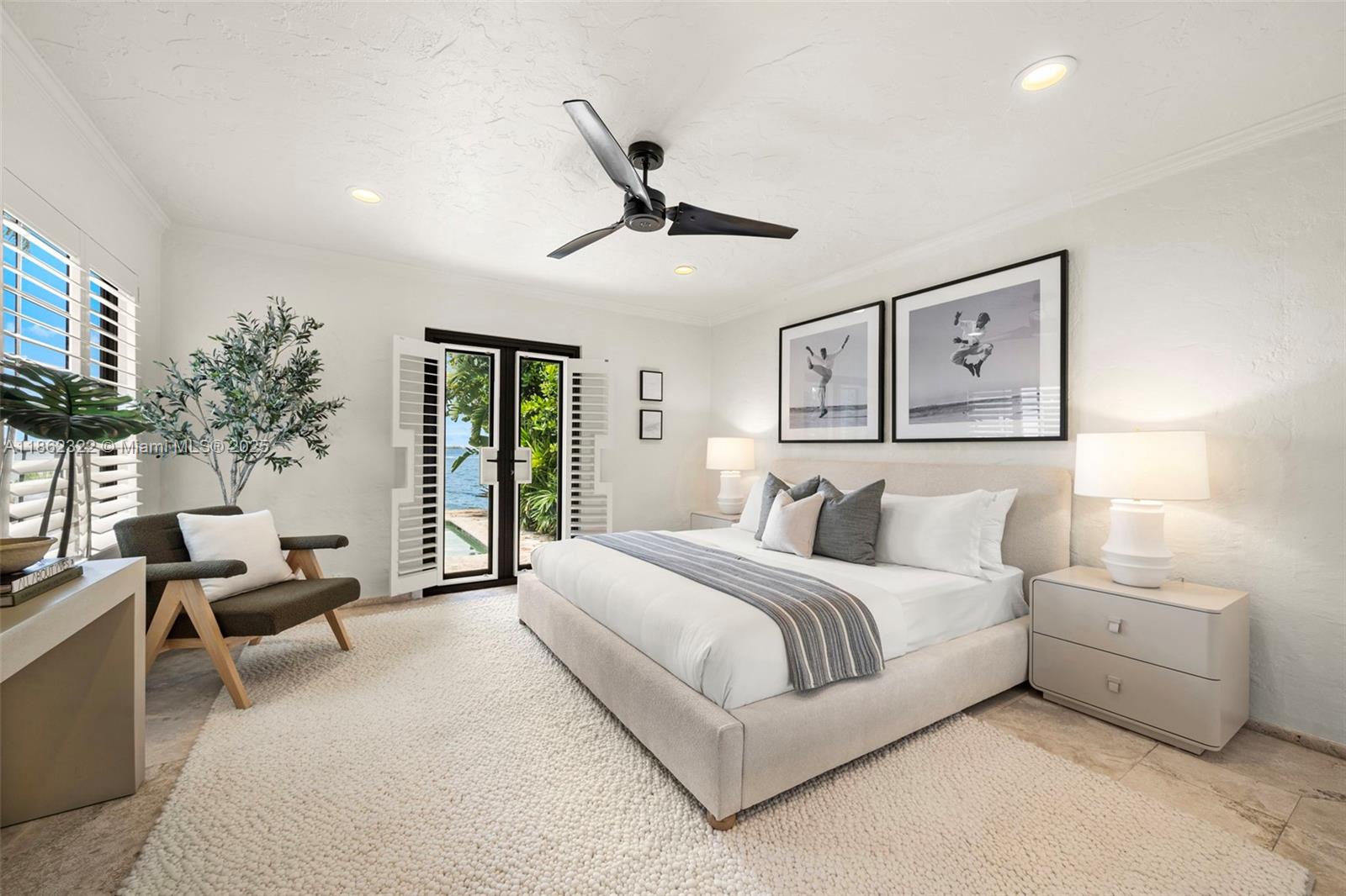 A wide bayfront Pied-à-Terre on the most expensive enclave in Miami Beach, North Bay Road! This enchanting Italian villa is sited on lushly landscaped lot offering 62 feet of waterfrontage with dreamy sunset views over Biscayne Bay and the Miami skyline! Secluded, hand laid pebble-stone courtyard leads inside the home where original details, dramatic arched doorways, and serene views of blue waters capture your attention. The living room is embraced by soaring, cypress wood-beamed ceilings, keystone fireplace, and Saturnia floors. Kitchen is modernized with direct access to the backyard. Backyard is a secluded tropical paradise equipped with a pool, keystone patio area, huge 40x20 feet dock, and double jet-ski lift. Experience luxury living amidst $20M to $100M+ mansions! Lease $42k/month.
