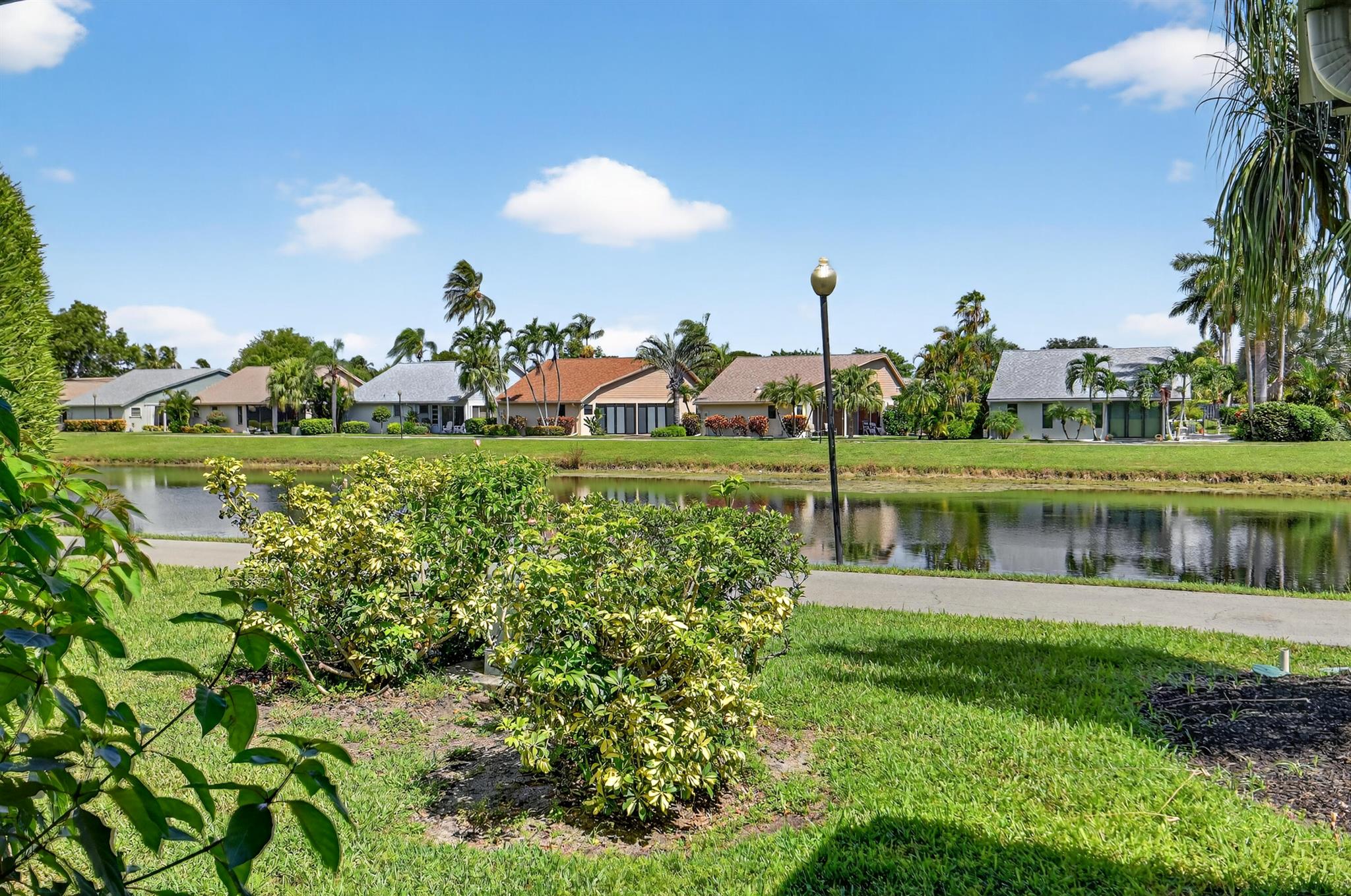BEAUTIFUL, EXPANSIVE LAKE VIEW LOCATION, BRIGHT, COZY, 2 BDRM 2 BATH, PLUS DEN/OFFICE ROOM AND SCREENED LANAI. CBS.PRIMARY BEDROOM, WITH LAKE VIEW, WALK IN CLOSET. UPDATED KITCHEN, EAT IN AREA. LIVING/DINING AREA LEADS TO ADDED OFFICE/DEN/ GUEST ROOM ON THE LAKE. SCREENED FLORIDA ROOM WITH WINDOW AC. SPLIT BEDROOM FLOORPLAN FOR GUEST COMFORT. GARAGE WITH WASHER/DRYER. ATTIC STORAGE. EXTRA LARGE DRIVEWAY FOR GUESTS. ENOY ALL THAT RAINBERRY BAY HAS TO OFFER. CLUBHOUSE WITH GYM, OTHER ACTIVITIES, ACTIVE PICKELBALL, TENNIS, BOCCE, 5 POOLS, SERENE LAKE WITH WALKING PATH, THEATER WITH ACTIVITIES, PET FRIENDLY. HOA INCLUDES WIFI AND ROOF REPLACEMENT.