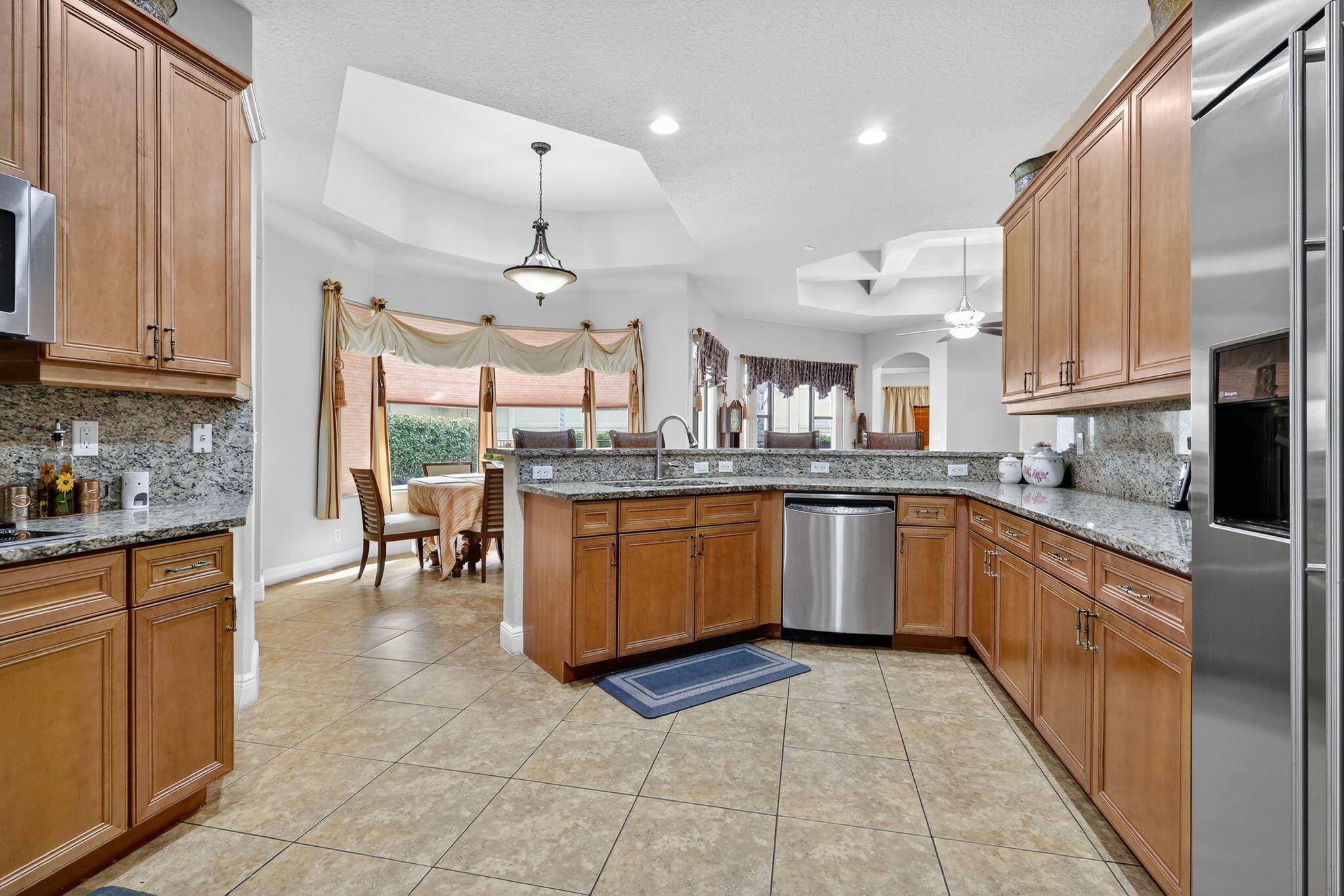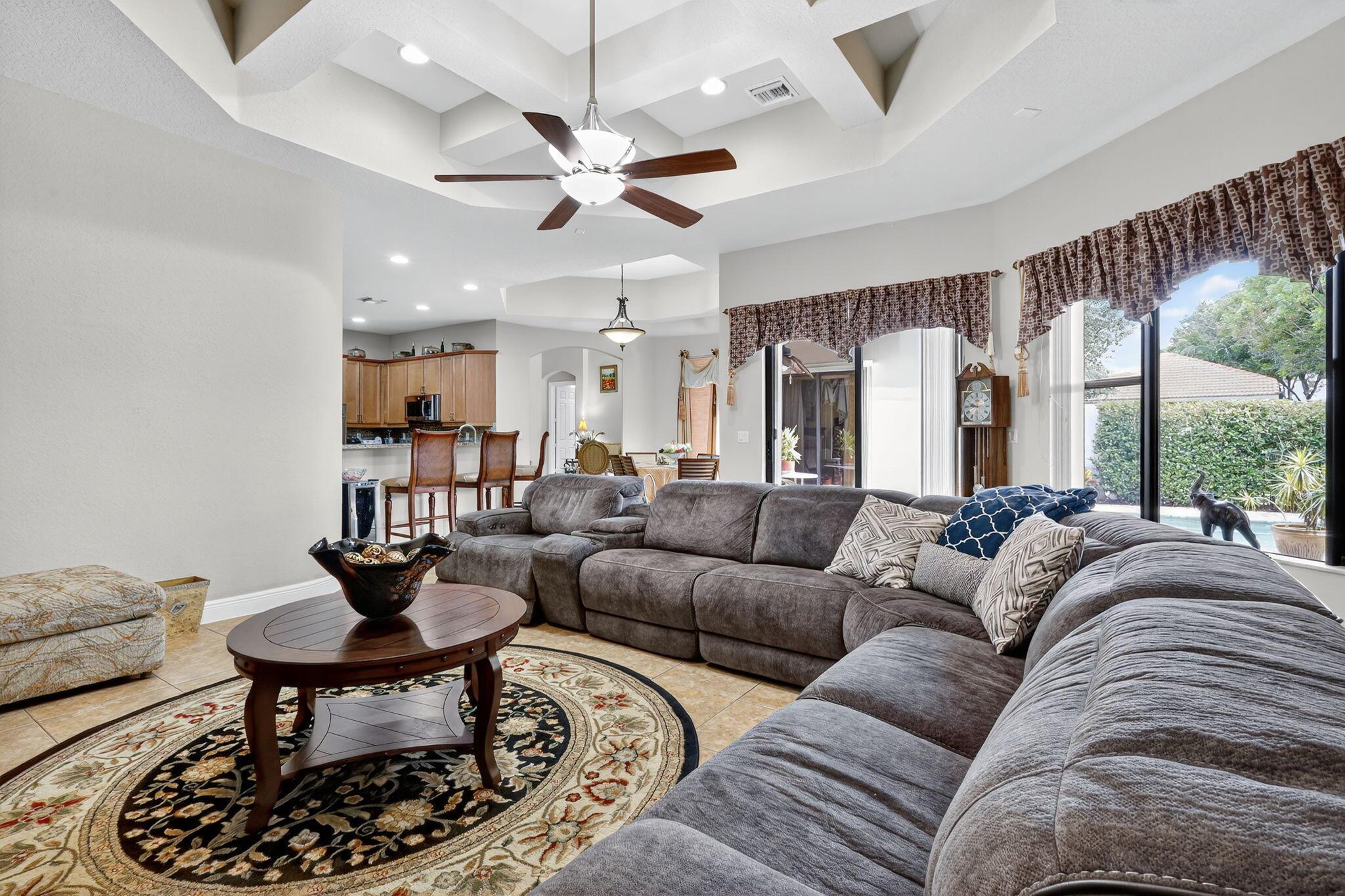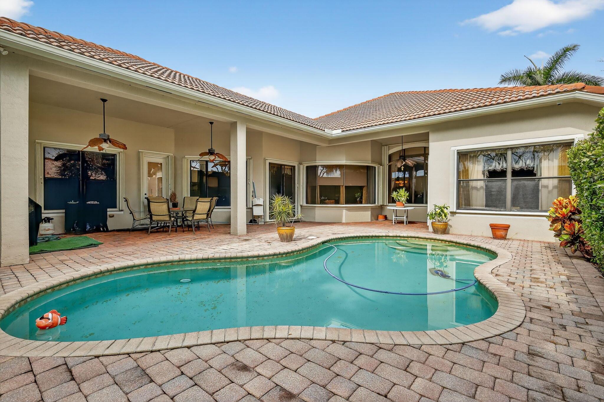 Luxury abounds in this single family pool home, in all-ages, gated Case Bella. A chef's kitchen overlooks the expansive family room. Finished with granite, wood cabinetry, dual wall ovens, a cooktop and a countertop bar. The tall ceilings and abundance of natural light provide a tremendous sense of space.The grand primary bathroom features dual vanities, a separate walk-in shower, a jacuzzi tub and 2 walk-in closets. Retreat to the large back patio with your favorite drink and take a dip in the just resurfaced pool. Many extras include brand new luxury vinyl plank tile (in the process of being laid, see photo) whole-house generator, natural gas available, accordion shutters, high-hat lighting, coffered ceilings, central vacuum and partially upgraded plumbing.