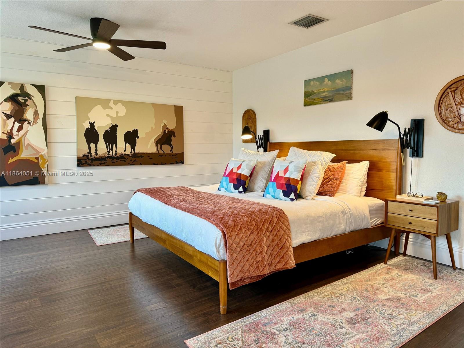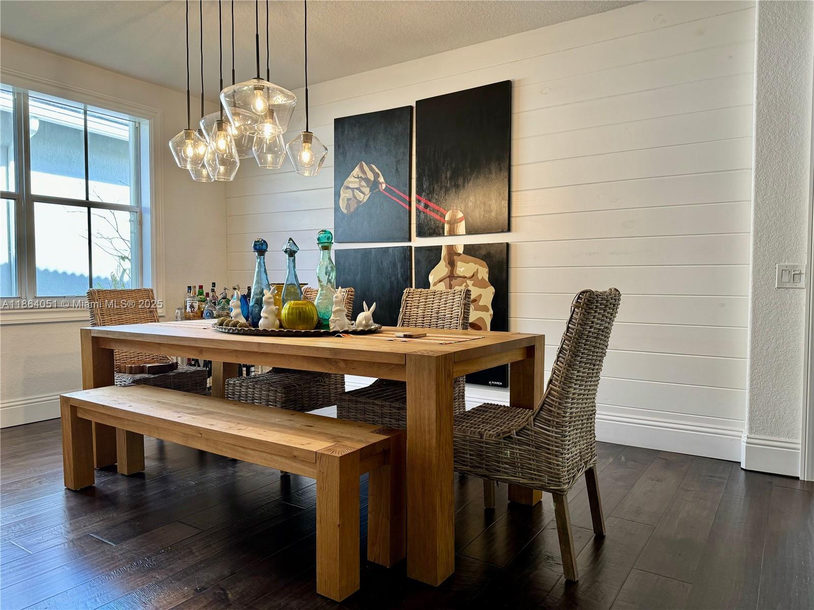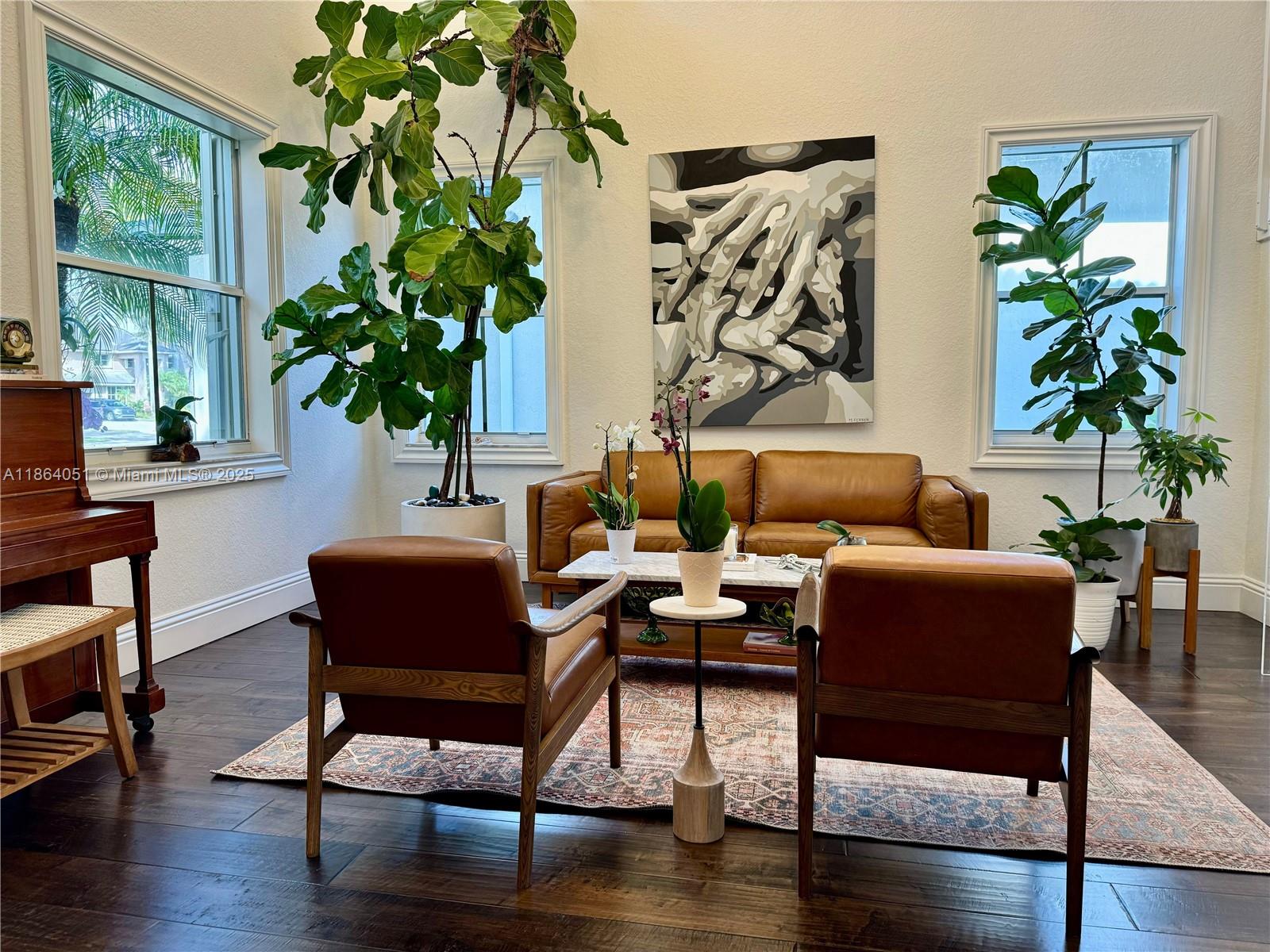 Stunning, Renovated 6-Bed/4-Bath Home with Designer Finishes! This elegant residence showcases rich dark wood engineered flooring throughout and custom trim work on all windows and doors. Enter into a dramatic double-height living room, flowing into a formal dining area perfect for entertaining. The expansive kitchen is a chef’s dream, seamlessly connected to a spacious TV room and second formal dining space. Step outside to a backyard oasis featuring a beautifully extended covered sitting area — ideal for outdoor gatherings. Upstairs, you’ll find four generously sized bedrooms plus a luxurious oversized primary suite with abundant closet space and a dedicated storage room. Additional highlights include brand-new A/C units, premium updates throughout.