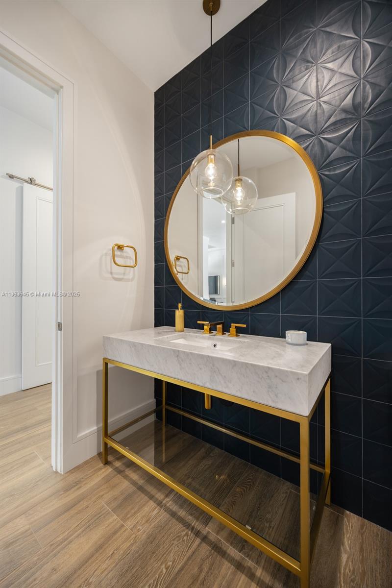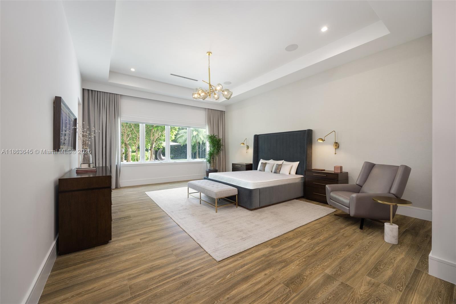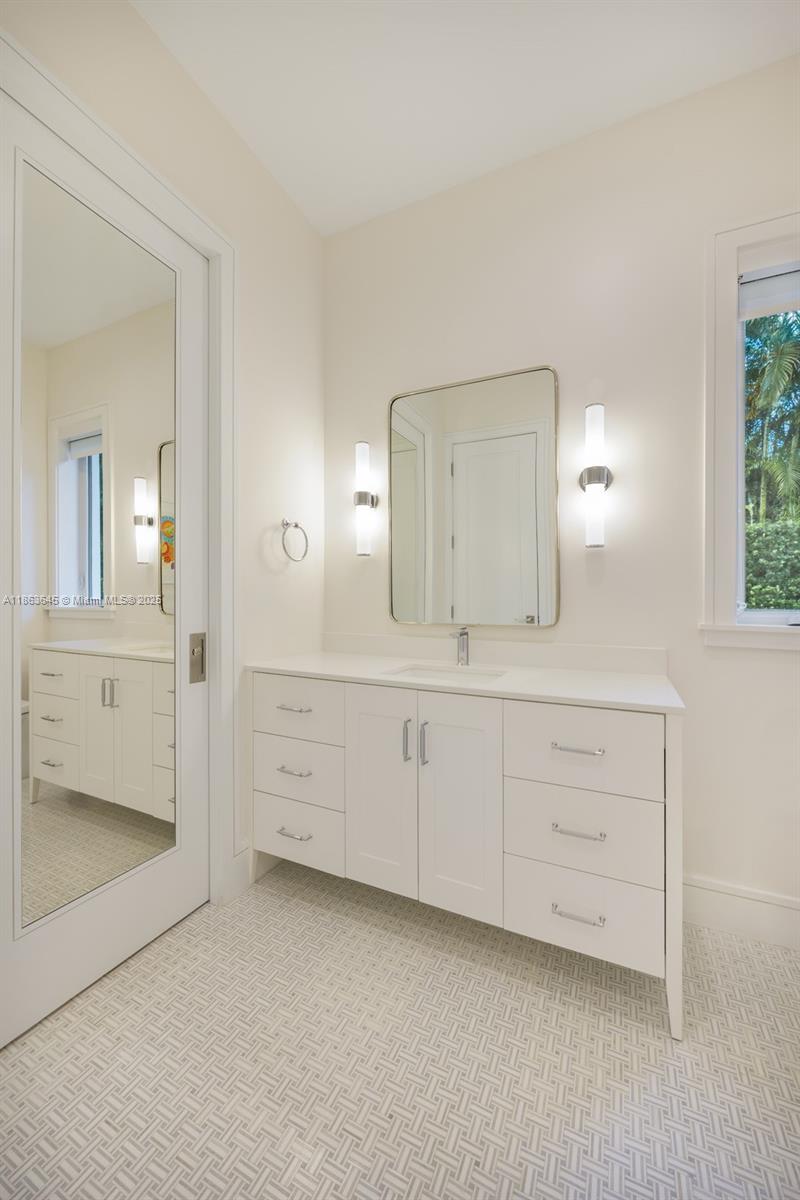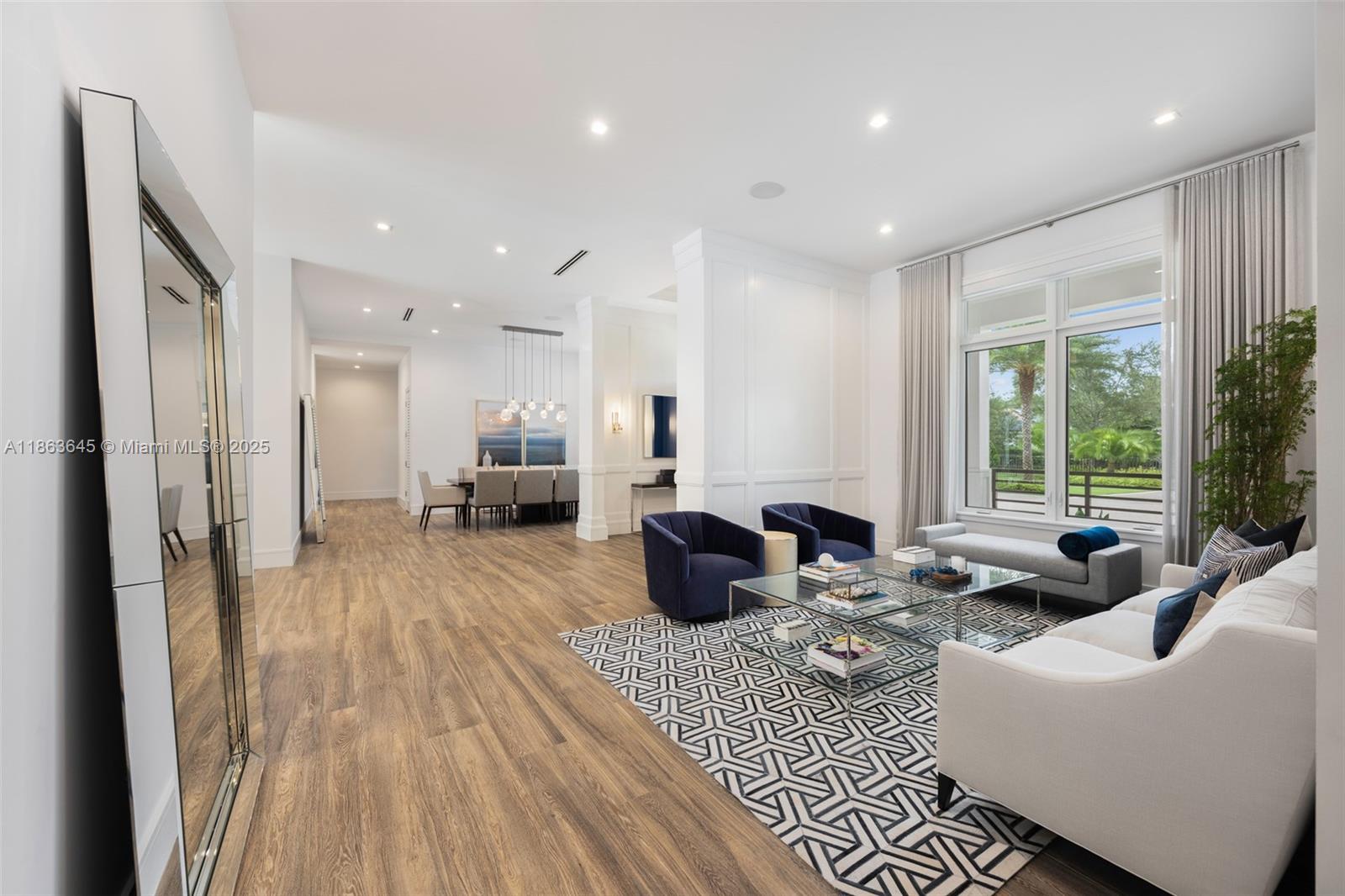 This residence radiates style and quiet luxury. Custom design in collaboration with Hollub Homes, it reflects exceptional craftsmanship, timeless design, and thoughtful livability. On an ultra-quiet street, this home features glass walls with captivating views to a perfectly curated and manicured pool lawn area, sprawling palms, and a Podocarpus hedge that perfectly lines the perimeter. An open kitchen with dual islands anchors everyday life and entertaining. The bedroom wing keeps the family connected, with a dedicated lounge area for time with friends. The smartly designed professional and wellness wing includes a private office, gym with separate entrance, flex workspace, and laundry room. Every detail was intentional—elevated yet welcoming, from first impression to everyday living.