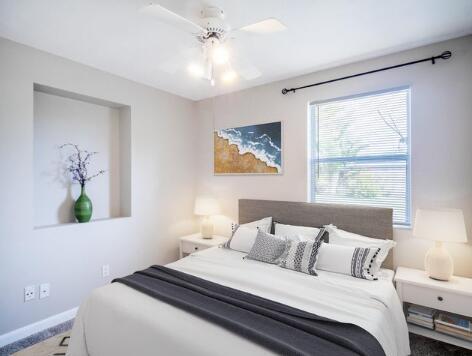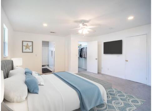 This 4 bed/2bath home offers 1840 sq ft of updated living space, w/ 1,000 sq ft added in 90s. Major systems in great shape w/ 2022 Roof & 2020 AC & Handler, lowering long-term costs. Walk in to the vaulted ceilings, enhancing the open layout, & see freshly painted interiors, new carpet & trim along w/ a fully renovated guest bathroom. Kitchen features upgraded appliances while the new luxury vinyl plank flooring is sleek & durable. Fully fenced backyard, w/ a mango & banana tree & two storage sheds, is perfect for entertaining/relaxing. Located less than a mile from public boat ramp, home is ideal for boating/fishing. Walk to the nearby Town Center, restaurants, shops, outdoor concert venue & more! Highly rated schools are minutes away, adding long-term value. Don't miss this opportunity!