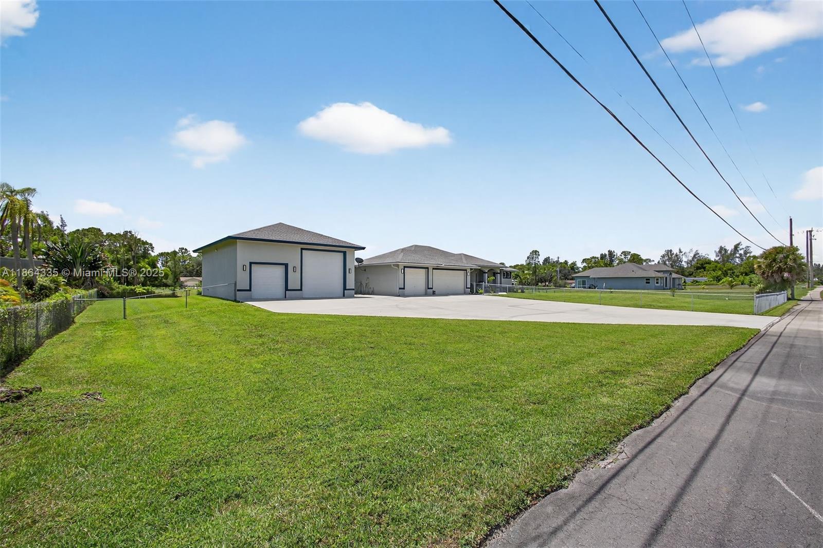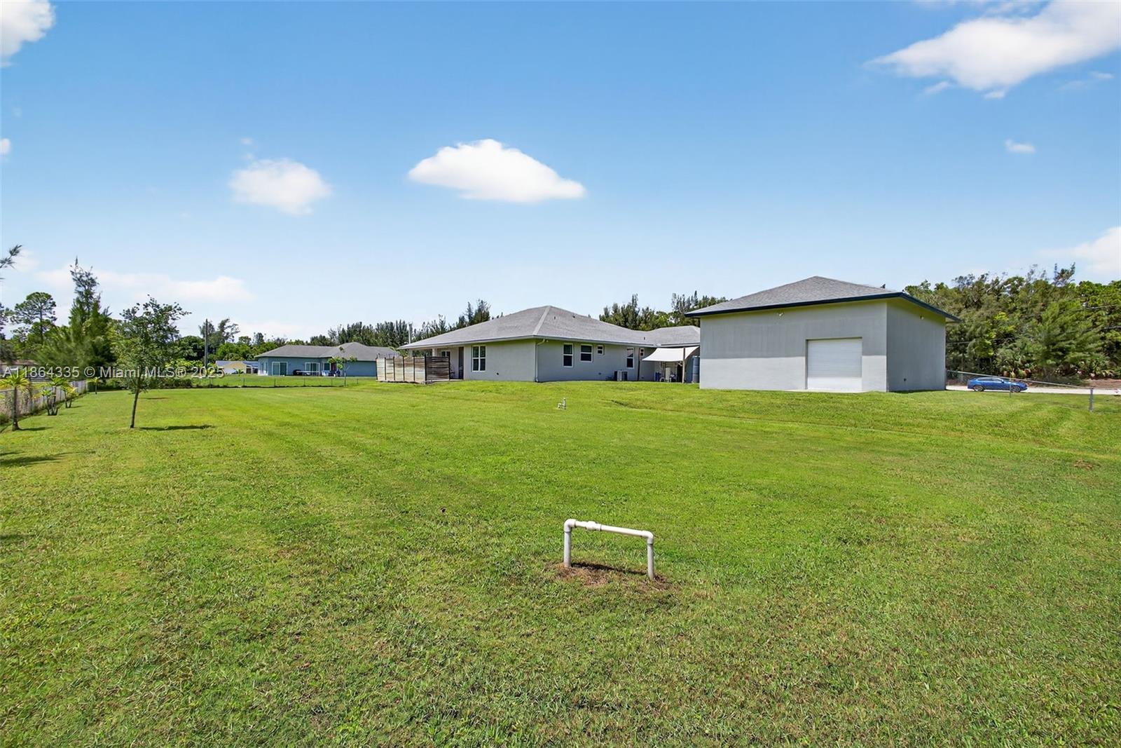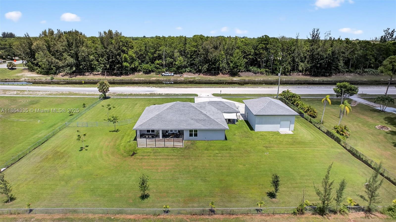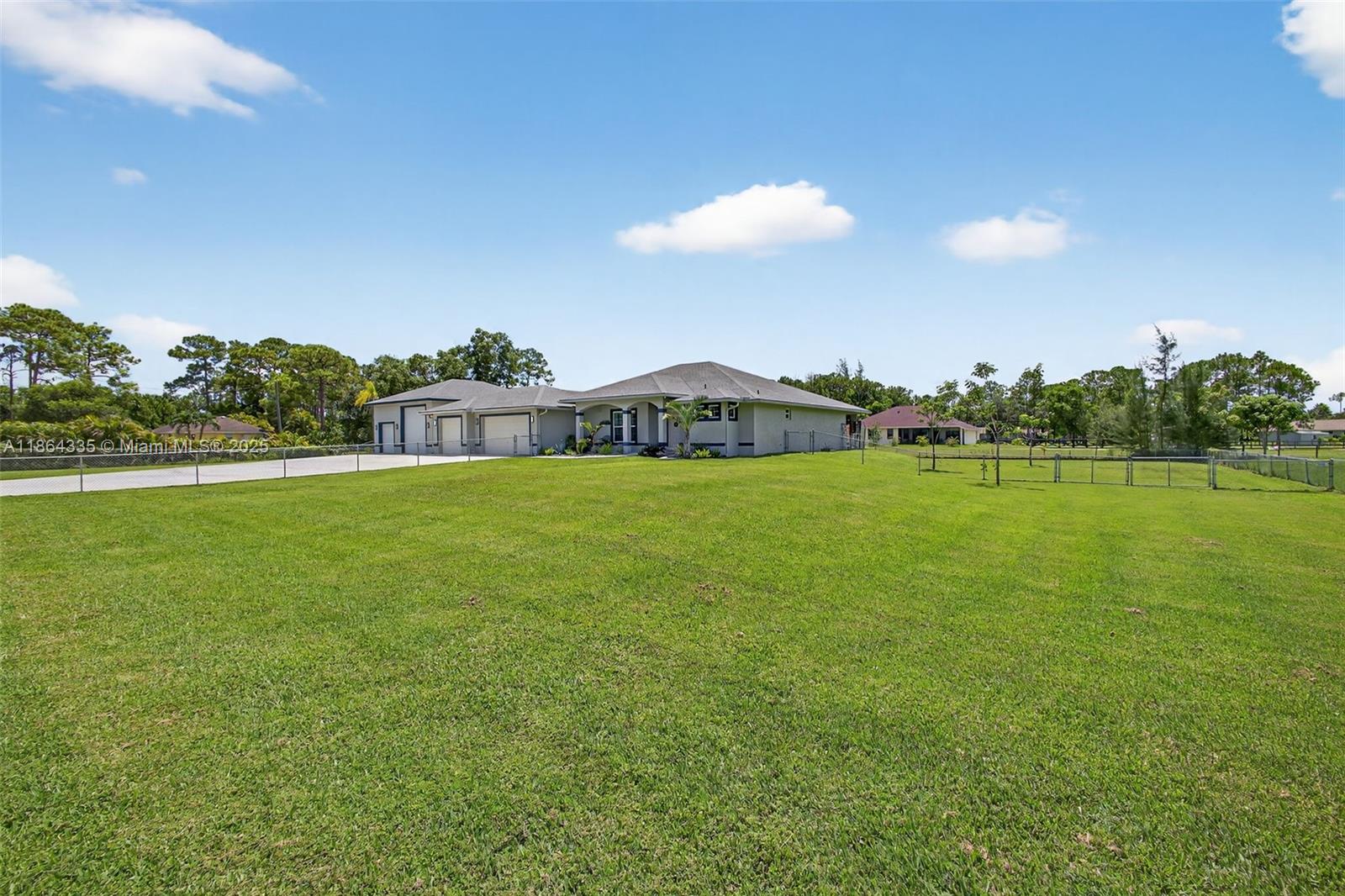 $10,000 CLOSING CREDIT WITH AN ACCEPTED OFFER! Room to roam on this private 1-acre estate in The Acreage. Built in 2018 with CBS construction, this custom home offers 3 bedrooms plus an office, 3 full baths, and a sophisticated open-concept design. The gourmet kitchen boasts GE Profile appliances, walk-in pantry, and sleek finishes. Porcelain tile flows throughout, complemented by custom built-in closets and a whole-house water filtration system. Designed with energy efficiency in mind, this Synergy-built residence combines comfort and style. A remarkable 1,200 sq. ft. drive-thru garage with loft provides endless possibilities for recreational vehicles, storage, or a private retreat—perfect for those who want it all.