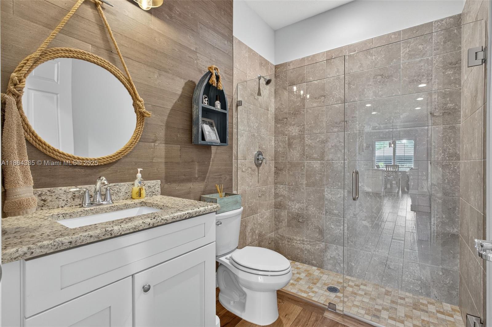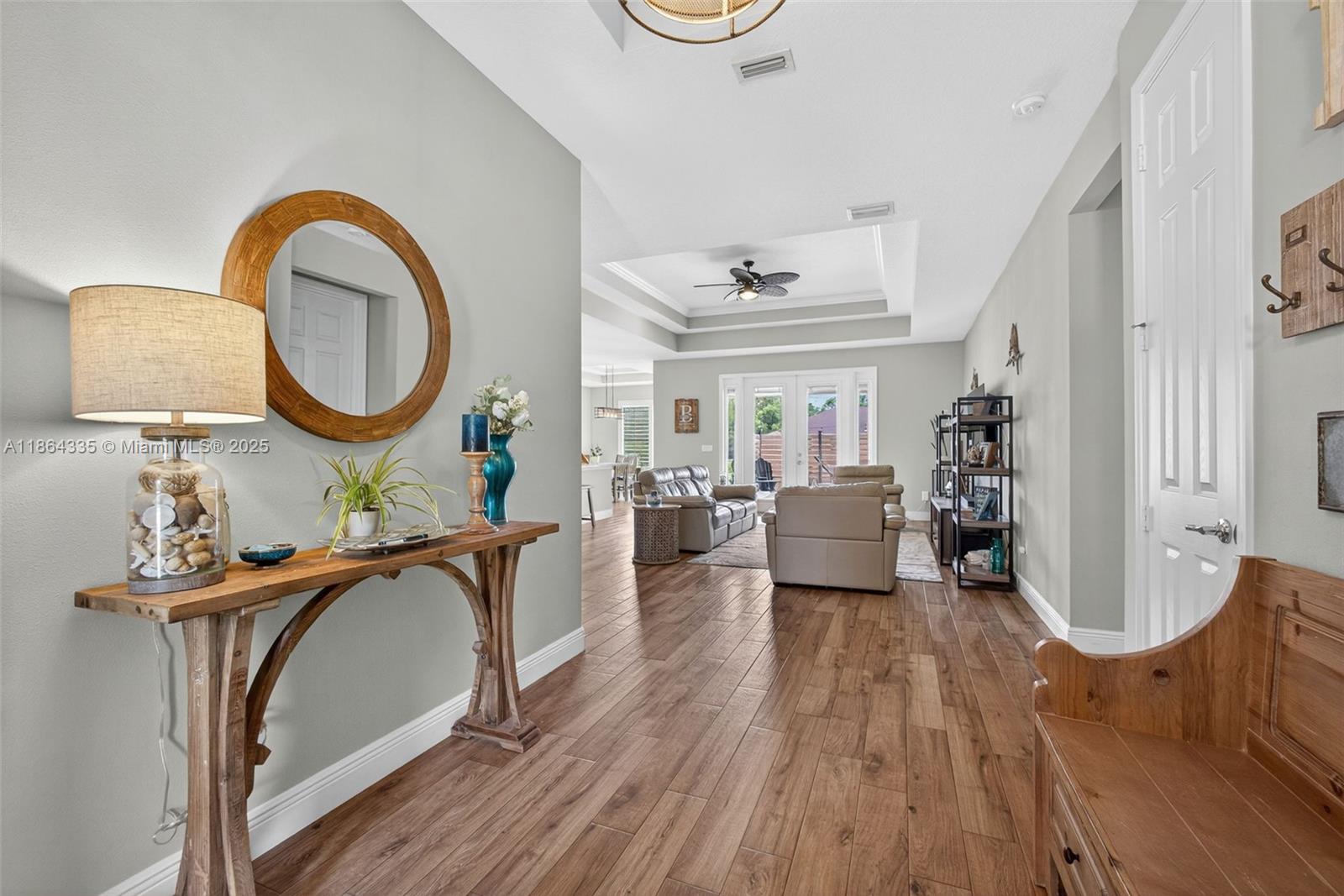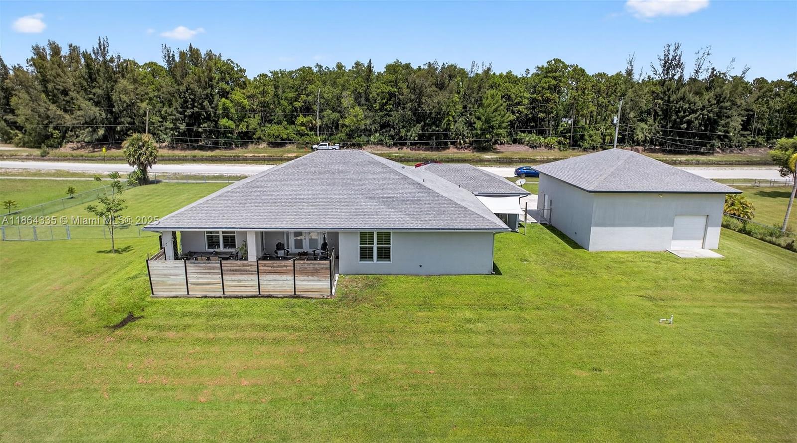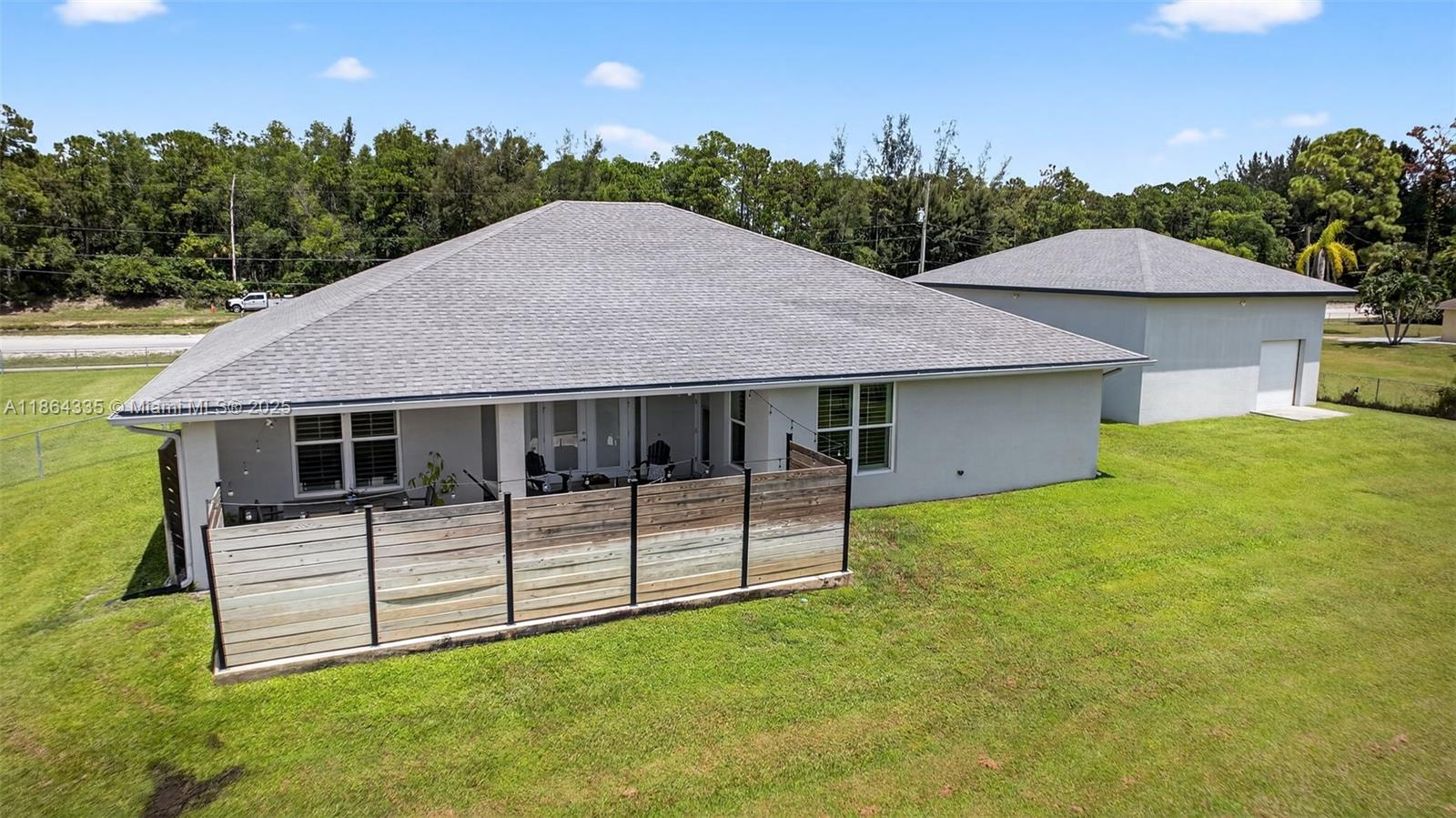 $10,000 CLOSING CREDIT WITH AN ACCEPTED OFFER! Room to roam on this private 1-acre estate in The Acreage. Built in 2018 with CBS construction, this custom home offers 3 bedrooms plus an office, 3 full baths, and a sophisticated open-concept design. The gourmet kitchen boasts GE Profile appliances, walk-in pantry, and sleek finishes. Porcelain tile flows throughout, complemented by custom built-in closets and a whole-house water filtration system. Designed with energy efficiency in mind, this Synergy-built residence combines comfort and style. A remarkable 1,200 sq. ft. drive-thru garage with loft provides endless possibilities for recreational vehicles, storage, or a private retreat—perfect for those who want it all.