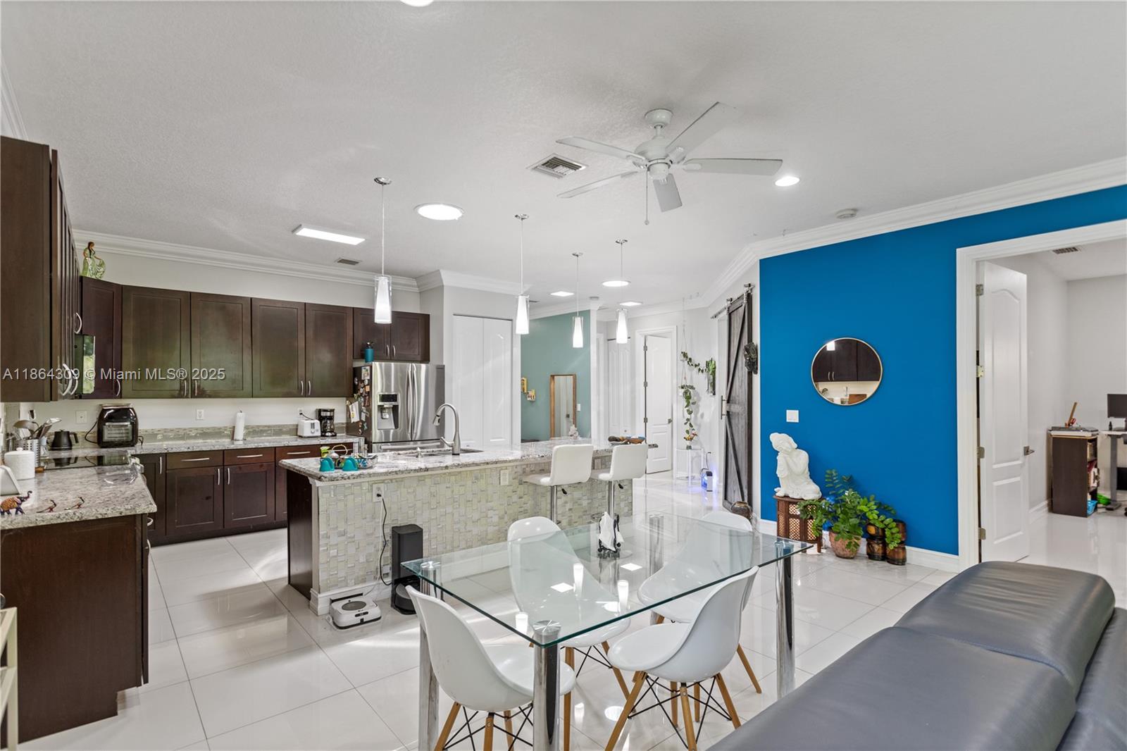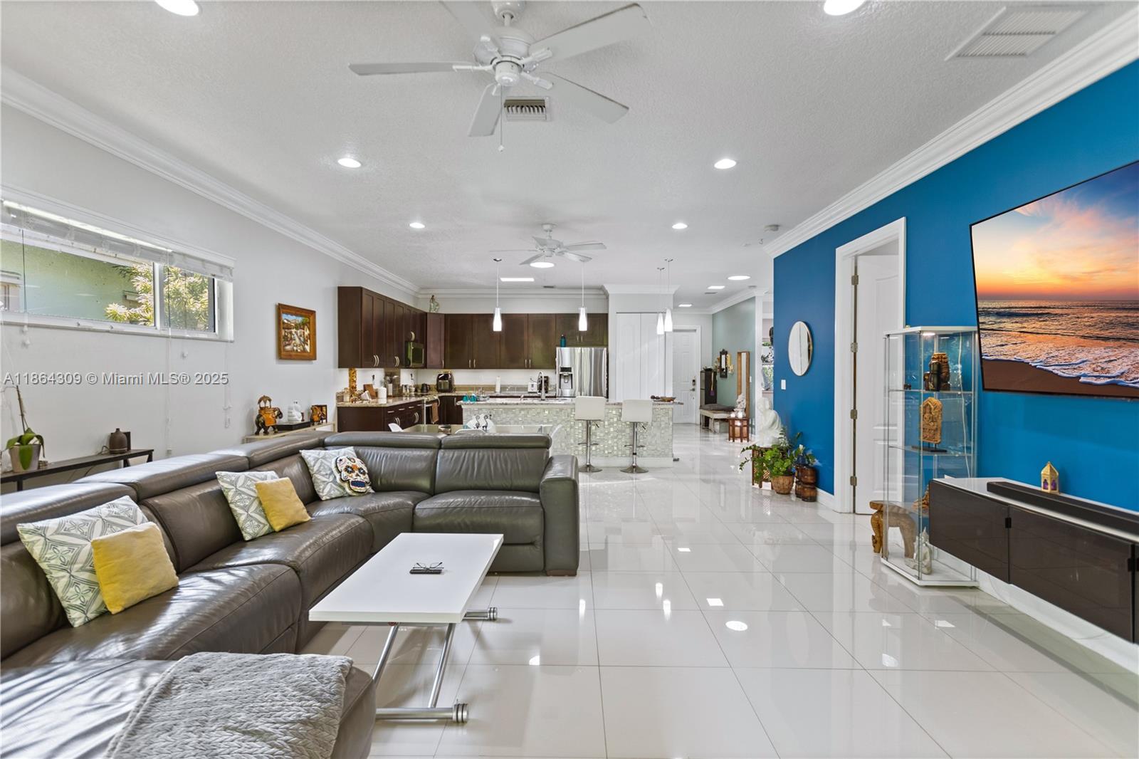 This beautifully maintained single-family home, built in 2014, offers 3 spacious bedrooms and 2 full bathrooms in a bright and open layout designed for modern living. The home features high ceilings, 24x24 porcelain tile throughout, elegant crown moldings, and Solatubes that bring in additional natural light. This modern kitchen is a standout, complete with granite countertops, stainless steel appliances, and a center island. Additionally, this property comes equipped with high-impact windows, doors, and garage doors. A one-car garage with a Wi-Fi-enabled remote door, a two-car driveway, custom cabinetry in the garage for extra storage, and an EV charger for electric vehicle owners! This move-in-ready home combines comfort, convenience, and a prime South Florida lifestyle!