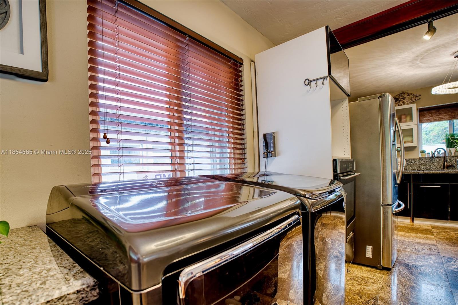 Charming Hollywood Home – Prime Location!?This beautifully updated 2-bedroom, 1-bath home with a den sits on an 8,130 sq. ft. lot featuring a large backyard with PVC fencing and an extra-wide rolling gate for easy access. The front boasts a circular driveway accommodating 4+ cars with double rolling gates Recent Upgrades New roof with warranty New water heater and recently serviced A/C Impact windows and doors throughout Brand-new full-size washer & dryer Updated granite countertops, Bosch induction cooktop on the kitchen island Natural stone flooring in living and kitchen areas Open-concept kitchen layout for modern living Located in the heart of Hollywood, close to shopping, art galleries, restaurants, and events. Just minutes from the famous Hollywood Beach and Broadwalk
