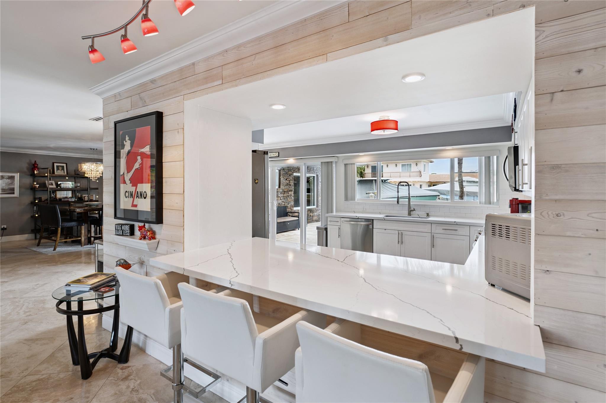 What a great waterfront home. Located on 80 feet of water frontage. This 4 bedroom and 3 bath home has been beautifully updated. Open kitchen with all new appliances. Hurricane impact windows and doors. Over sized 2 car hurricane impact garage door. Plus the garage is air conditioned. If you love to entertain, you will love the back yard with all the landscaped lighting. The pool has been updated with new heater/chiller. Great out side summer kitchen and gazebo. New 10,000 lbs boat lift and new Trex dock and under water lighting. The roof was replaced in 2017. Very quiet street and close to shopping, restaurants and the ocean. This is a must see.
