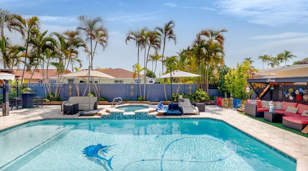 Fall in love with this spacious 5BR/3.5BA pool home in Marivi Gardens! From the grand entry with soaring ceilings to the bright living room with floor-to-ceiling windows, this home is made for both comfort and style. Cook and entertain in the chef’s kitchen with granite counters and island seating, then relax in the family room or enjoy the upstairs loft. Retreat to the large primary suite with balcony views, walk-in closets, and sitting area. Step outside to your own paradise with pool, spa, summer kitchen, tiki bar, and covered patios—perfect for family gatherings and weekends with friends.