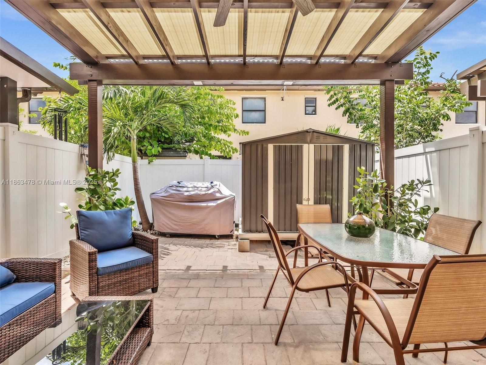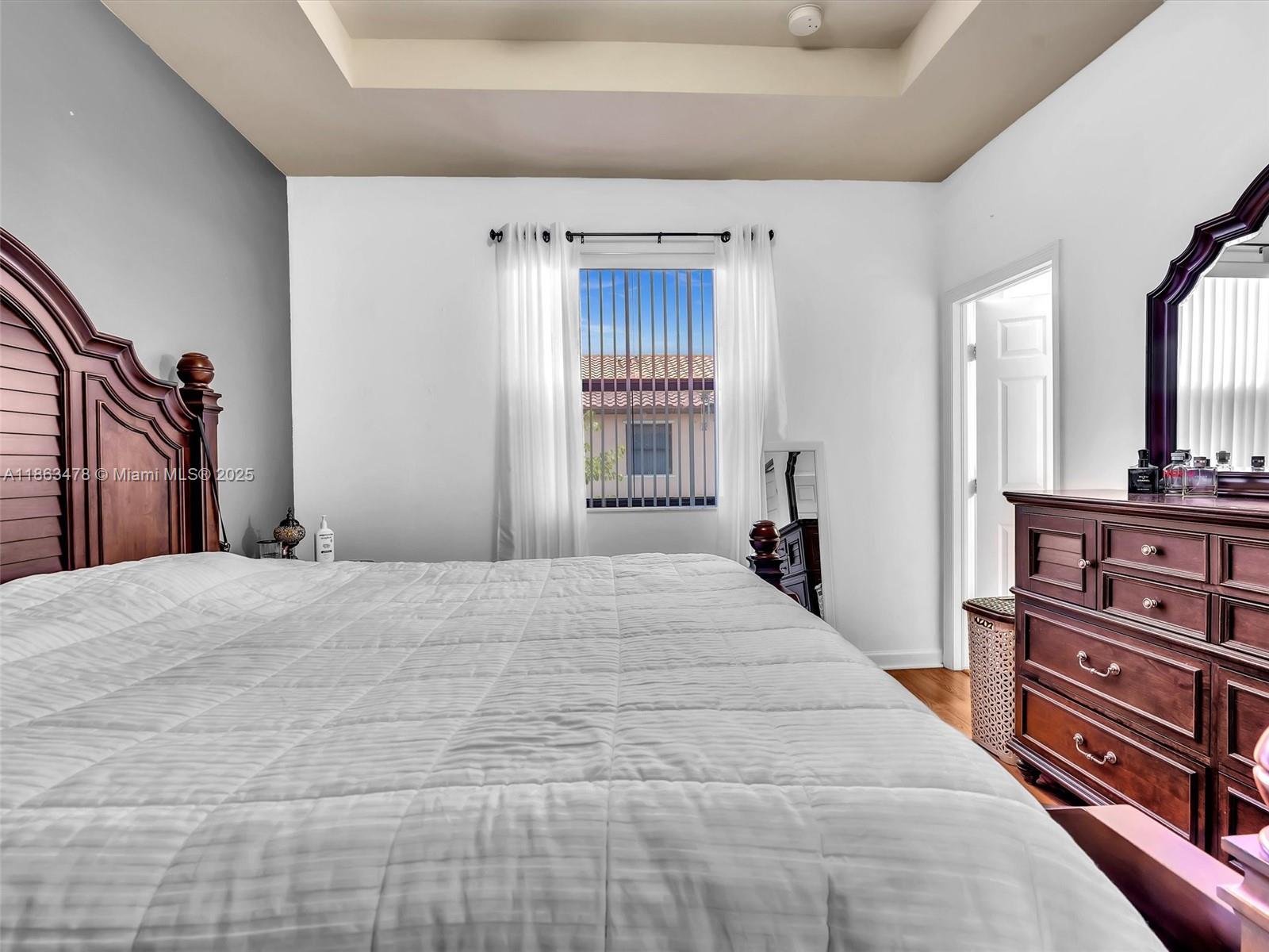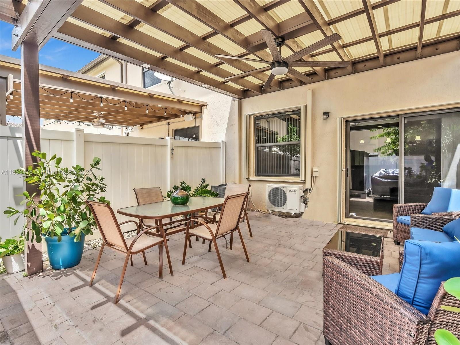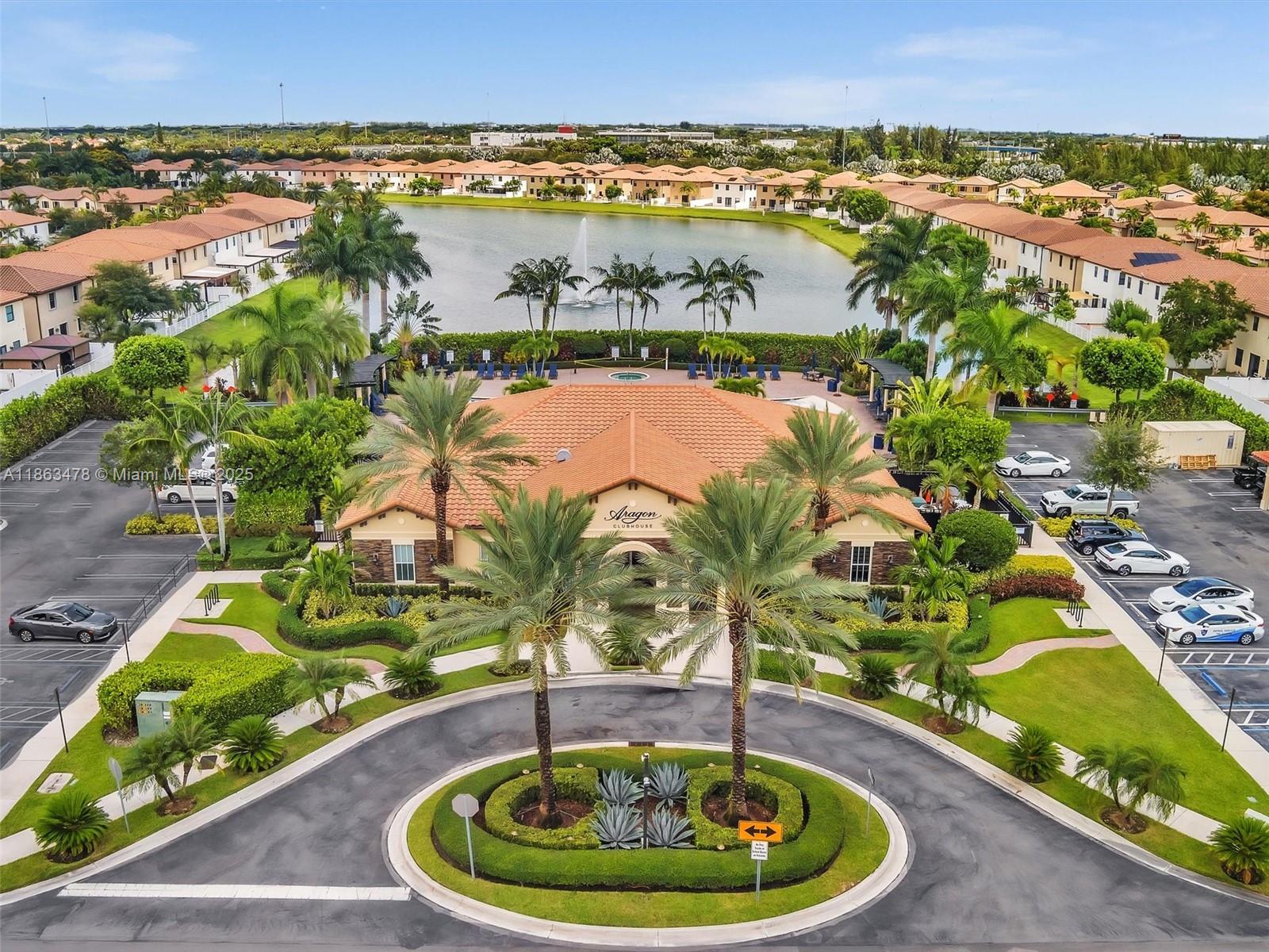 This spacious 2-story villa features 3 bedrooms and 2.5 bathrooms with a modern open layout. Tile flooring on the first floor and laminate wood upstairs add a stylish touch throughout. The open kitchen with stainless steel appliances flows seamlessly to a private paved, fenced patio—perfect for family gatherings. Located in the gated community of Aragon, residents enjoy resort-style amenities including a clubhouse, pool, fitness center, playground, 24-hour security, and more. The property offers two assigned parking spaces in front, plus ample guest parking. Conveniently situated near major highways, supermarkets, schools, and restaurants.