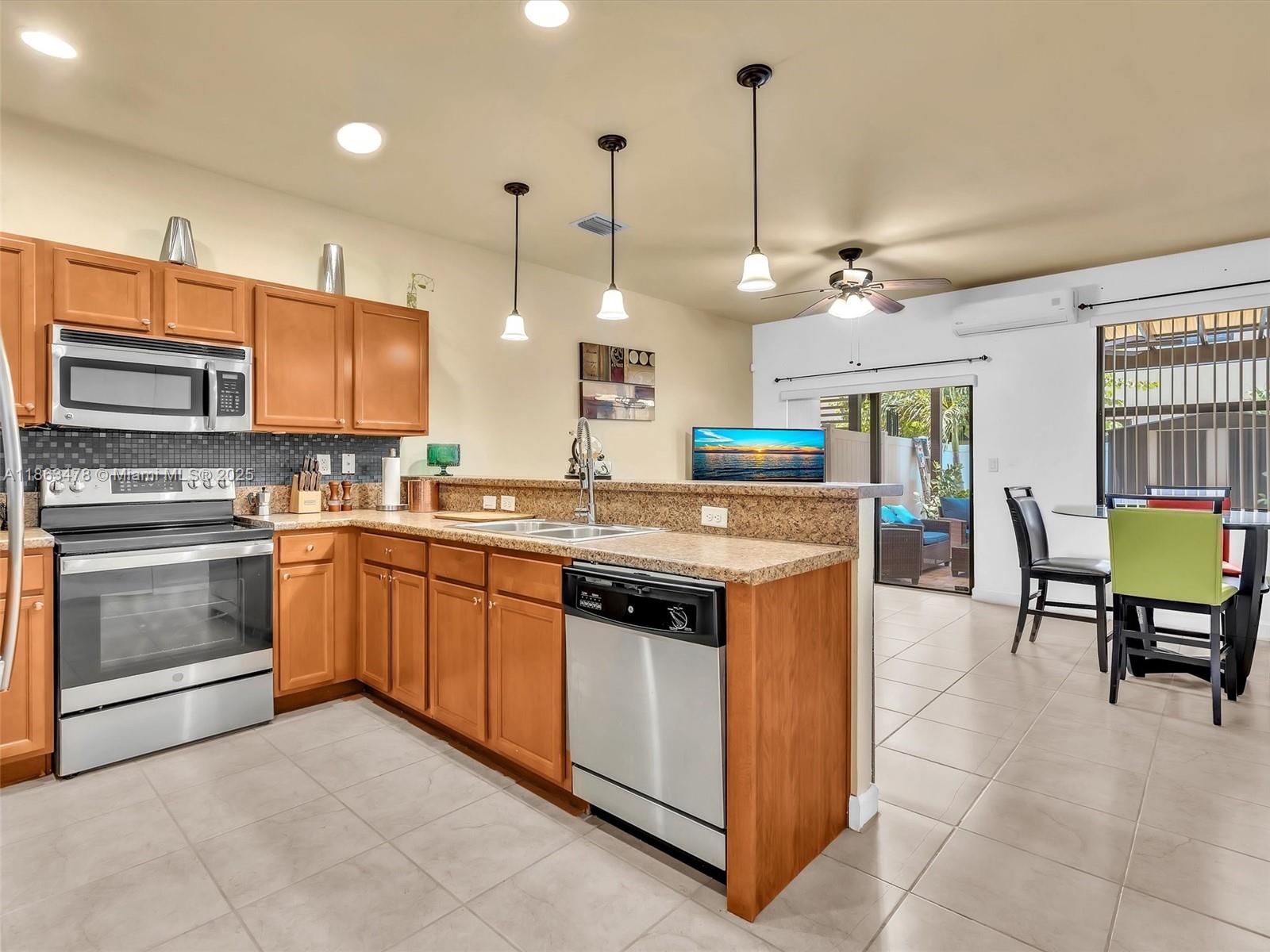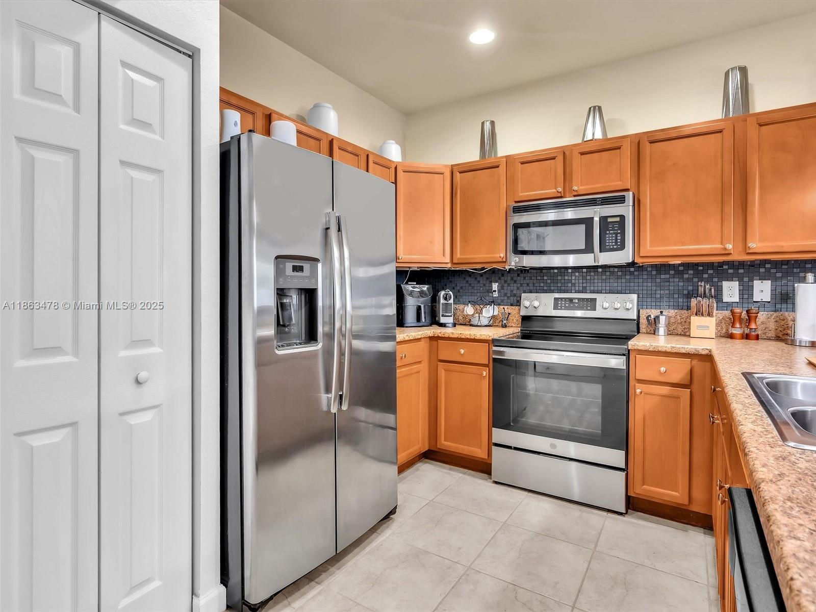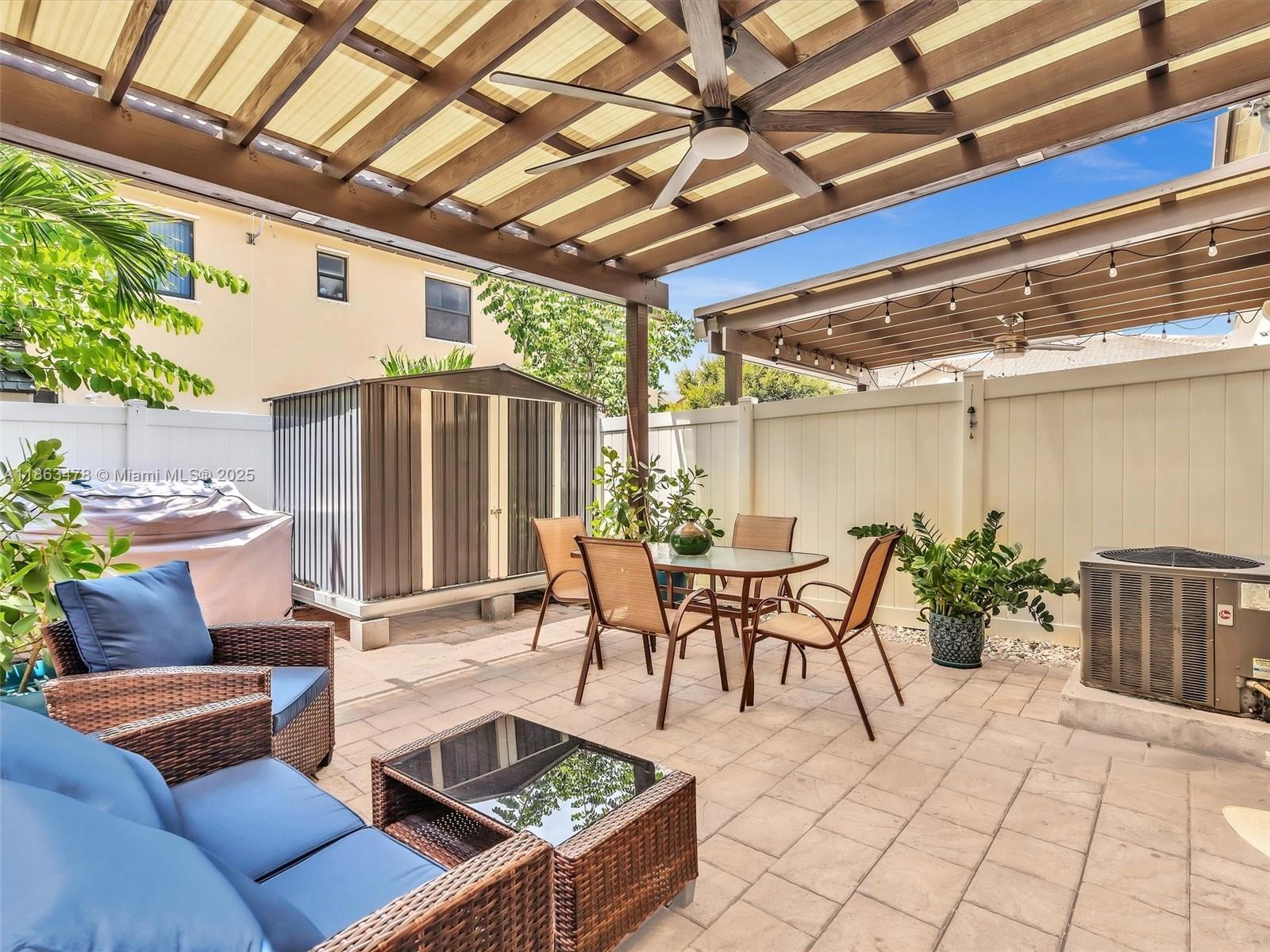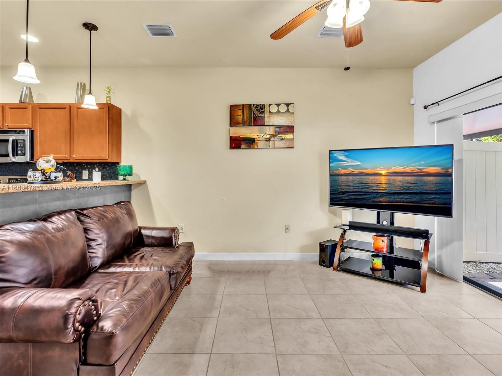 This spacious 2-story villa features 3 bedrooms and 2.5 bathrooms with a modern open layout. Tile flooring on the first floor and laminate wood upstairs add a stylish touch throughout. The open kitchen with stainless steel appliances flows seamlessly to a private paved, fenced patio—perfect for family gatherings. Located in the gated community of Aragon, residents enjoy resort-style amenities including a clubhouse, pool, fitness center, playground, 24-hour security, and more. The property offers two assigned parking spaces in front, plus ample guest parking. Conveniently situated near major highways, supermarkets, schools, and restaurants.
