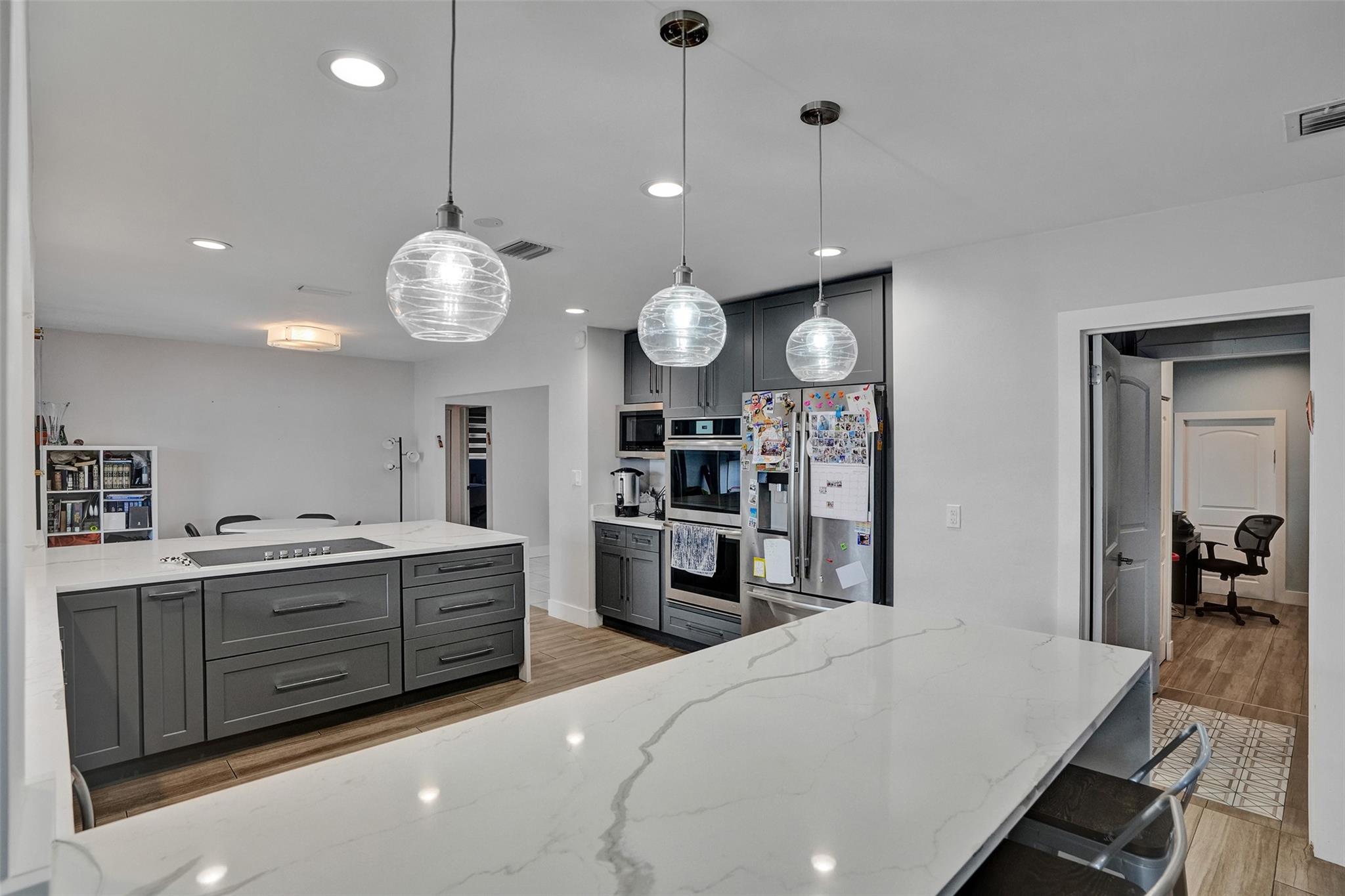 4 Bedroom, 3 Bathroom Home with Pool in Prime Location in Emerald Hills. This beautifully maintained residence features numerous updates throughout. The kitchen, recently renovated, includes modern cabinetry, countertops, and appliances. All bathrooms have been tastefully updated, and the home is equipped with upgraded electrical panels and energy-efficient LED lighting. Additional highlights include a new AC unit on the garage side of the home. The exterior has been enhanced with a refinished pool, new deck, turf landscaping, and a PVC privacy fence, providing a low-maintenance and enjoyable outdoor living space. Situated in an exceptional location, this property offers convenient access to parks, houses of Worship, shopping, dining, and community amenities.