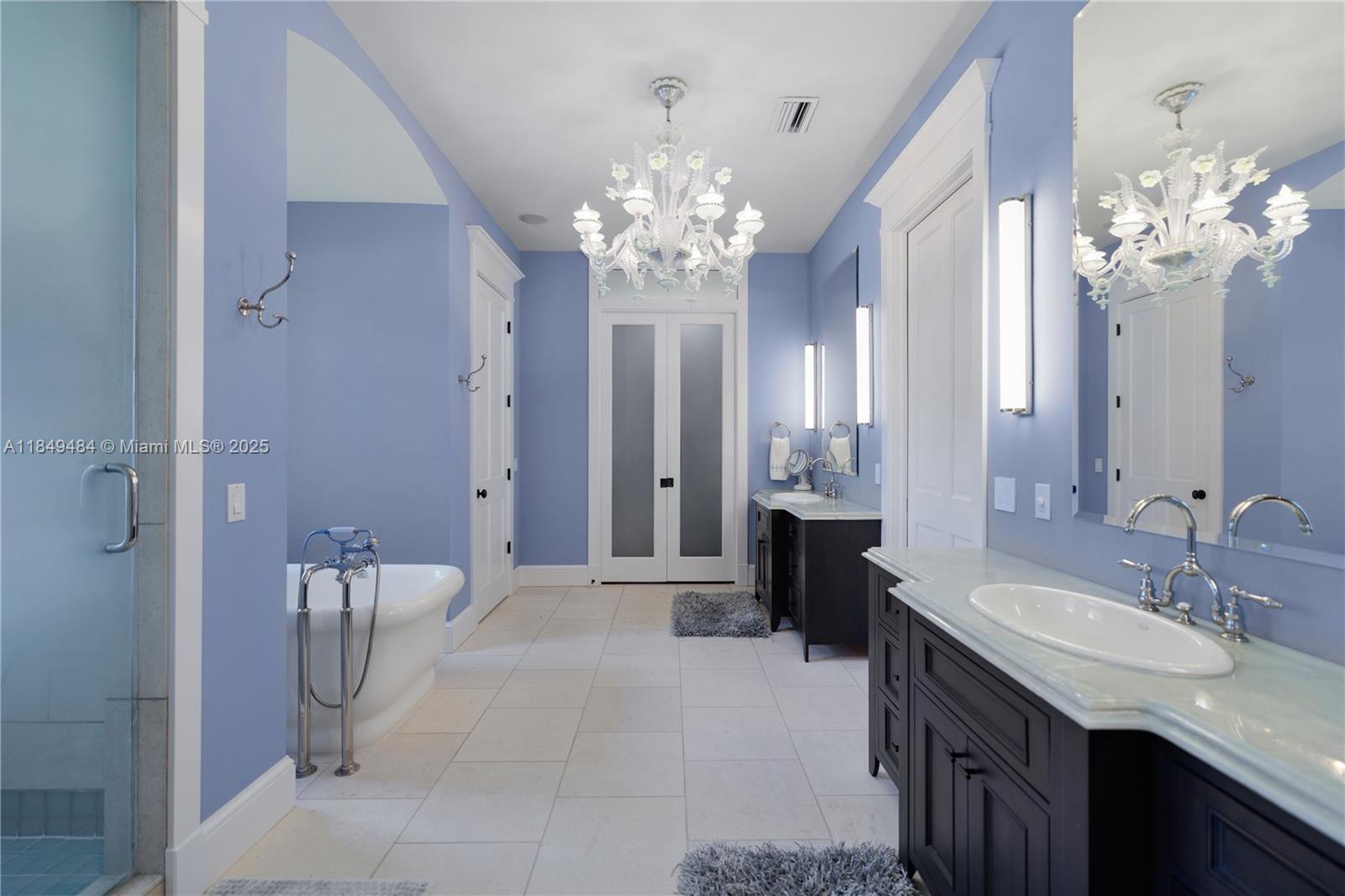 Located on prestigious Sunset Island III, this exquisite 6-bed, 5.5-bath Spanish-style home blends timeless elegance with modern comfort. Soaring 12' ceilings, French limestone floors, and a coral stone courtyard set the tone for refined indoor-outdoor living. The chef’s kitchen boasts a Calacatta marble island, Wolf appliances, gas stove, and dining area flowing into a family room with sweeping Biscayne Bay and Miami skyline views. Upstairs features 10' ceilings, Brazilian cherry floors, and a primary suite with dual walk-ins and a private bayfront terrace. A detached guest house offers privacy and flexibility. Your backyard escape awaits with a heated saltwater pool, outdoor shower, and private dock 13,125 SF lot with direct bay access.
