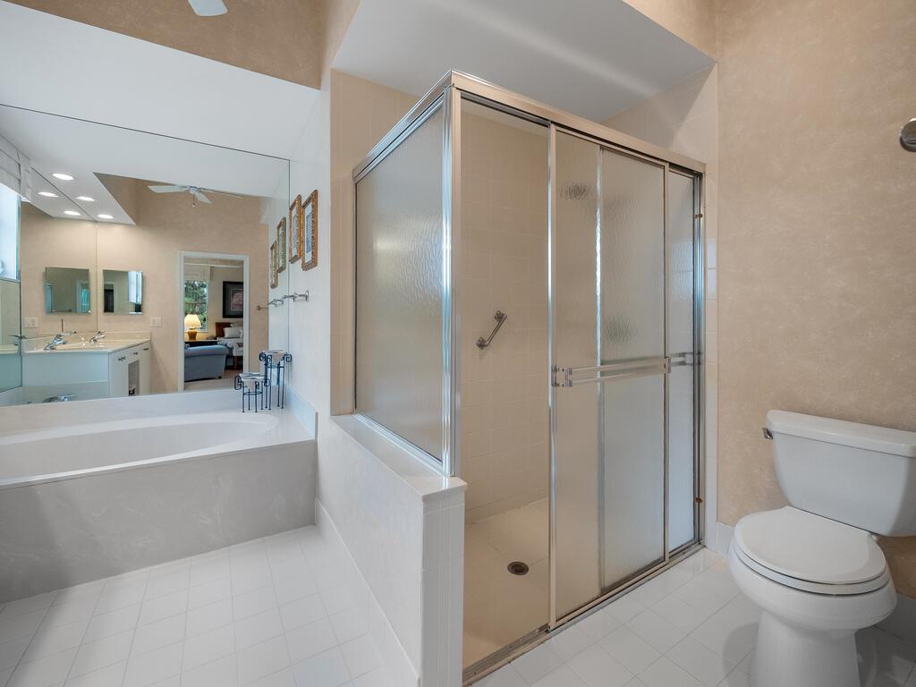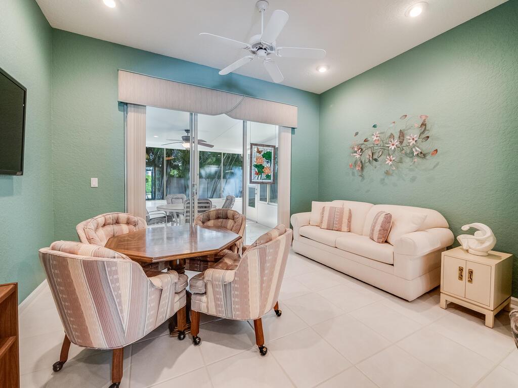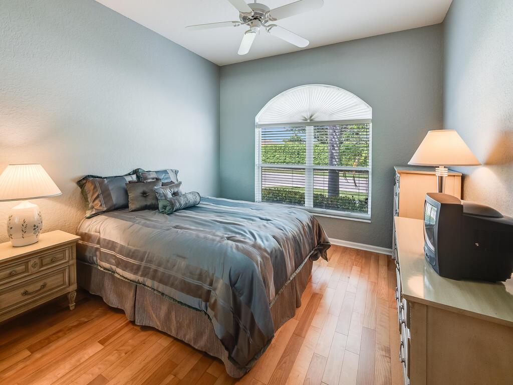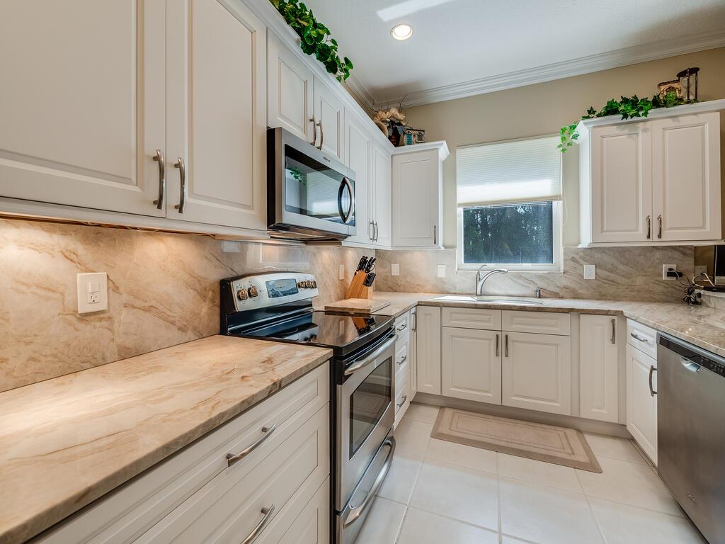 Beautiful, updated, meticulously maintained 3 Bedroom, 2 Bath home w/1,920sf under air. Bright, clean & move-in ready. Quality updates -Roof (2020); Updated Kit w/white cabinetry, sleek Quartz countertops & stainless steel appliances. HVAC (2017). Owner's suite features tray ceiling & 2 large closets (1 walk-in). Ensuite Bath features soaking tub, separate shower & dual sink vanity. Elegantly arched passages. Custom window treatments. Tile & engineered maple hardwood floors throughout. Separate laundry rm w/ample storage. Large covered, enclosed Porch w/ceiling fans & AC unit overlooks priv backyard. Don't miss this opportunity to own a home that showcases immaculate care & attention to every detail, inside & out! Lovely 55+ gated community w/Clubhouse, Tennis/Pickleball, Pool & more!