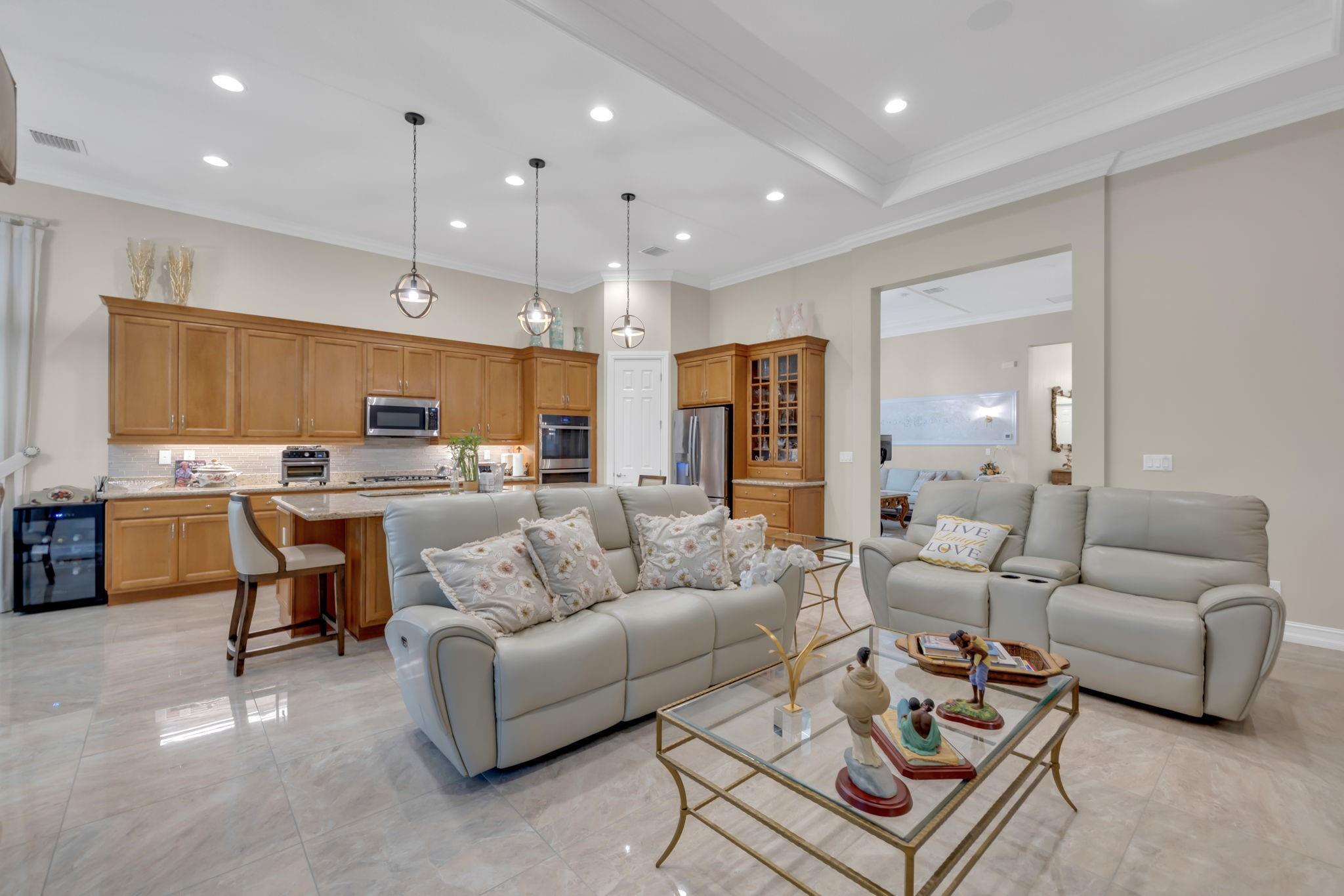 Four Seasons 55+ gated community! Stunning 3BR/2.5BA home with 2-car garage & Tesla charger. Open floor plan with volume ceilings, impact windows/doors, porcelain floors, crown molding & tray ceilings. Chef’s kitchen with granite, large island, custom cabinetry, GE Wi-Fi appliances & natural gas cooking. Primary suite offers custom closets & spa-style bath with multi-head shower. Cascading sliders lead to a screened patio with outdoor kitchen. Home features plantation shutters, tankless water heater, water softener/purifier & full-home Generac gas generator. Resort-style amenities include clubhouse, fitness center, café, game rooms, tennis, pickleball & 2 pools.