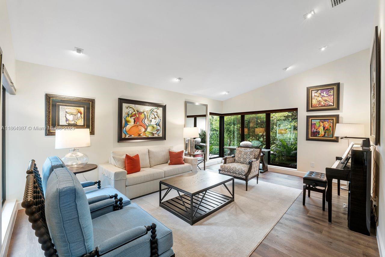Privacy is the ultimate luxury. Enter Arabesque, a walled community of only 18 homes in Pinecrest, developed in 1990 by one of south Florida’s renowned builders. This 3,254 SF, 4 bed/3 bath corner home was elegantly updated in 2019 to the most discerning standards. Plenty of natural light flows through impact windows and doors. The split floor plan offers a tranquil primary suite with his/hers closets, access to outdoor living area, and views of the pool and garden on one side, and three large bedrooms and two baths on the other. The main living area, with updated kitchen, breakfast space, and family room, open to a large covered patio and pool. Formal living and dining rooms flank the front entrance. The true two-car garage has plenty of built-in storage and epoxy floor. Perfect location.