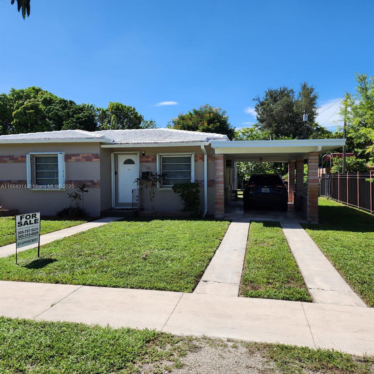 MUST SEE FRESHLY PAINTED INSIDE/OUT NORTH MIAMI GEM! Beautiful remodeled North Miami Home, renovated 2beds/1bath, tile floors and ample closets. Bathroom is newly updated. Florida Room and Awning windows overlook the large chain linked fenced backyard that has many possibilities. Kitchen immaculate with updated appliances to include Range, Refrigerator, Dishwasher, Disposal, Microwave(Excellent condition)and under the counter lights. Additional features: Washer and Dryer, Storage area, Attic, Fredrich 21,000 BTU A/C wall unit in living room, 3 Ceiling fans one in each room with lights and hurricane accordion shutters. Plumbing updated in 2016. Carport to protect your car from the sun and rain. Termite inspection and tenting was done 8-11-25. This turnkey home is ready to move-in and enjoy!