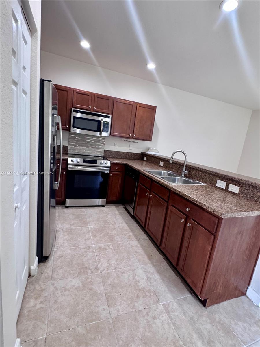 Welcome to this beautifully townhouse featuring eco-friendly solar panels and a TESLA Powerwall Battery, which helps to keep your home powered during outages and also reduces your monthly electricity costs. Enjoy a charming paver patio, perfect for relaxing or entertaining. Inside, you’ll find no carpet and wooden floors in the second level, offering a clean and contemporary living space. Located in a quiet, family-friendly community, residents enjoy access to resort-style amenities including a large pool, sauna, jacuzzi, and a children's playground — ideal for families of all sizes. Conveniently situated just 5 minutes from Baptist Hospital, top-rated schools, shopping centers, and with easy access to the Florida Turnpike, this home offers the perfect blend of comfort, and location.