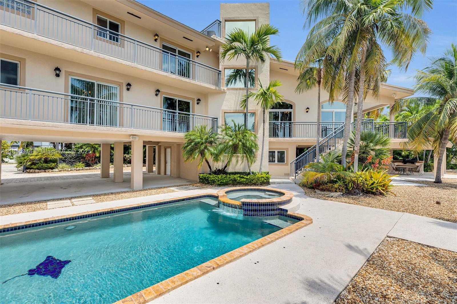 A Waterfront Masterpiece — 166 feet of pristine canal frontage, resort-style pool, and a massive owner's suite define this one-of-a-kind residence. Beautiful and spacious 3-story waterfront residence offering an impressive 166 feet of canal frontage with direct access the ocean. Designed for comfort and entertaining, this home blends elegant interiors with resort-style outdoor living. Inside, the main living area boasts soaring ceilings, natural light, and balconies that frame tranquil water views from every room. The open kitchen features custom wood cabinetry, stainless steel appliances, granite countertops, and an expansive breakfast bar that flows into the great room and dining space. Elegant stone flooring and quality finishes throughout. Seller Financing Possible to right buyer.