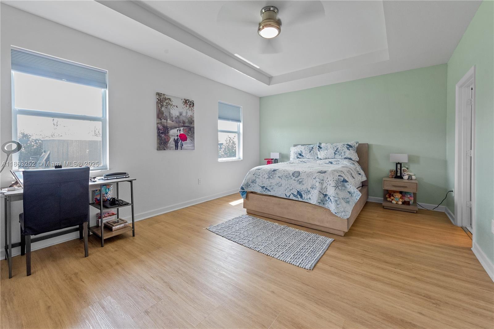 Elegant 5BR/4.5BA Estate featuring sleek tile & laminate floors, impact windows, designer shades, and custom barn doors. Gourmet kitchen boasts white cabinetry, stainless steel appliances, Corian countertops, island with sink & pantry. Formal dining with chandelier, spacious family room, and covered patio with pavers—perfect for entertaining. In-law suite with private entry, kitchen, split A/C, and 2 full baths. Lavish master with tray ceiling, spa-style bath, dual sinks, glass-enclosed shower, and walk-in closet. 2-car garage, laundry room, fenced yard, LED lighting & more. NO HOA!! PROOF OF FUNDS AND/OR PRE-APPROVAL LETTER REQUIRED PRIOR TO SCHEDULING A SHOWING OF THE PROPERTY!
