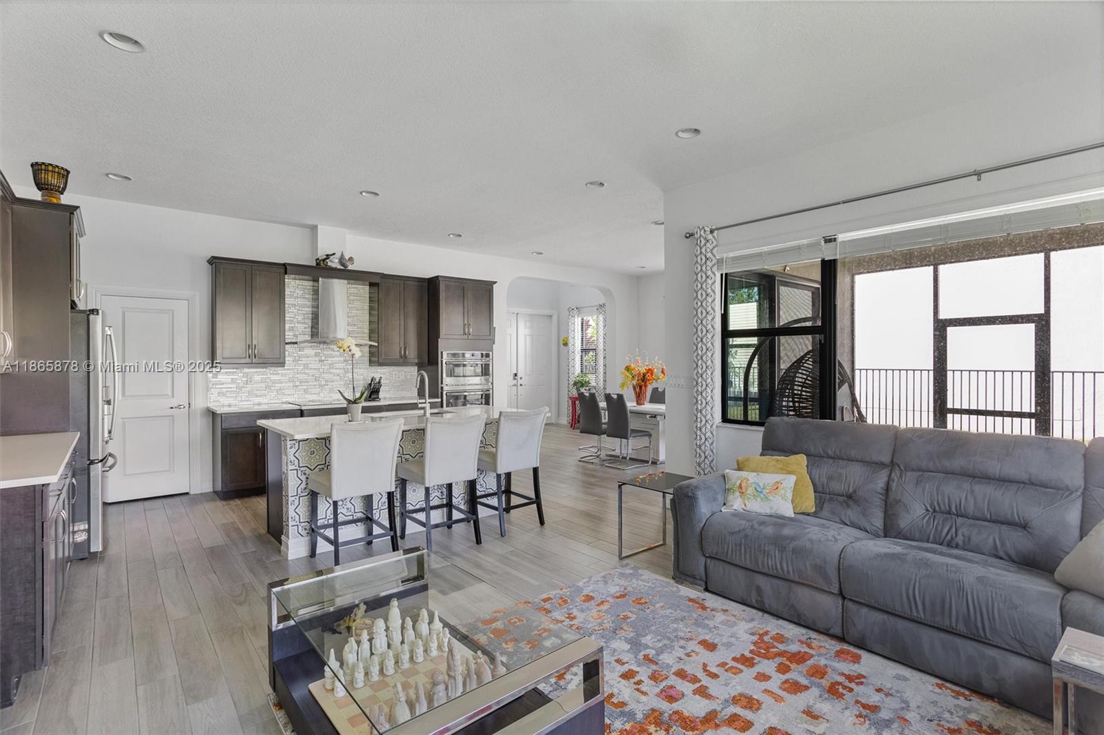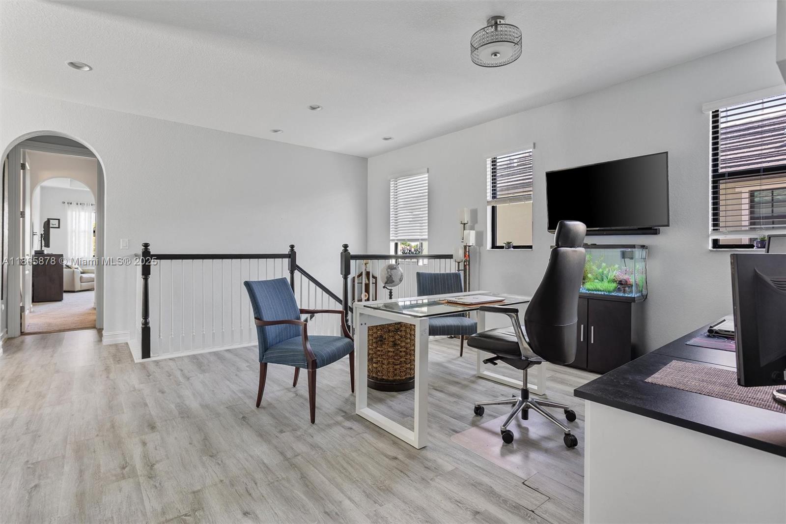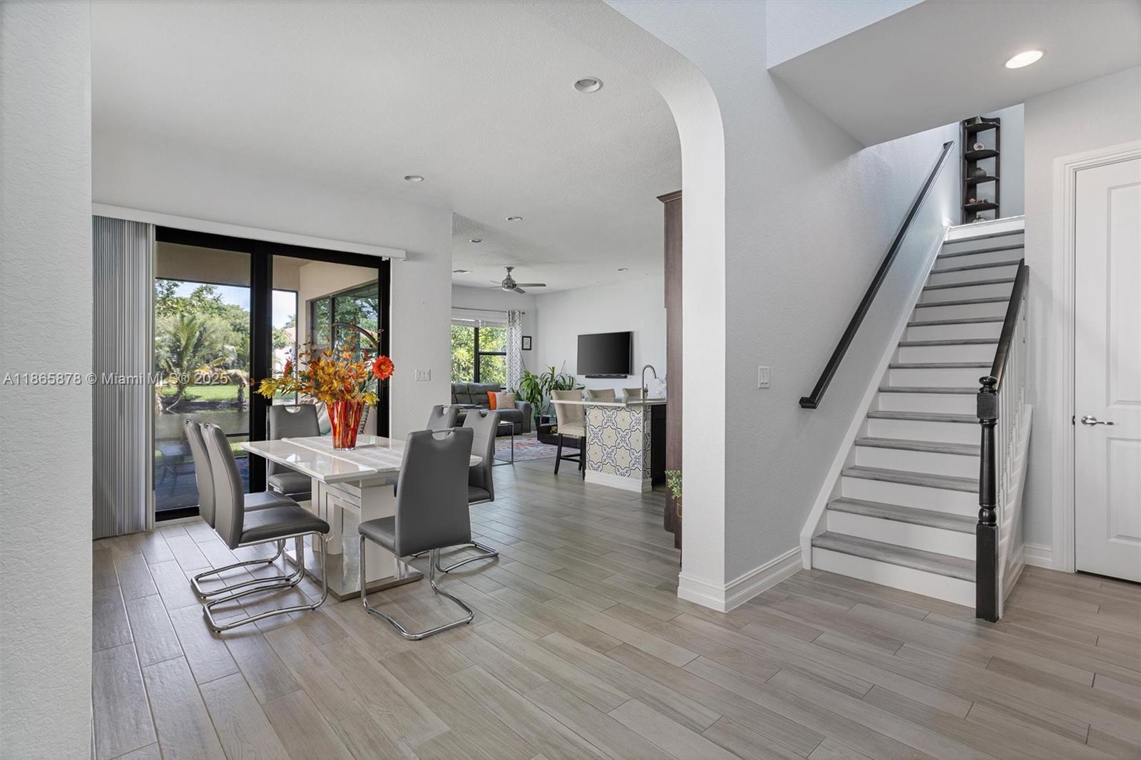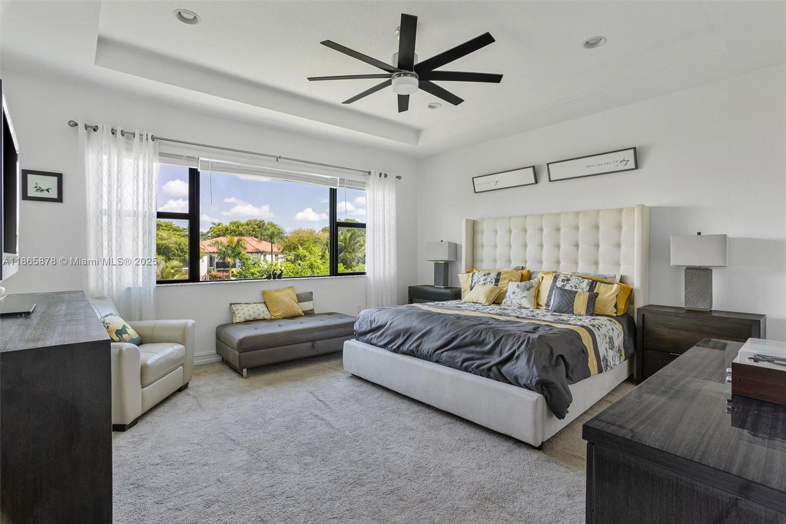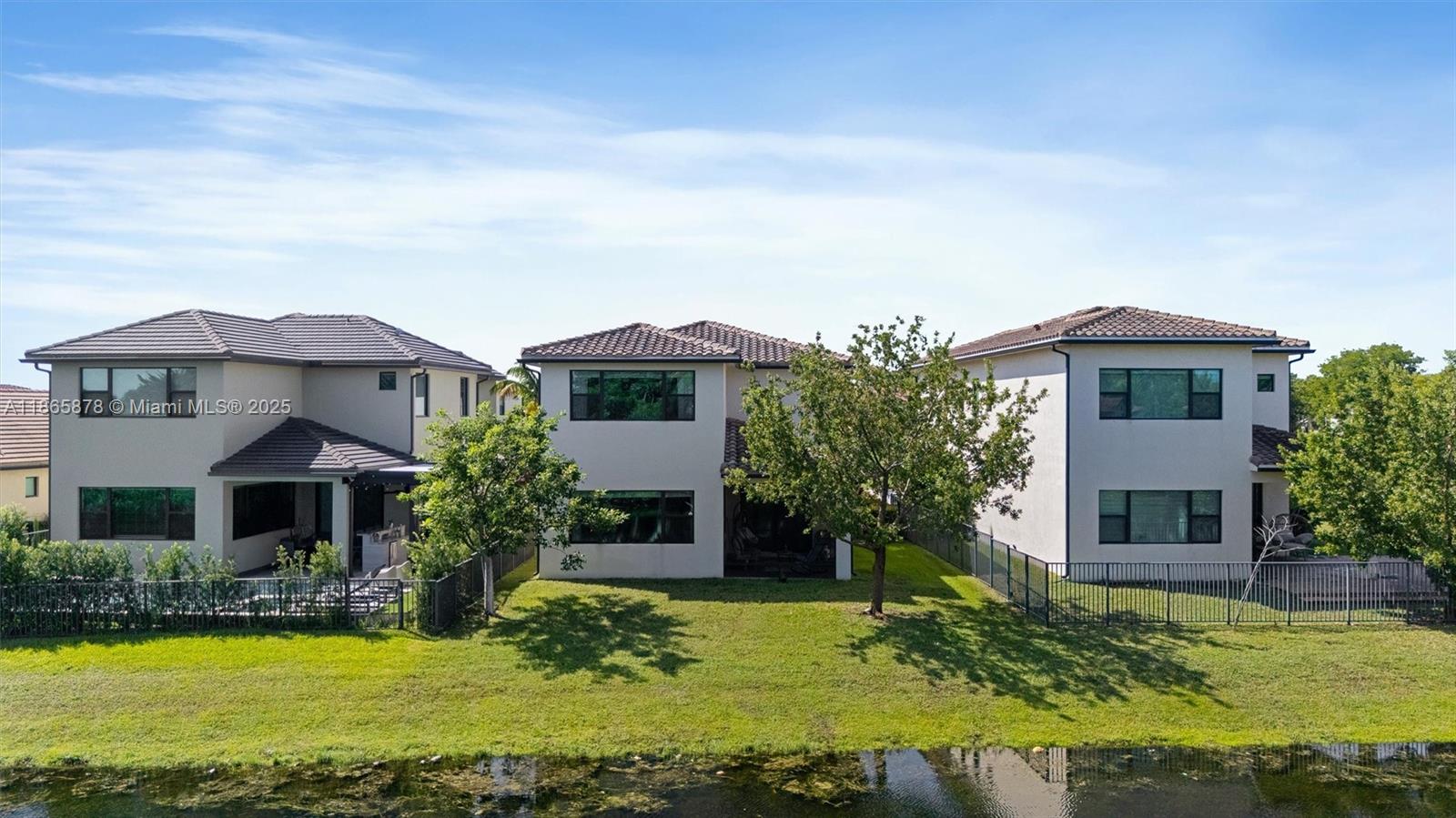 Gorgeous 2019 lakeside 4Bed/3Bath home on cul-de-sac in the coveted Raintree community. Enter foyer to 20’ ceiling & chandelier & marvel at a clear view of the lake. Open concept great area is filled with natural light & anchored with kitchen of white quartz, dark wood, countertop stove, wall ovens and SS GE Profile apps. Exotic center isle & huge pantry. Downstairs has bedroom & full bath & is finished with ceramic (wood) tiles. Upstairs has vinyl floors & very nice master with custom closet, lake view, double basins, soak tub & glass enclosed shower. Laundry is upstairs with wash tub & counter. Home has 2 car garage with epoxy floor, hanging racks, storage room & shelves. Driveway was extended to accommodate 3 cars. Screened lanai. Community heated pool, gym, events room & picnic area.
