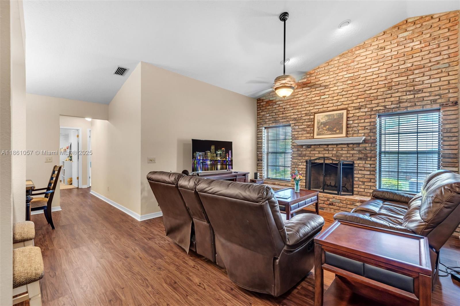 Price Reduced! Seller Motivated! No HOA! Quick Closing Available! Beautifully maintained 4 bed/2 bath home in desirable Hawks Landing on a quiet cul-de-sac. Features timeless brick curb appeal, vaulted ceilings, wood floors, fresh paint inside and out, and a cozy family room with a wood-burning fireplace. Kitchen offers stainless steel appliances with a new dishwasher just installed. Spacious primary suite with dual vanities, soaking tub, separate shower, and two walk-in closets. Enclosed sunroom overlooks private fenced yard. Major updates include a new roof (Nov 2024) and whole-home air treatment system. Just minutes from Publix, shopping, dining, and schools. Move-in ready and easy to show; Seller relocating by end of month. You're just in time to Purchase before the holidays.
