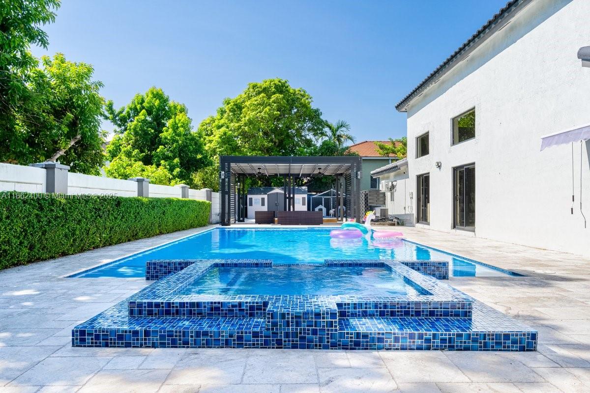 Welcome to your dream home! This beautifully remodeled 4-bedroom home has been upgraded to perfection just three years ago. Featuring a brand-new roof, impact windows, new interior doors, and brand-new bathrooms, this home offers both safety and style. The interior also includes sleek new flooring and a convenient bedroom with a full bathroom on the ground floor. The outdoor space is an entertainer’s paradise with a completely redone pool that includes a jacuzzi, plus a brand-new outdoor kitchen. The property also features a new concrete driveway and new metal fence, enhancing both curb appeal and privacy. Don’t miss out on this incredible opportunity to own a turnkey property that combines luxury and comfort!