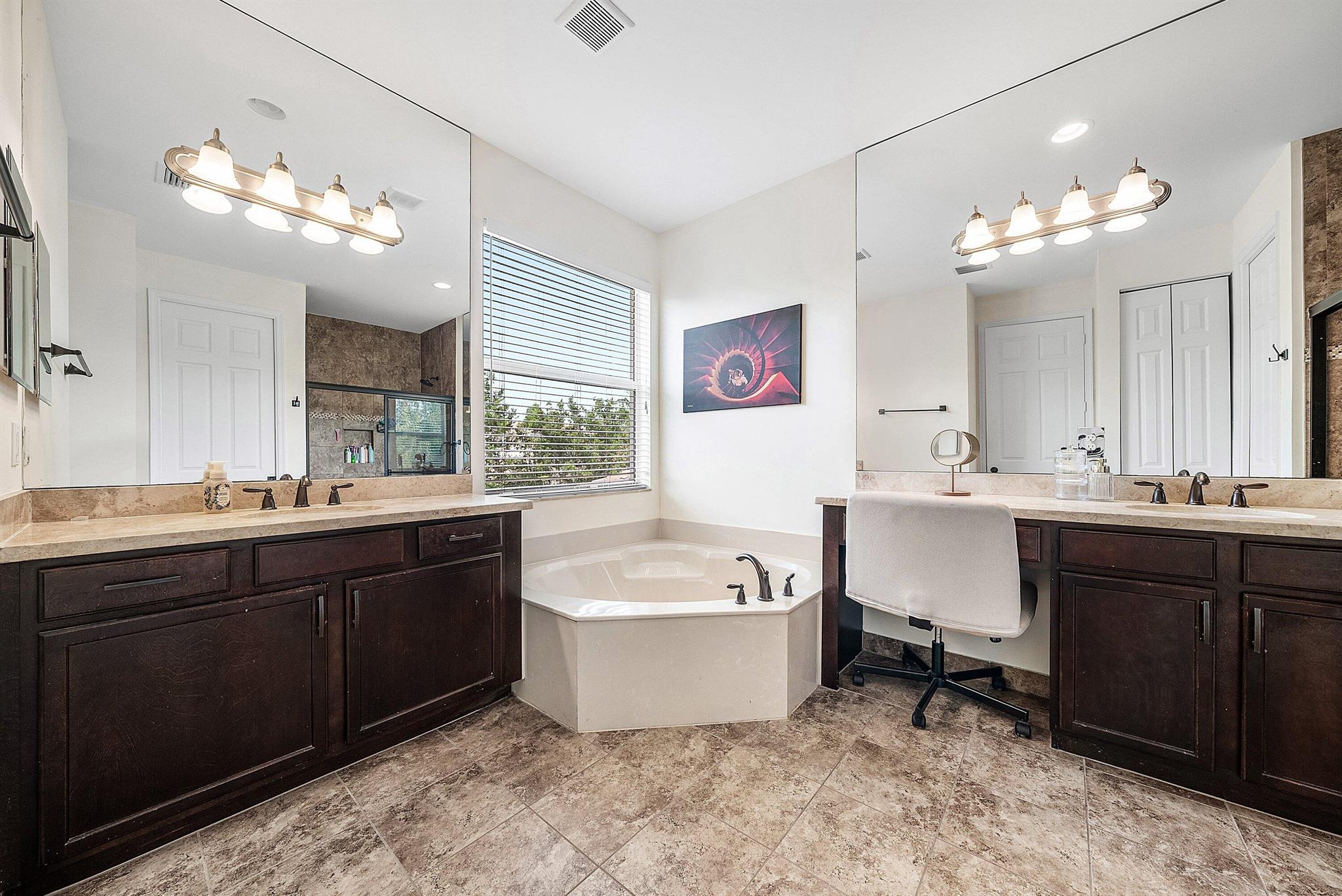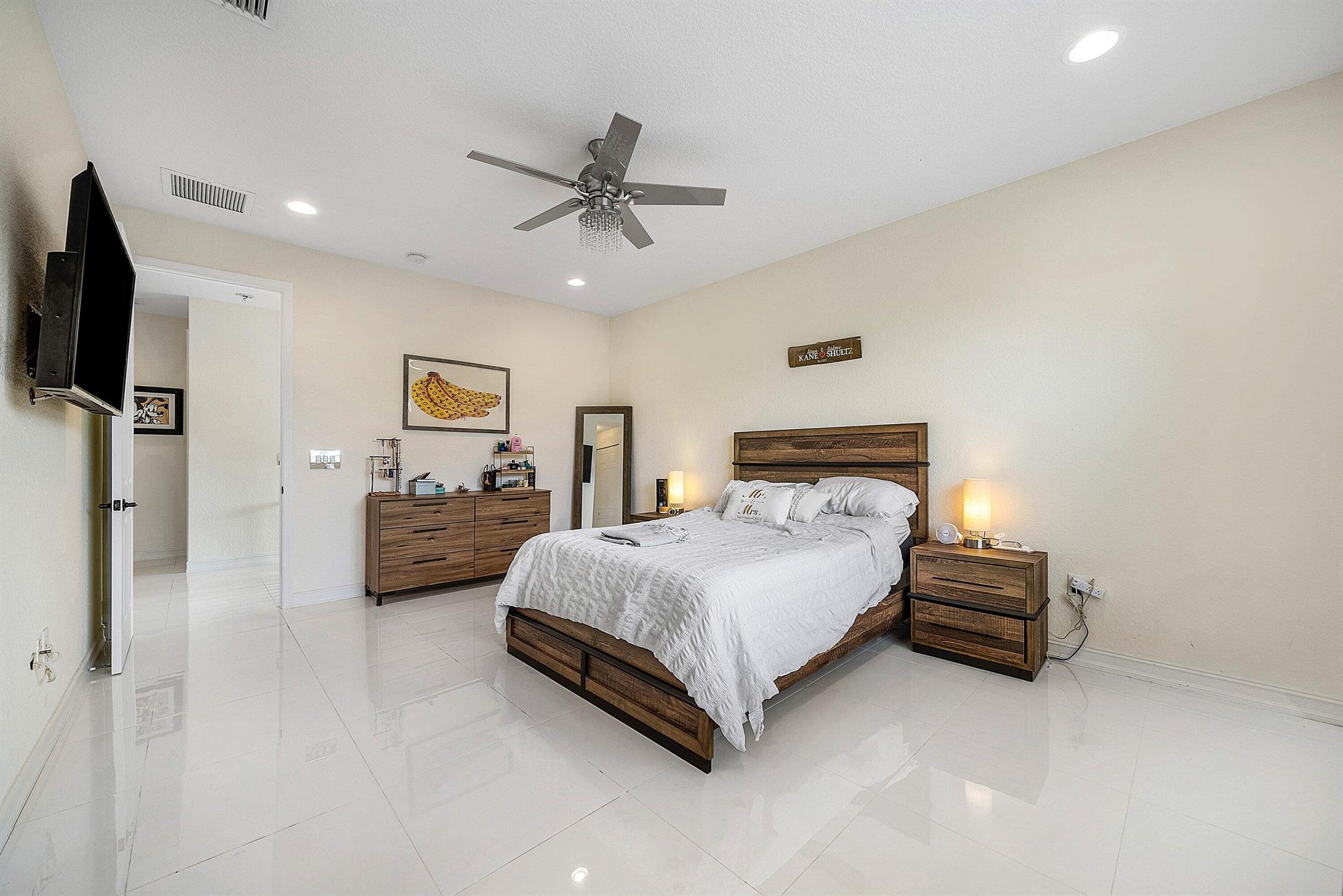 Beautiful 4 Bedroom Home with a Large Fenced Yard in Canyon Trails. This Floor Plan is Rarely Available and One of the Only 4 Bedroom Models with a Full Bedroom and Bath on the First Floor. Entering You Will Love the Open Great Room Concept of the Living Space. There are Gorgeous Modern Porcelain White Tiles Throughout the Home. The Large Kitchen Boasts 42'' Wood Cabinets with Extended Pantry, Oversized Granite Counters with Full Backsplash & Stainless Steel Appliances. There is also a Large Breakfast Area Overlooking the Yard. The Great Room Includes a Custom Stone Accent Wall and a Bonus Storage Closet Under the Stairs. Out Back is a Screened Patio that Leads to a Massive Fenced Yard. Build Your Dream Pool and Still Have Room to Roam! Upstairs the Large Primary Suite Has Walk-In Closets.