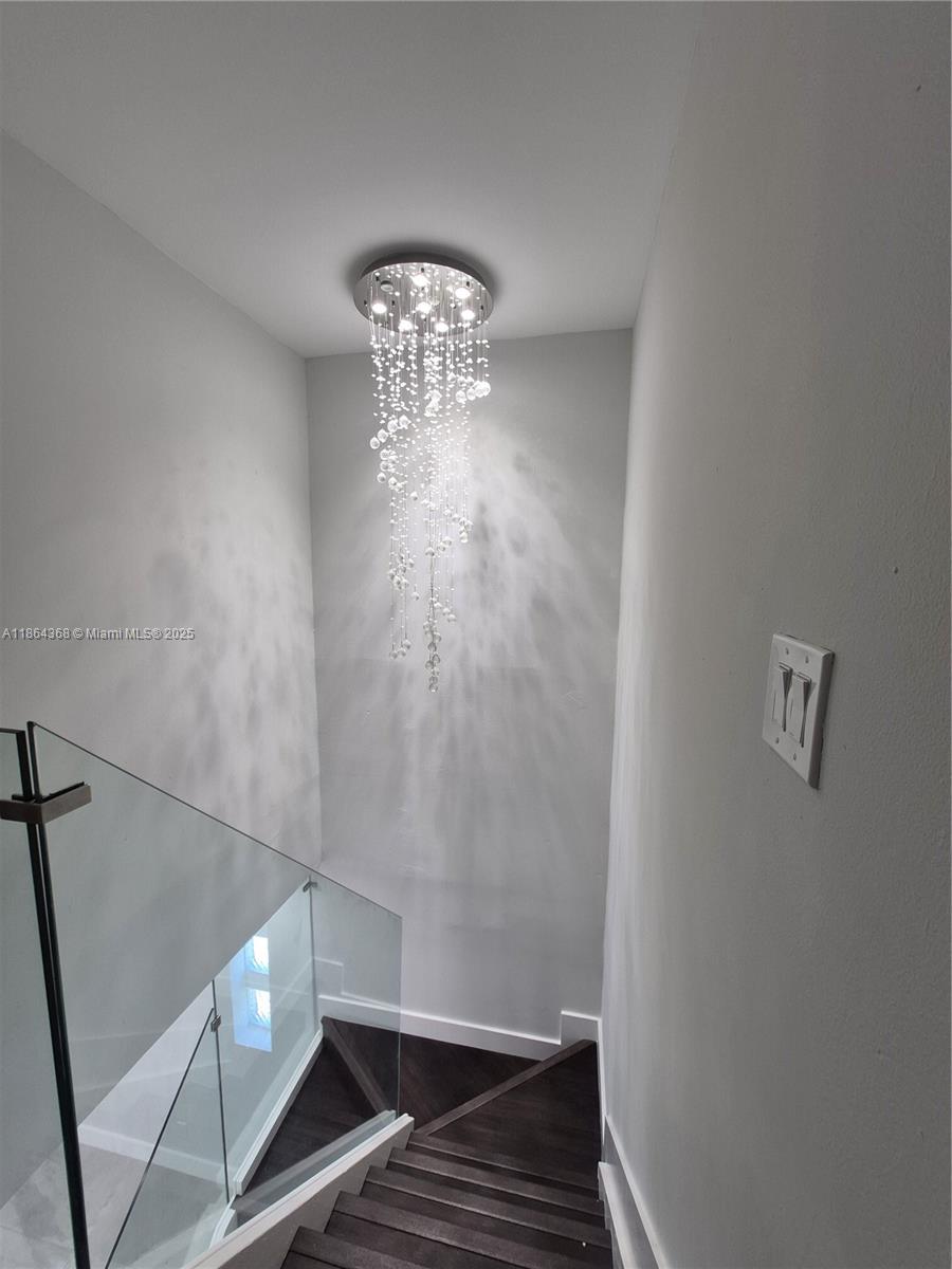 Nicely remolded, This 3 bedroom 3 bath double car garage has everything you dream of. Impact windows and frosted glass doors. 32 x 32 porcelain tile all throughout the first floor. Midnight blue shaker style wood push open storage cabinets with 10" gold handles, Calcutta golden quartz countertops with waterfall and seated space, raised back splash. Flat glass stove, stainless steel appliances, wine cooler, LED lighting. Golden double pendant light. As you walk up your glass rail stairs, enjoy your modern spiral bubble chandelier, discover luxury mulberry oak waterproof vinyl plank flooring throughout the bedrooms. glass shower doors and more. seller could consider closing contribution.