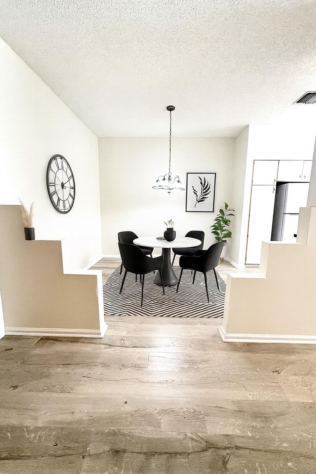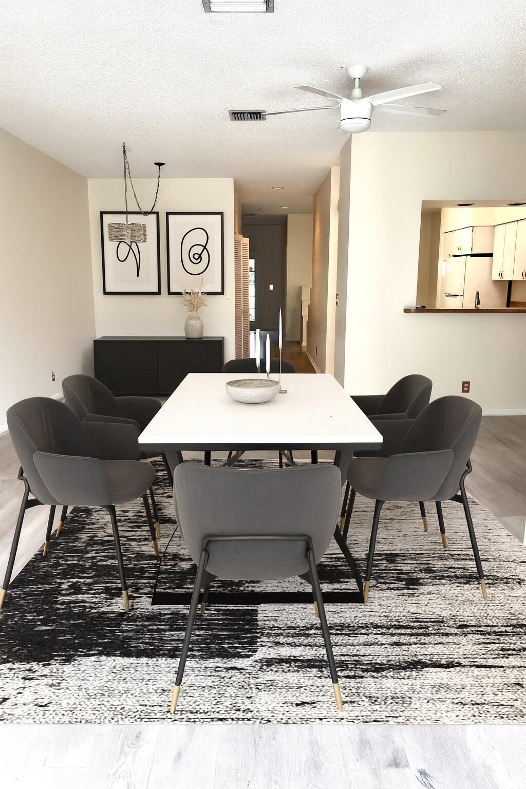 Boca Community Gardens is a lifestyle featuring:three pools, tennis, playground and walking paths; convenient to shopping, i-95 and Rated A Boca Schools. This townhome is the largest model with 2,088 sq ft, 3br/2.5ba, soaring 10' ceilings, an enclosed patio/den/florida rm optional, breakfast nook, open living/dining areas and abundance of natural light. The floors are updated with beautiful Laminate and hardwood. Bathrooms feature newer fixtures. An extra large hallway on 2nd floor that can be used as a seating/gaming area for kids. Major updates:NEW ROOF 2024, AC 2022. Original kitchen is clean and functional and ready for your personal updates. Attached 1 car garage. It feels like home. Enjoy peaceful lake view sunsets from your own backyard. MOTIVATED SELLER.