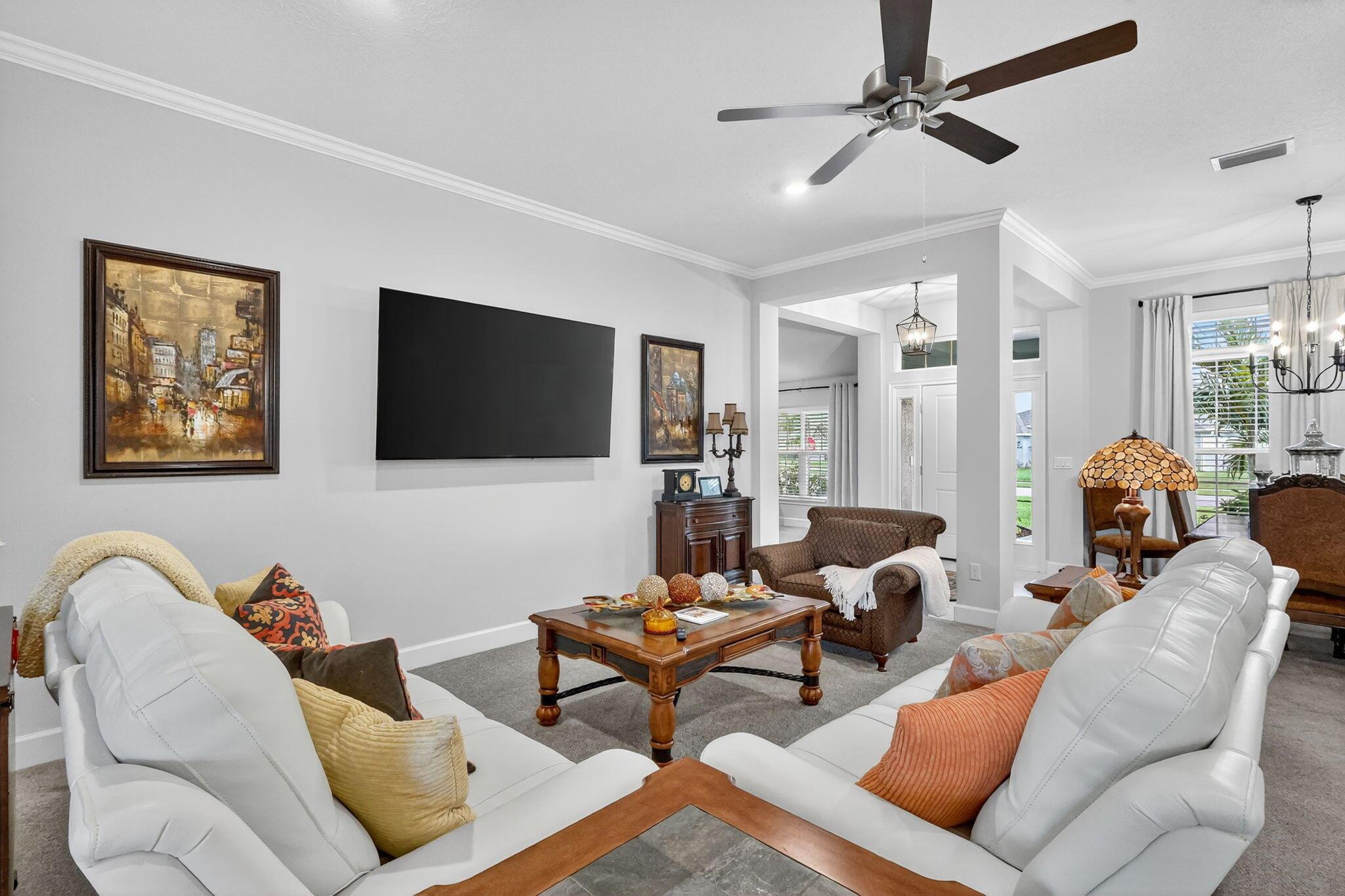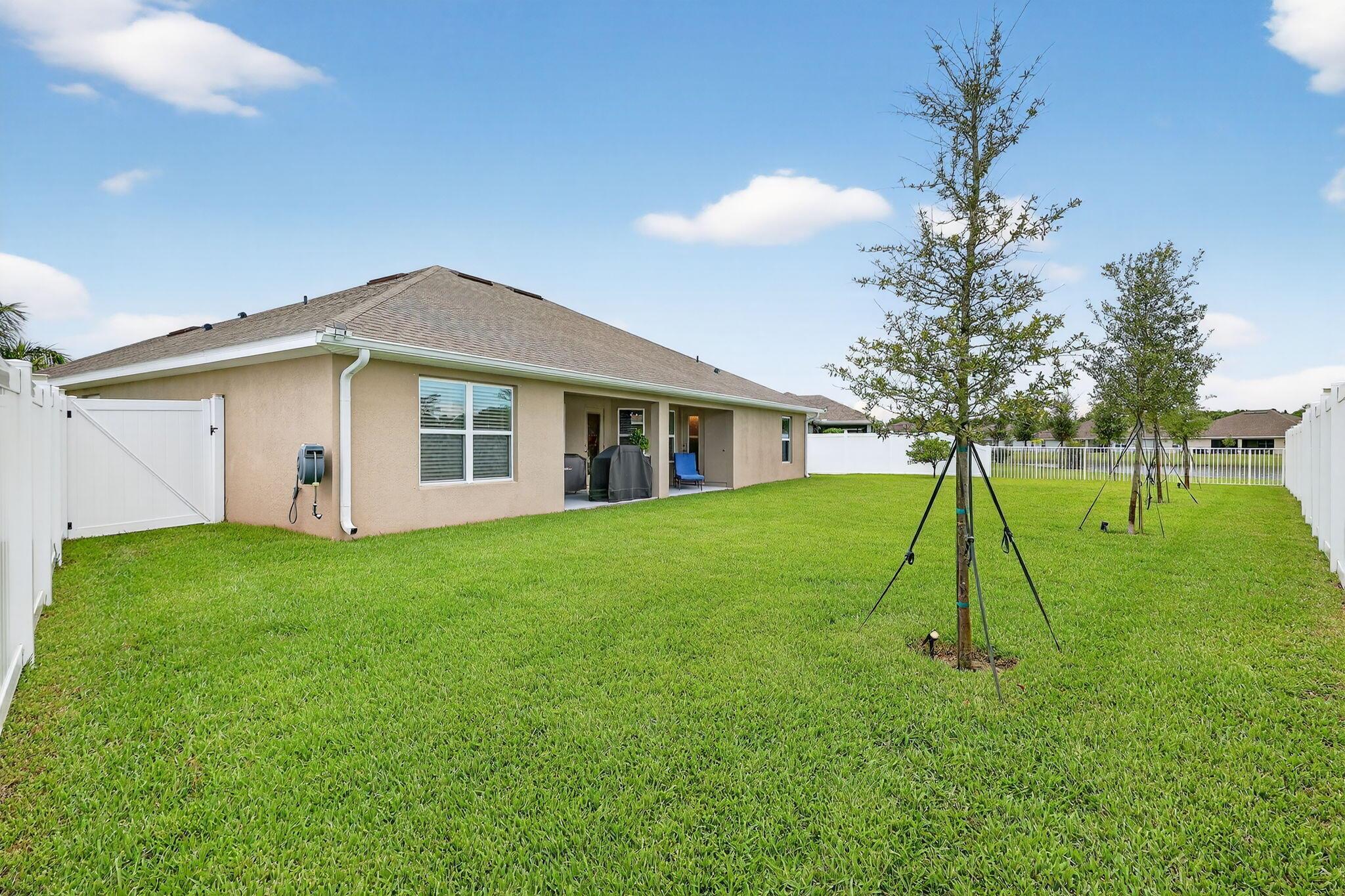 This home is a STEAL! Priced under what they paid & + improvements 4/3/3 Better than NEW 2023 built.Premium .27 acre 11,761sf Corner Lakefront Lot (35K upgrade from builder) 34K+ in after purchase upgrades including: Premium vinyl & metal fence. Seamless gutters. Your OWN Irrigation well which saves thousands a year on your water bill & keeps your yard looking lush and beautiful! Meticulously maintained. 4 spacious bedrooms & 3 bathrooms including a cabana bath, den, covered patio & a massive 3 car garage. Crown Molding, lighting, backsplash, 3'' Blinds. HOA is a low $129 a year! Waterstone has lots of amenities Community pool, fitness room, playground, sidewalks, volleyball, tennis and pickleball courts. County only property taxes! Room for a pool. Only 20 min to the beach