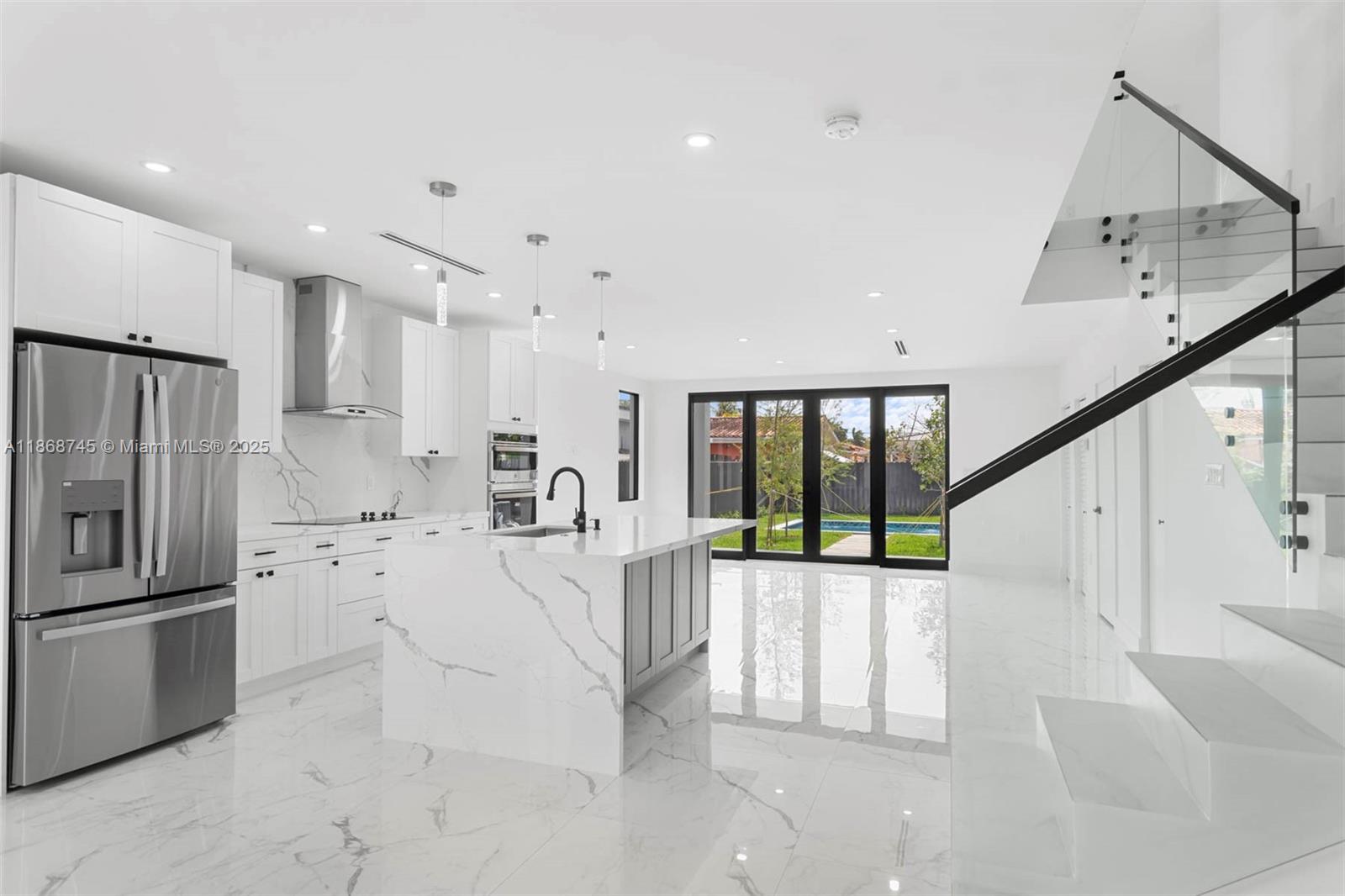 Brand New construction !! Two-story, four-bedroom, four-and-a-half-bath townhouse in Miami. Open concept kitchen with white and gray hardwood cabinets, white Calacatta laza quartz countertops, and stainless steel appliances. First-floor bedroom with its en suite bathroom. Double door leading out to a landscaped pool area. Master bedroom on the second floor with a huge balcony overlooking the pool. The Master's bathroom has a freestanding soaking tub and a frameless glass shower. Two spacious bedrooms with en suite baths on the second floor. Full-size washer and dryer on the same floor.