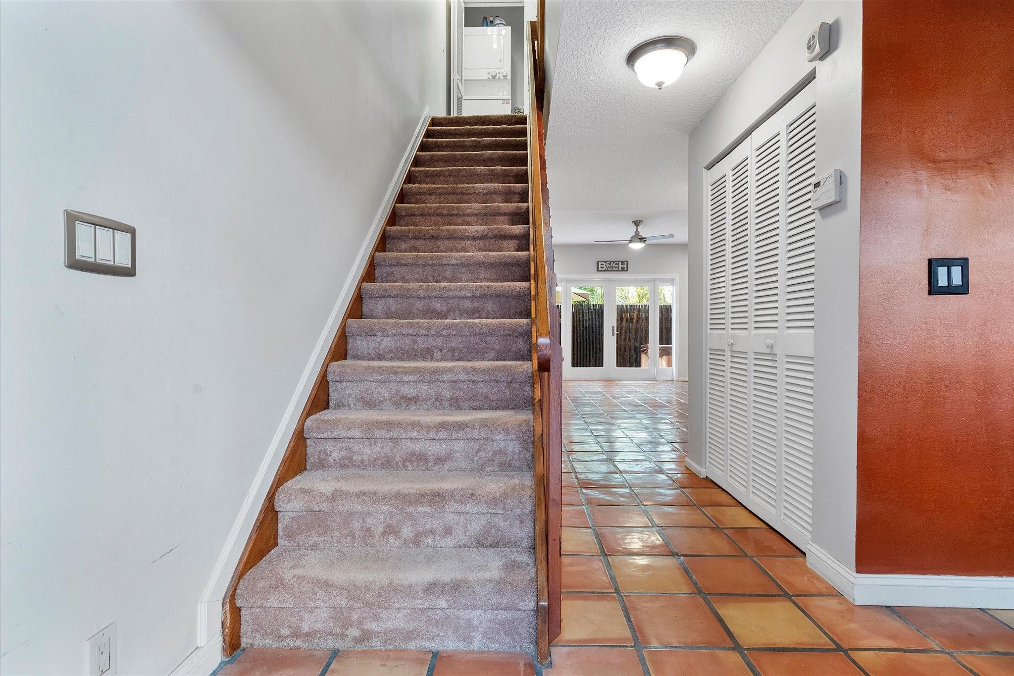 This rare find boutique gated community with pool has no pet or leasing restrictions, yes, daily rentals are allowed. Featuring impact windows and doors, this home offers 2 spacious primary suite bedrooms and 2 full ensuites upstairs plus a half bath on the main. Tile and carpet flooring, vaulted ceilings, and arched windows create a bright, airy ambiance. The eat-in kitchen includes stainless steel appliances, washer and dryer in unit, and French doors that open to a private back patio. Assigned parking is directly at the front door, with the community pool just steps away. Water lovers will appreciate the public boat ramp only a mile away. Ideally located near downtown, shops, dining, airport, cruise port, and casino.