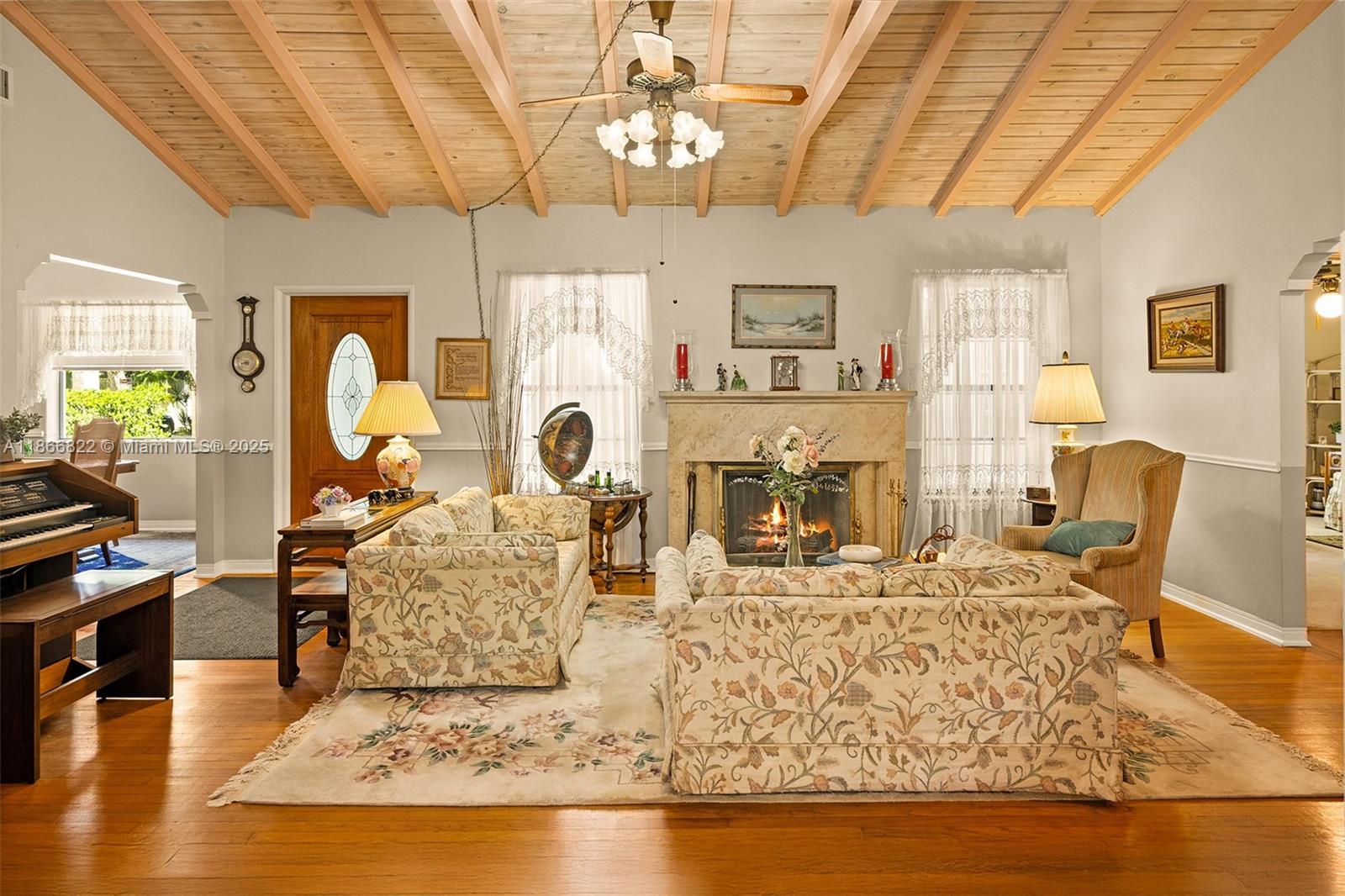 Welcome to Casa Poinciana, a gem in the heart of historic Morningside—where timeless charm meets Miami lifestyle. This 3-bed, 2-bath residence has been lovingly maintained, preserving its essence while incorporating major updates. Original wood floors remain well kept, while a 2022 metal roof, updated PVC plumbing, a modern kitchen with S/S appliances, and travertine tiles in the family area add comfort and character. The home radiates classic charm with arched doorways, warm accents, and an enclosed terrace w/ jacuzzi overlooking private backyard views. Additional highlights include a 1-car garage and an 8,250 sq. ft. lot. Located near Cushman, DASH, & Miami Country Day schools, and minutes from the airport, beaches, Design District, Midtown, Wynwood, dining, arts, and Downtown/Brickell.