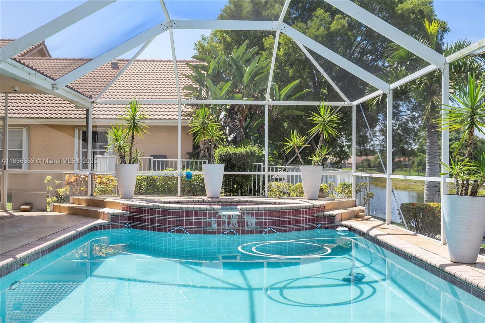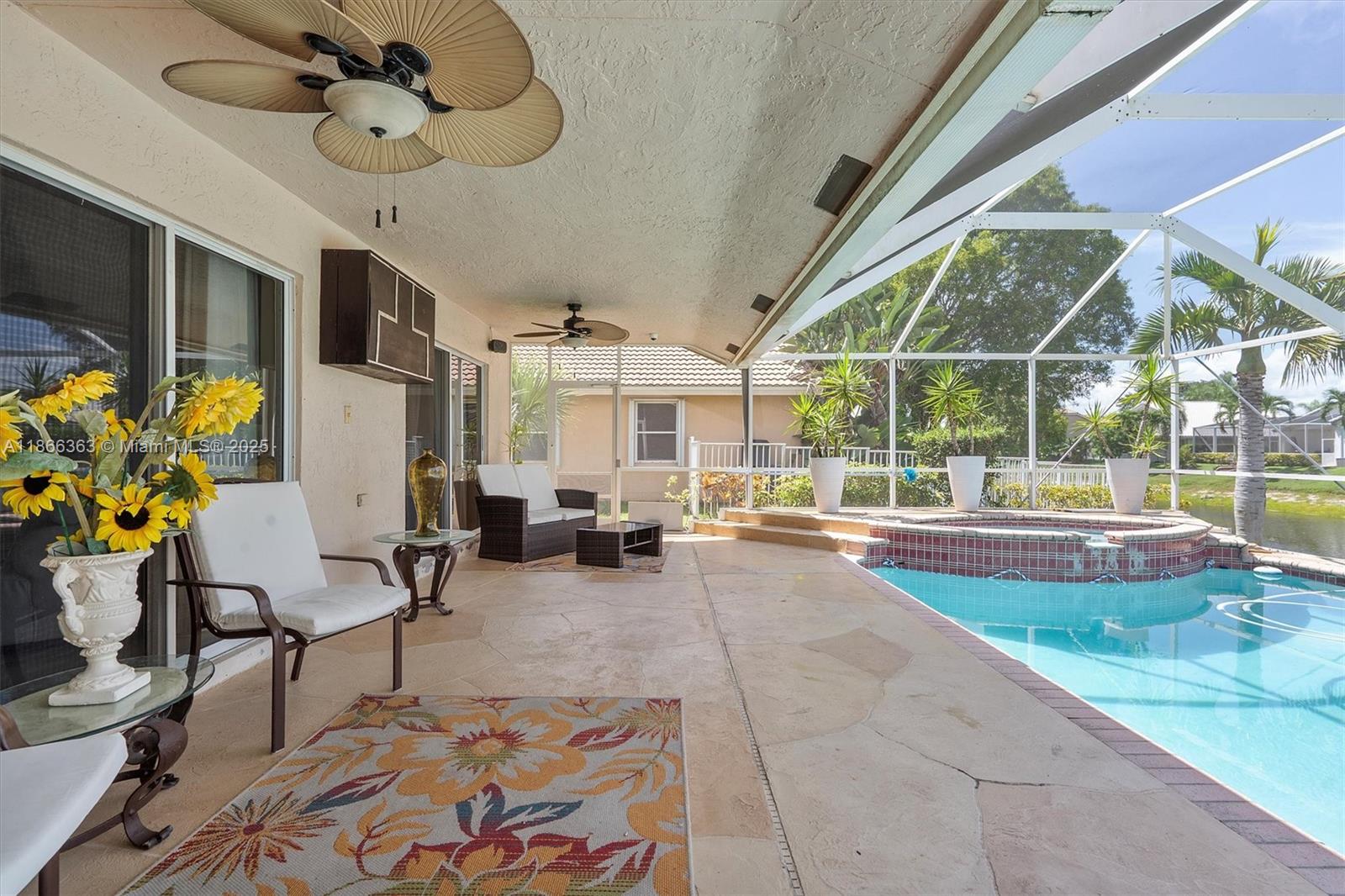 Beautiful 4-Bed, 2 Full & 2 Half Bath single-story home in gated Carriage Pointe Estate. Set on a large corner waterfront lot with lush landscaping, this residence offers an open layout with formal dining, living & family rooms. Gourmet kitchen features granite counters & stainless steel appliances. Light-filled interiors boast porcelain floors, laminate in bedrooms, custom closets, and upgraded baths. Primary suite includes a sitting area, dual sinks, Roman tub & shower. Screened, heated pool with covered patio, built-in BBQ bar & lake views. New A/C 2023, roof 5 yrs, water heater 2024. Large laundry & 2-car garage. Close to Sawgrass, schools, dining & parks. Mortgage savings may be available for buyers of this listing.