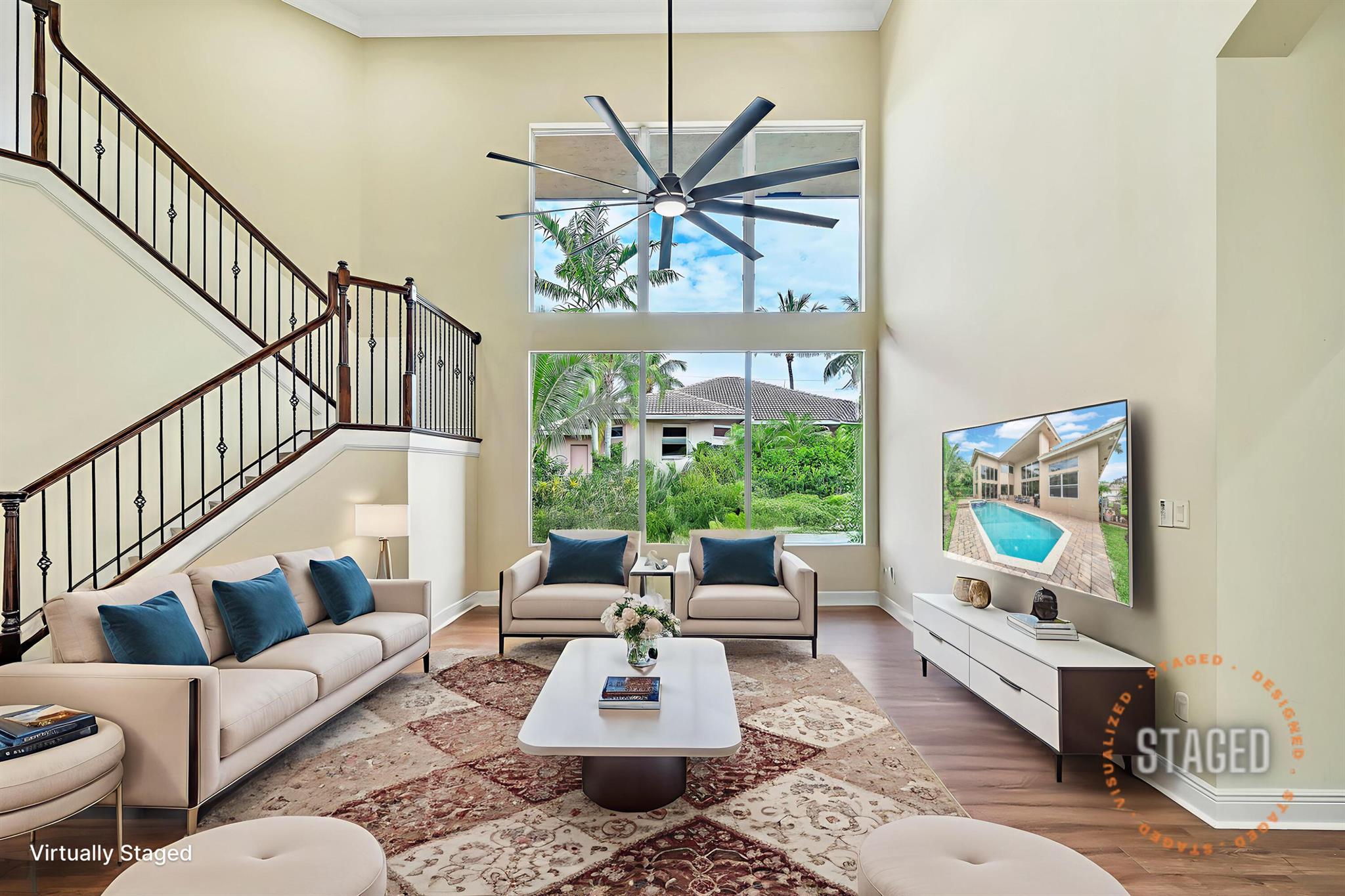 Welcome to the stunning Flamingo Model home, a luxurious 5-bedroom, 4.5-bathroom residence with a den, loft, and 3-car garage, offering over 4,384 square feet of exquisitely designed, air-conditioned living space. From the moment you step through the grand double doors, you're greeted by a spacious foyer that opens into an expansive formal living room, featuring soaring two-story ceilings and oversized windows that frame views of the sparkling pool. The elegant formal dining room, enhanced with beautiful columns, creates an ideal setting for hosting holiday dinners and special occasions. Just beyond, the gourmet kitchen awaits, boasting rich wood cabinetry, a large center island, granite countertops, and stainless steel appliances, including a double oven.
